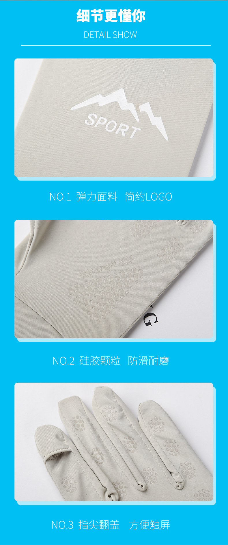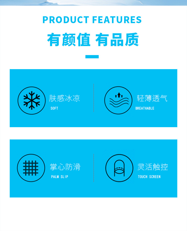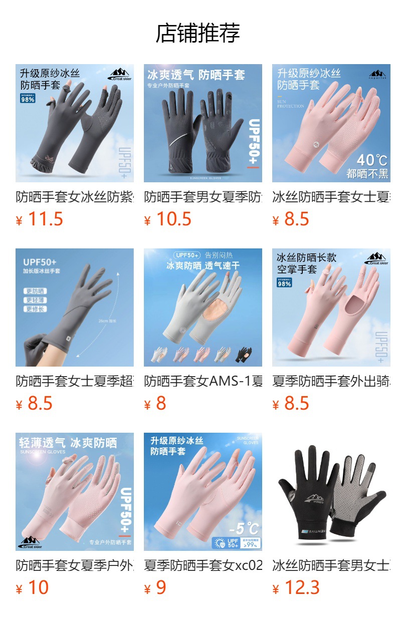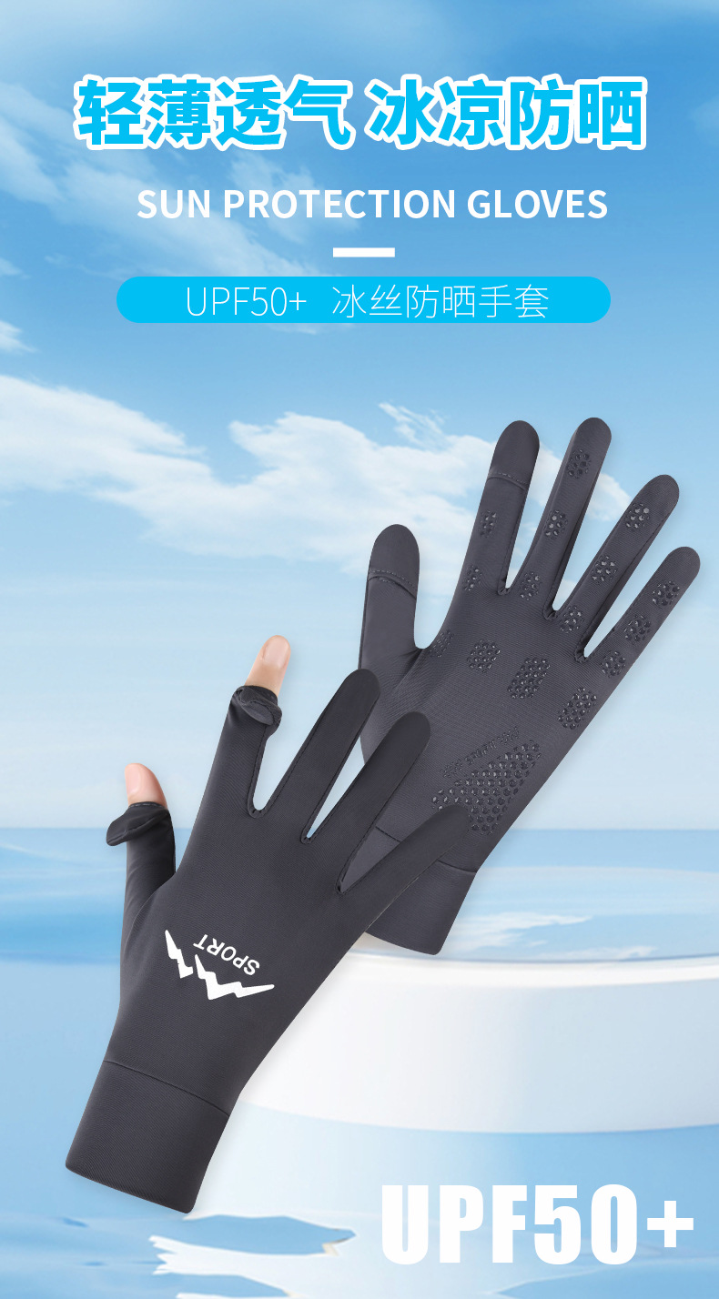 防晒手套女冰丝薄款防紫外线夏季电动车防滑可触屏女骑行手套批发