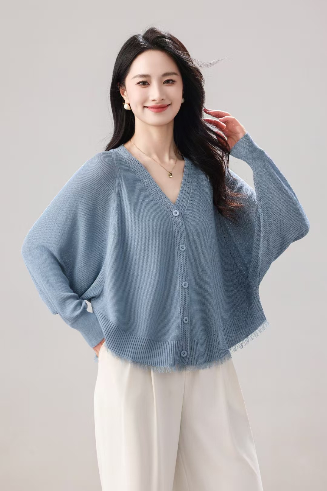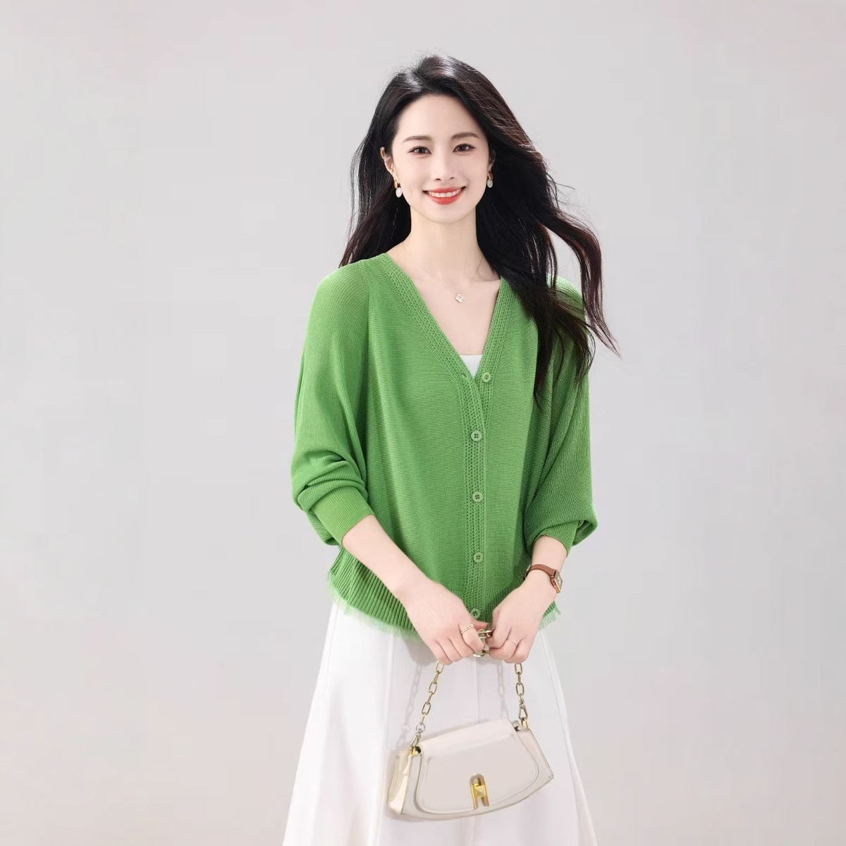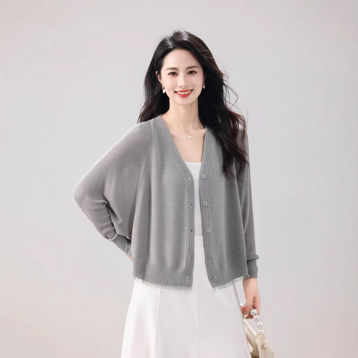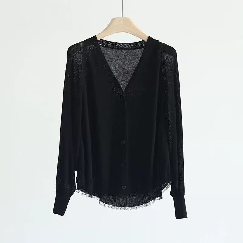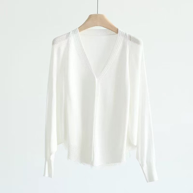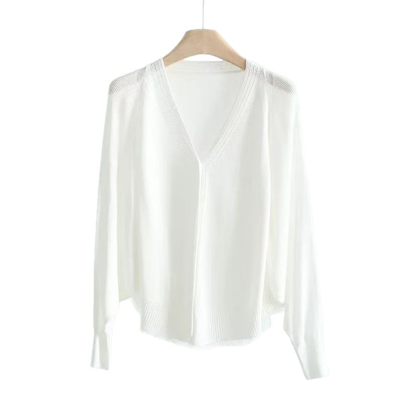 V领蝙蝠袖针织开衫外套女夏季新款长袖防晒衫空调衫外搭薄款上衣