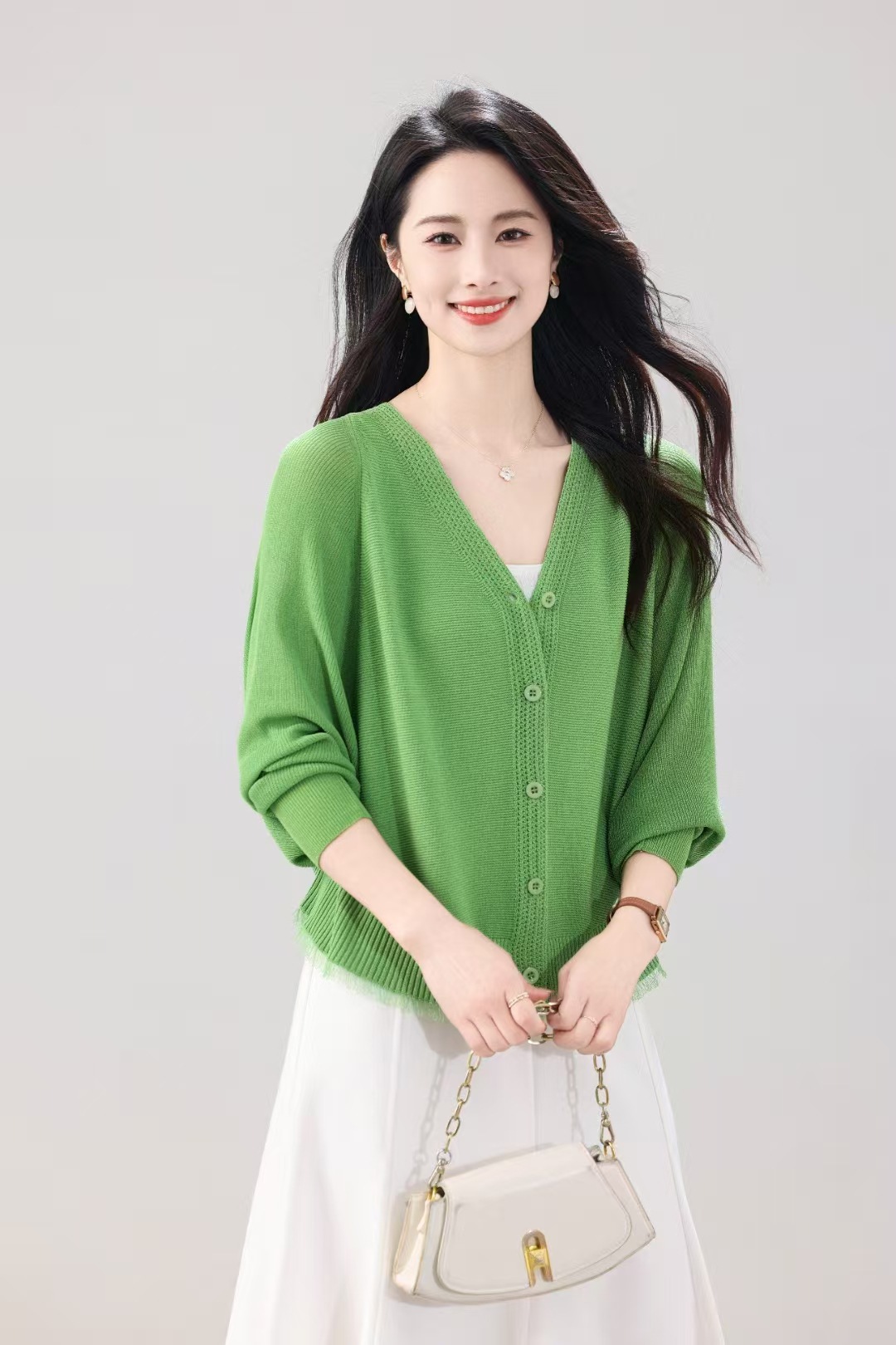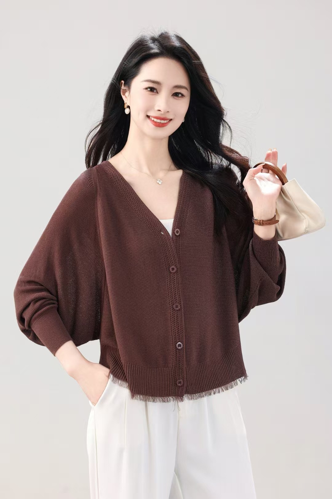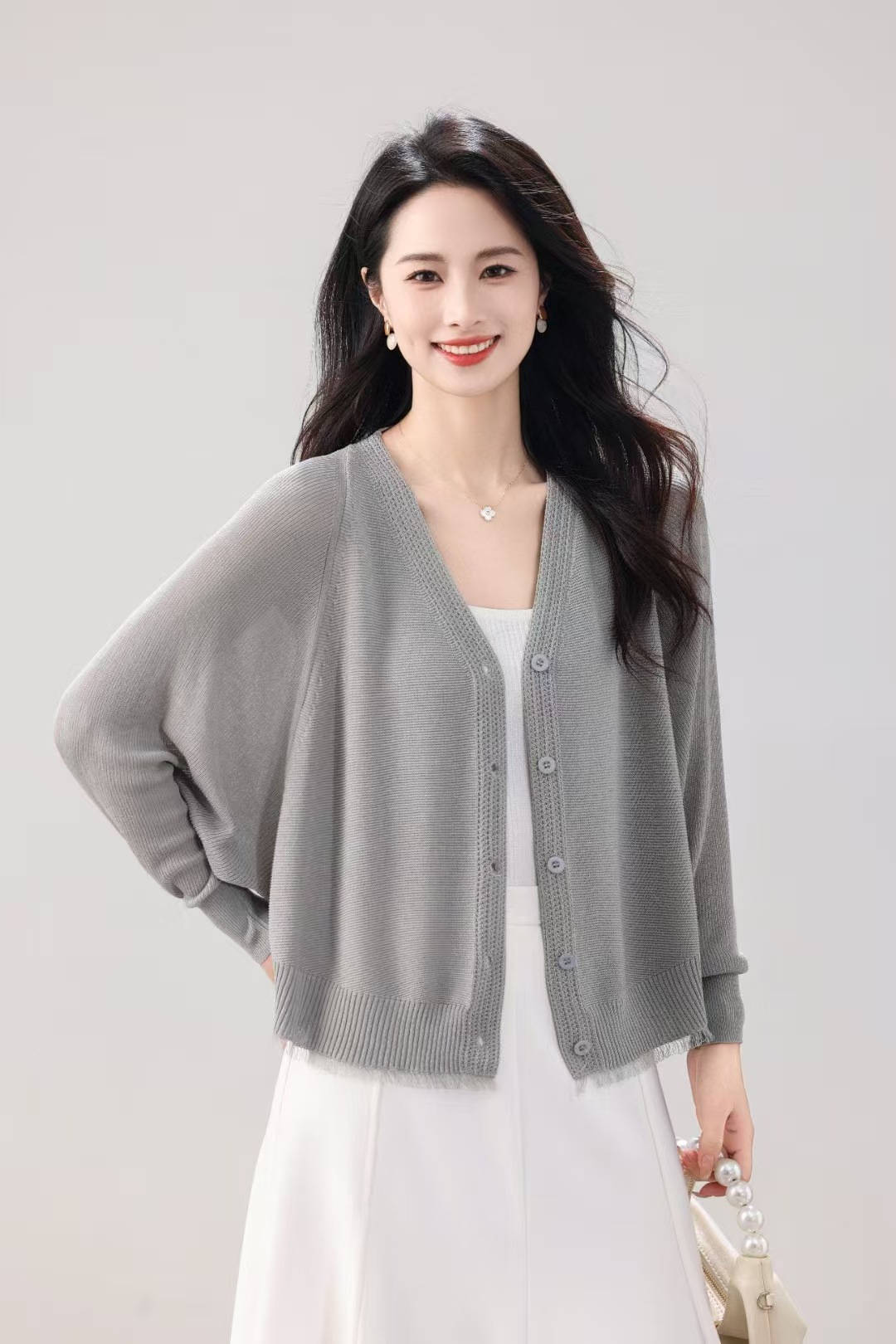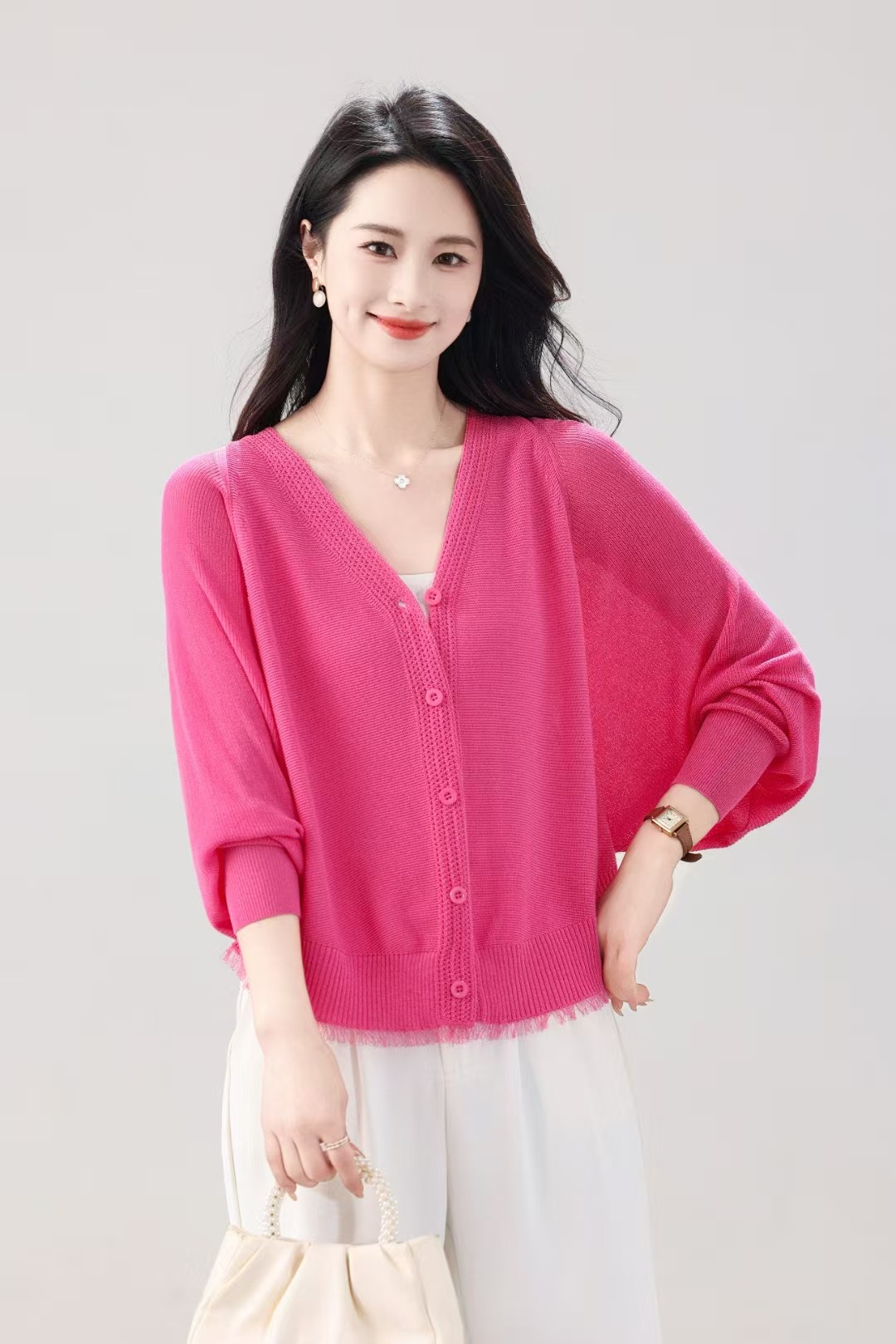 V领蝙蝠袖针织开衫外套女夏季新款长袖防晒衫空调衫外搭薄款上衣