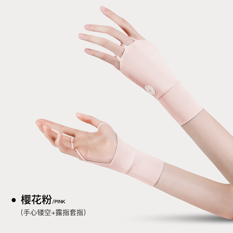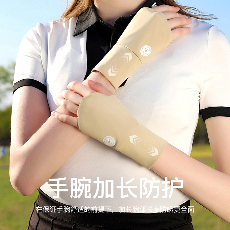 夏季新款冰丝防晒手套女高尔夫户外运动冰感半指手套薄款透气吸汗