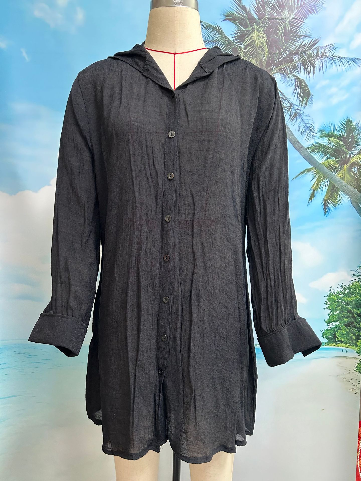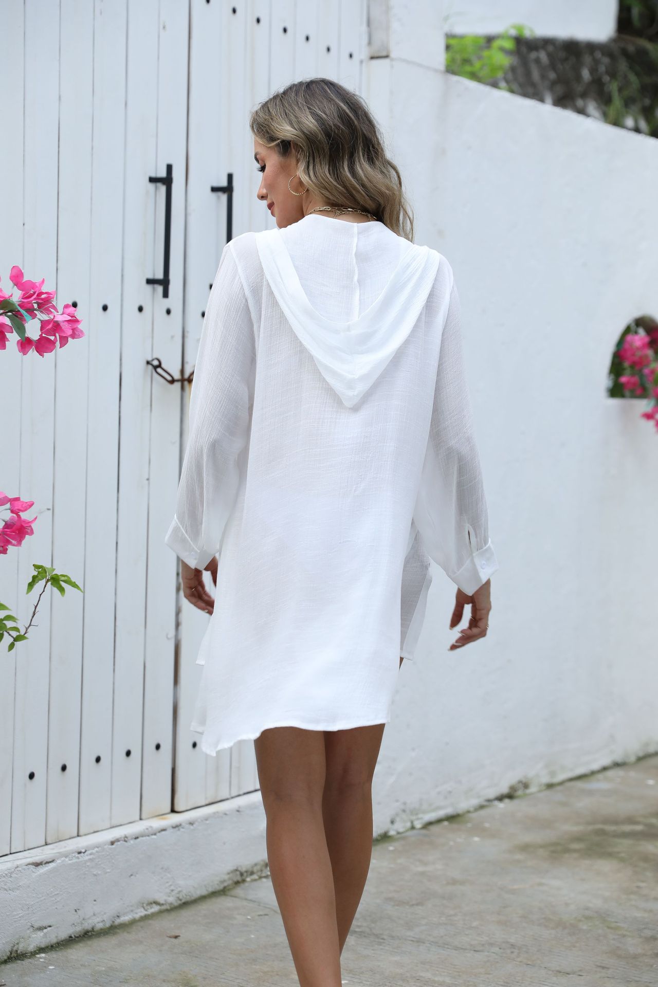 跨境泳衣连帽防晒衫海边比基尼罩衫女装带帽沙滩罩衫宽松泳装外搭