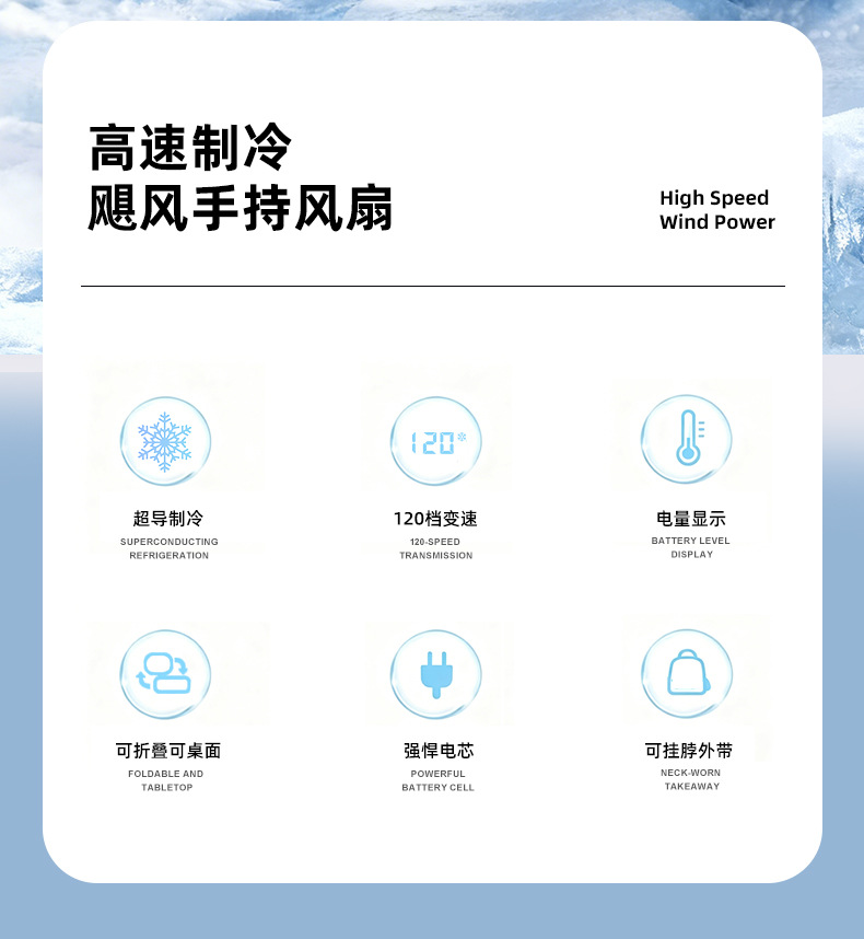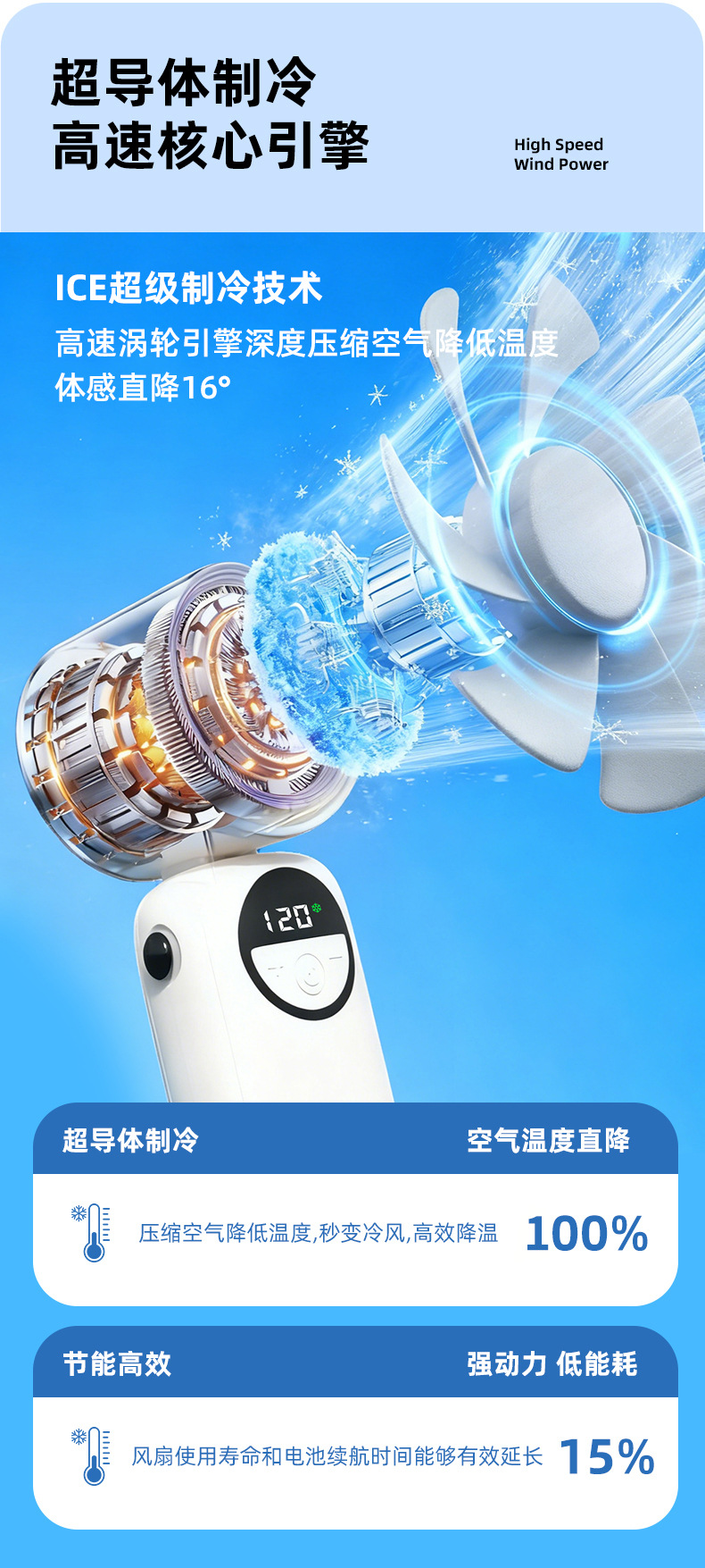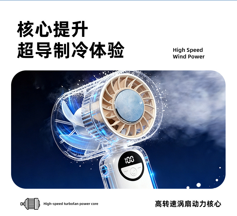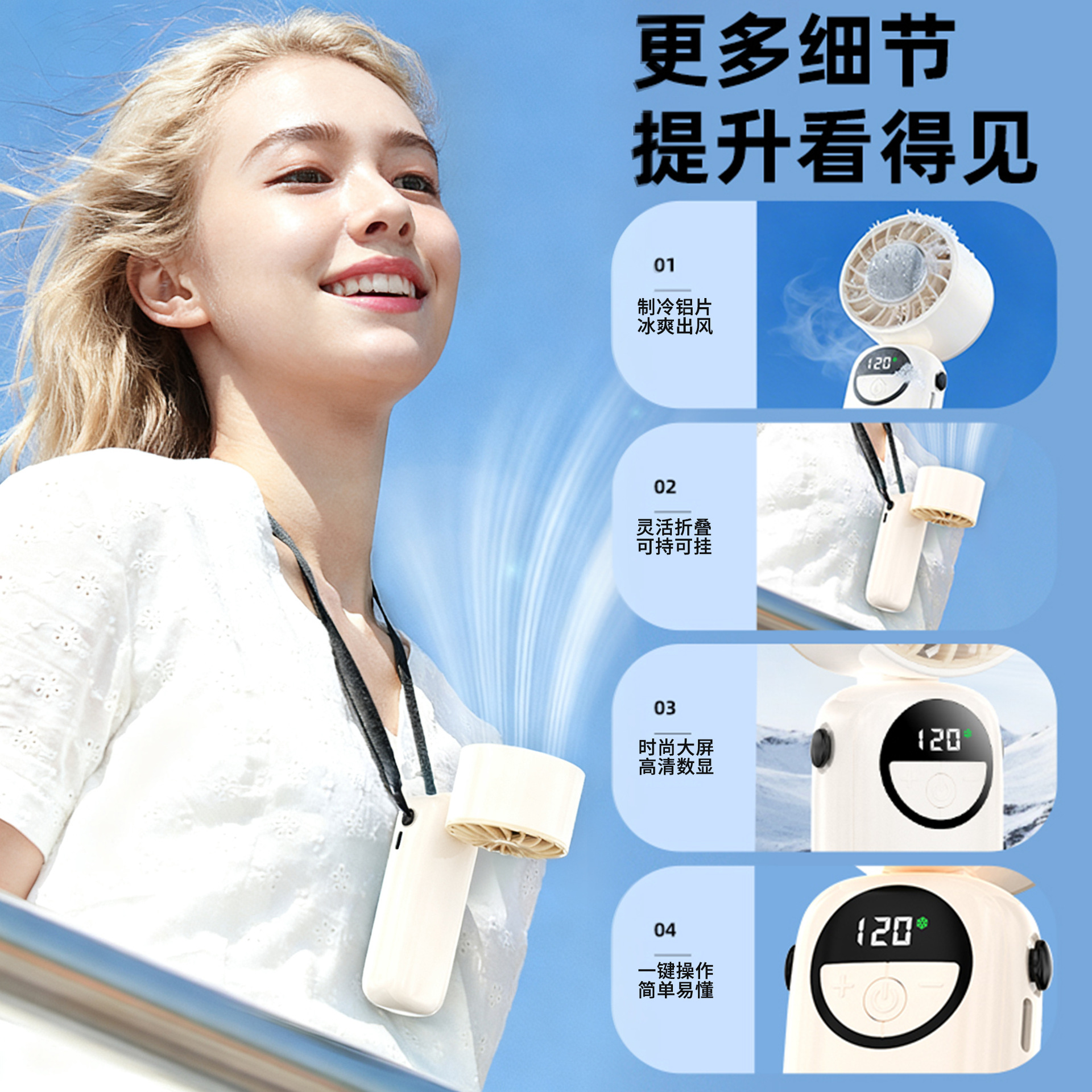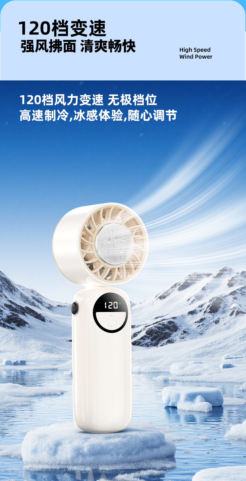 新款冰敷高速风扇半导体制冷手持小风扇静音便携式充电折叠小风扇