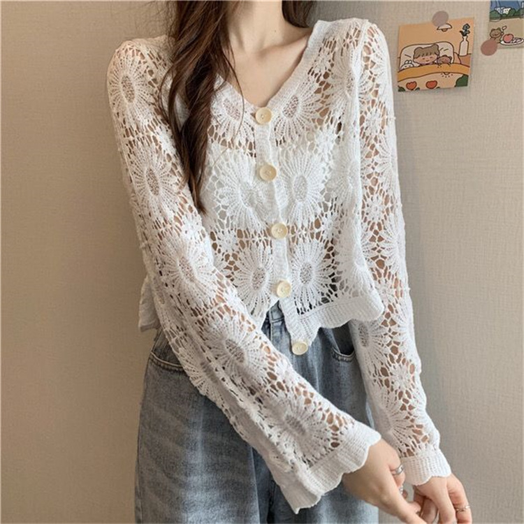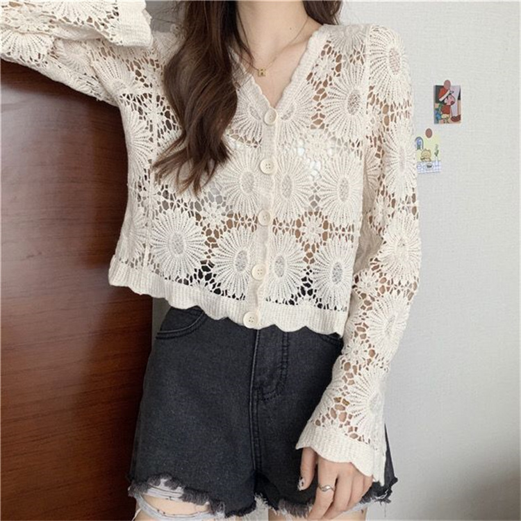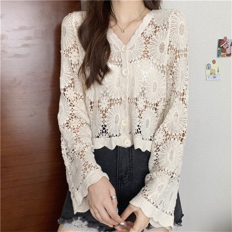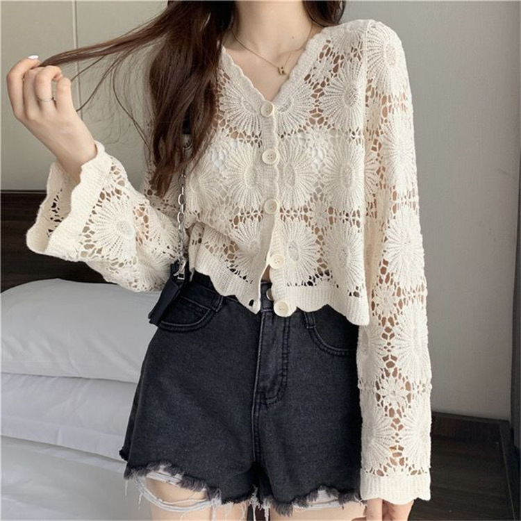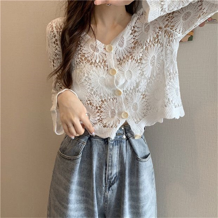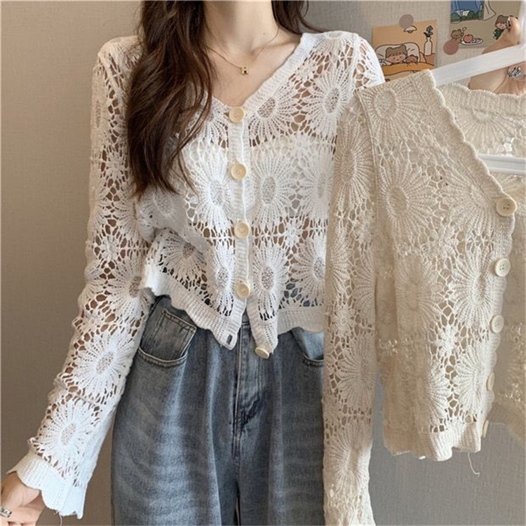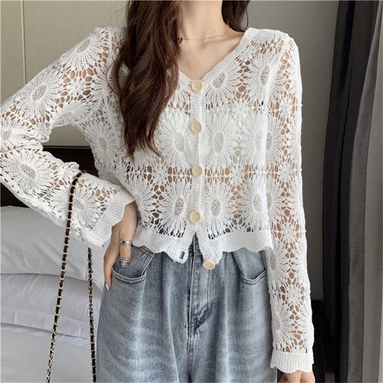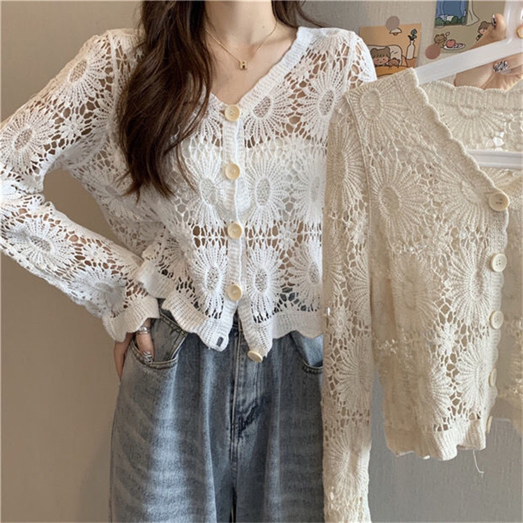 女装上衣外套外披百搭开衫短款防晒衣女刺绣镂空长袖沙滩衣防晒衫