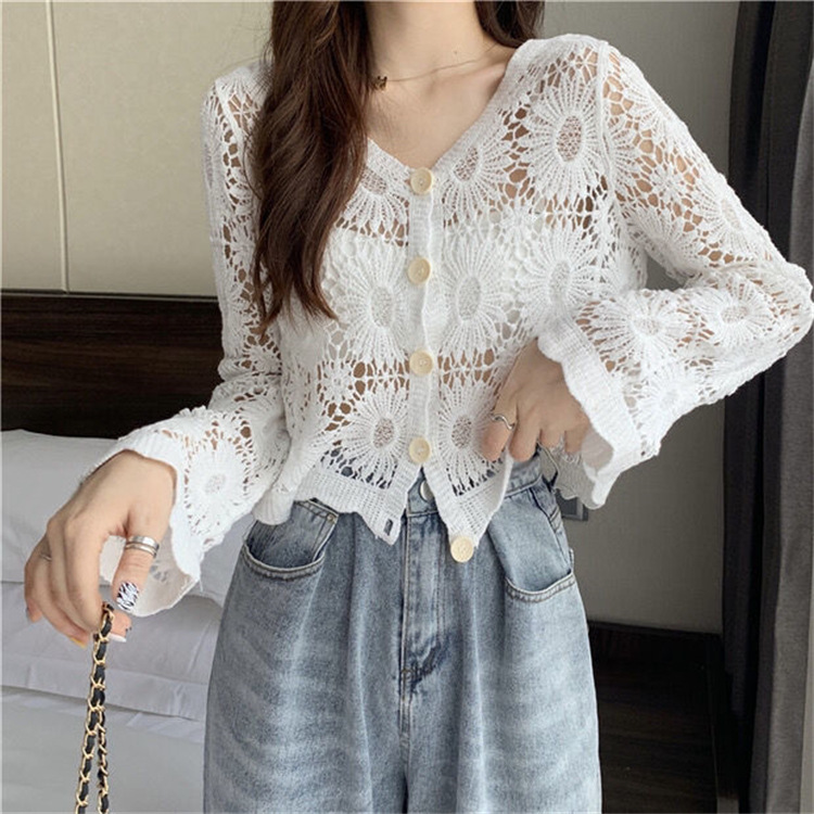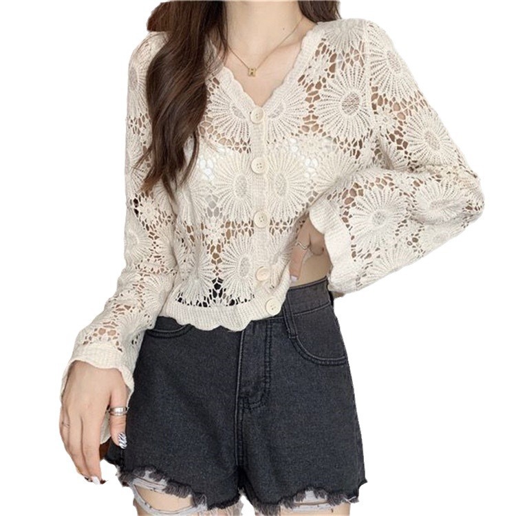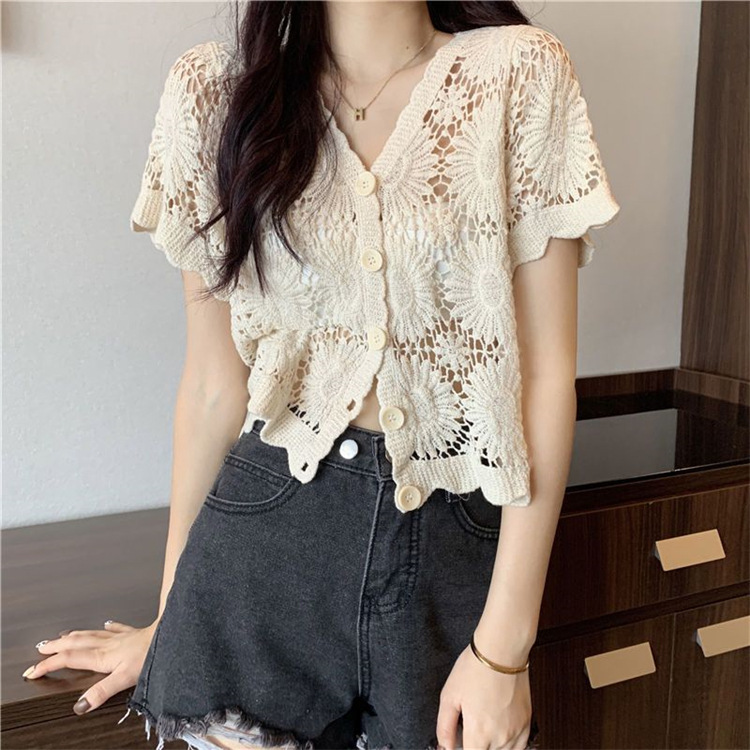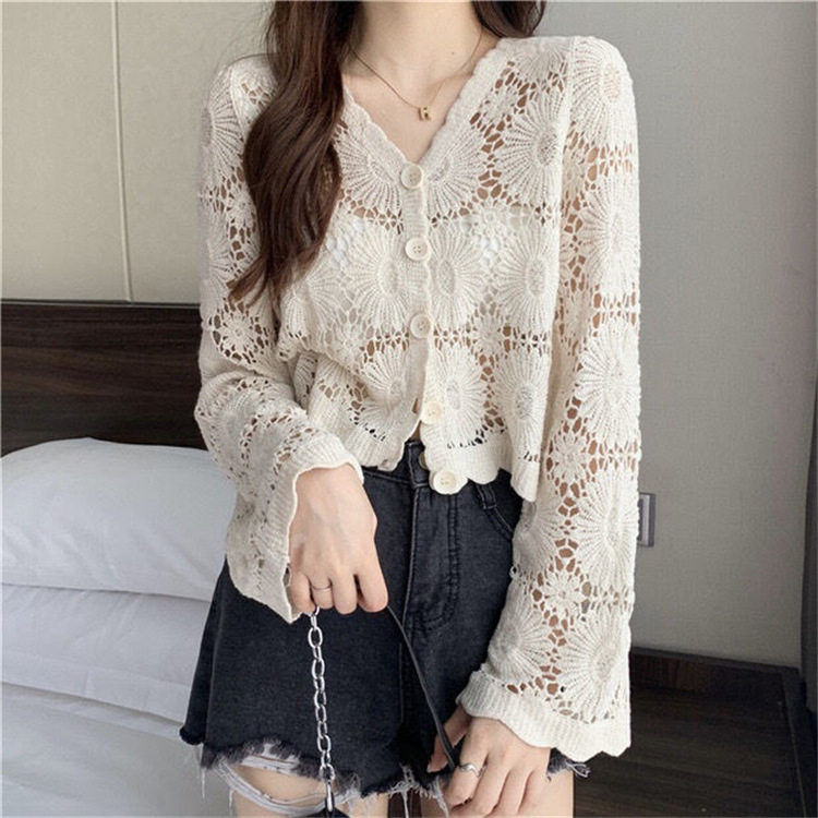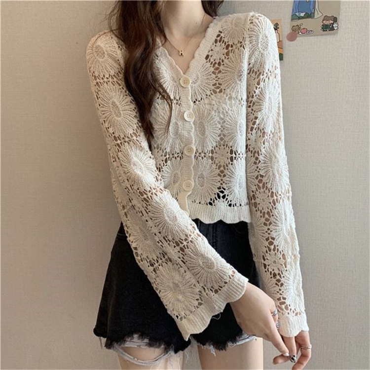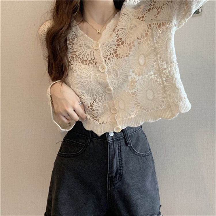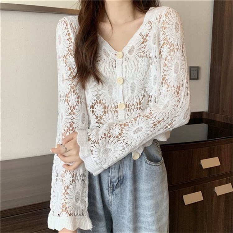 女装上衣外套外披百搭开衫短款防晒衣女刺绣镂空长袖沙滩衣防晒衫