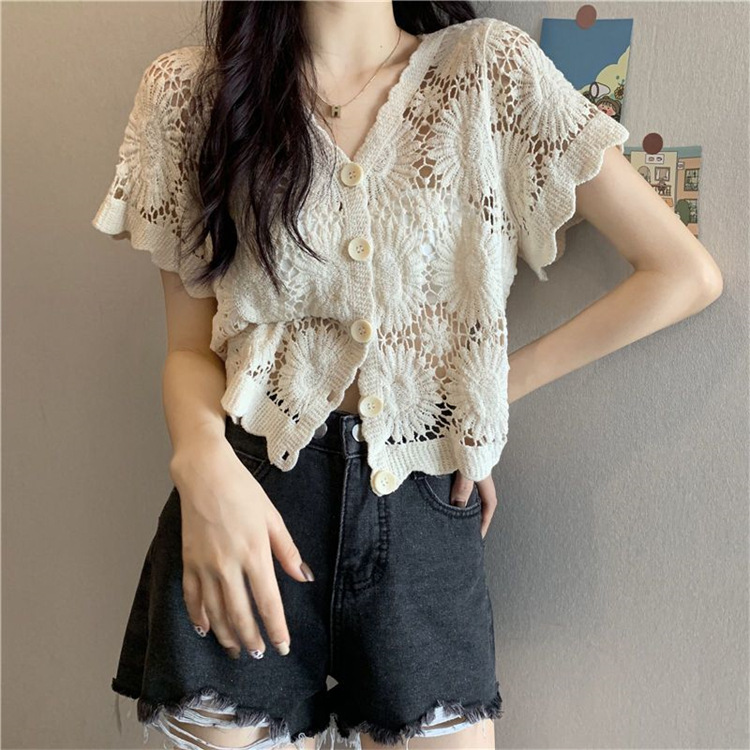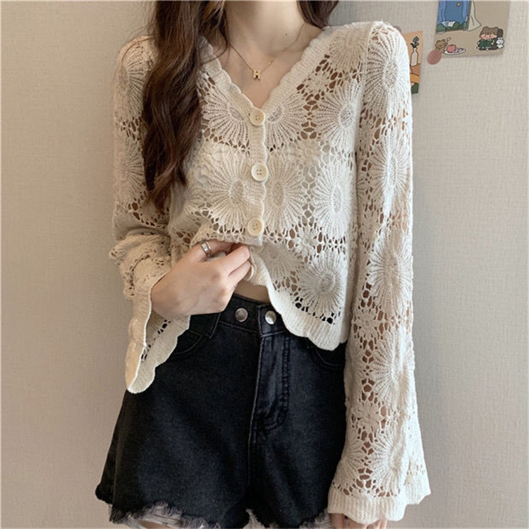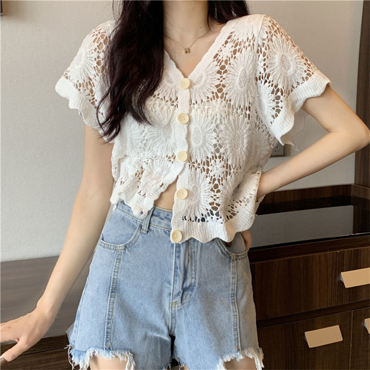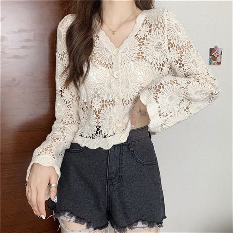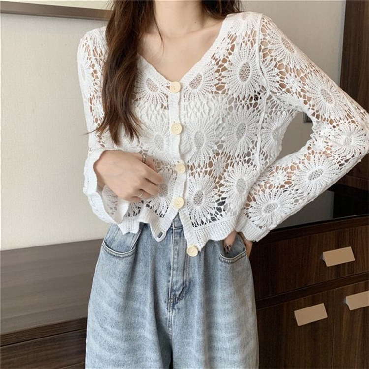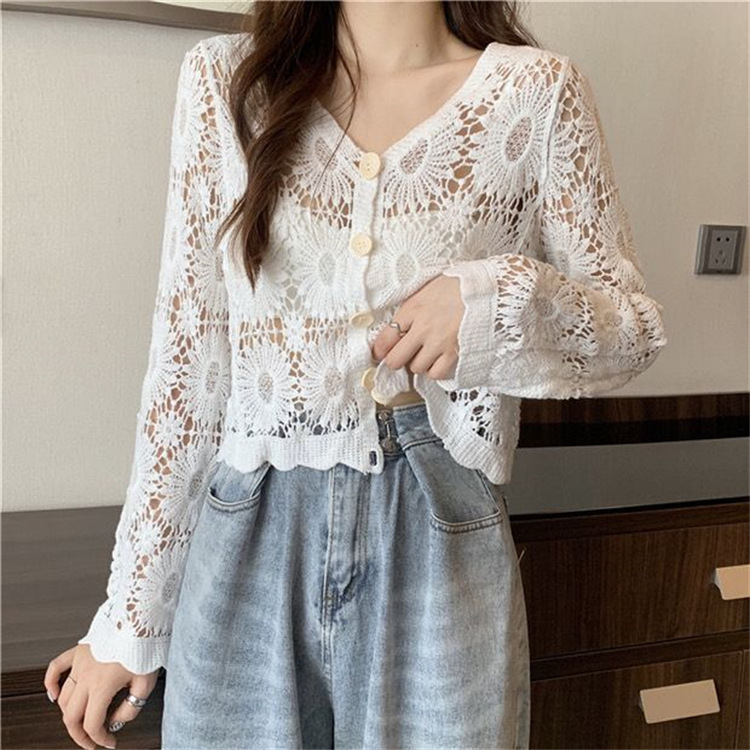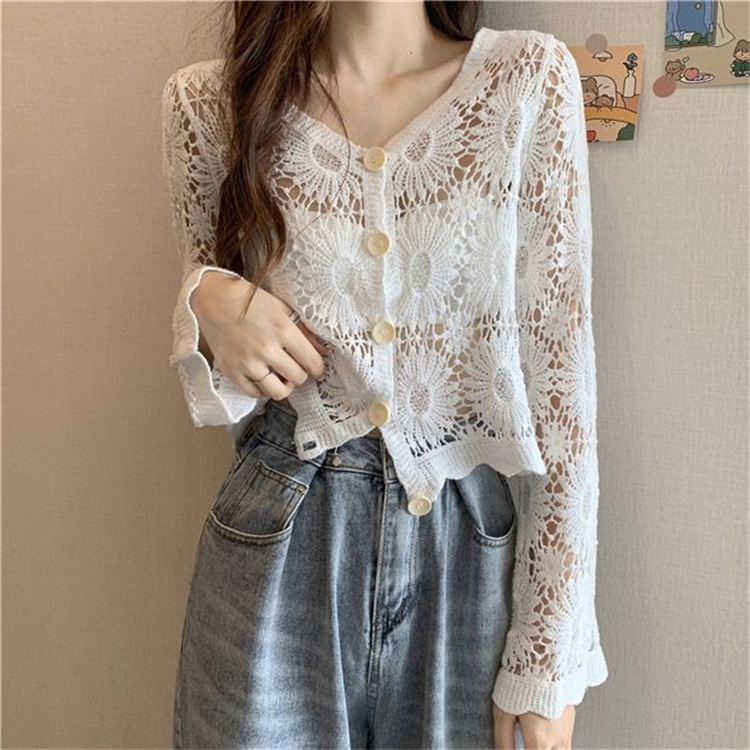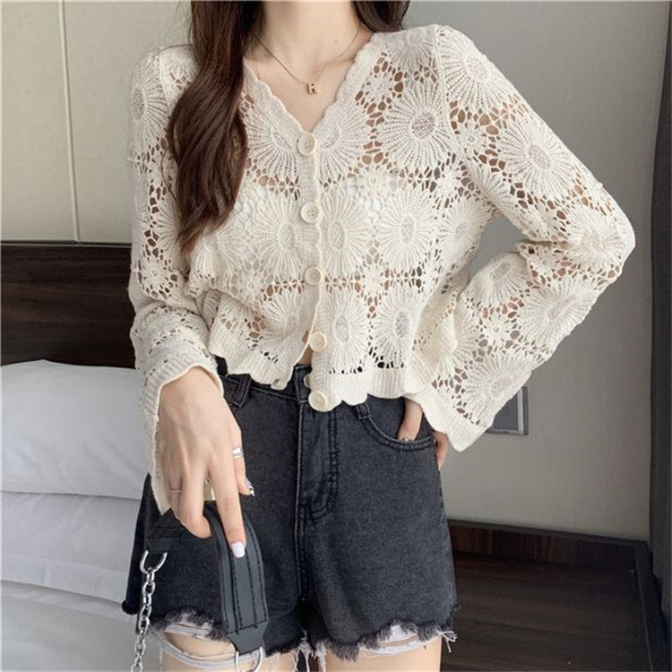 女装上衣外套外披百搭开衫短款防晒衣女刺绣镂空长袖沙滩衣防晒衫