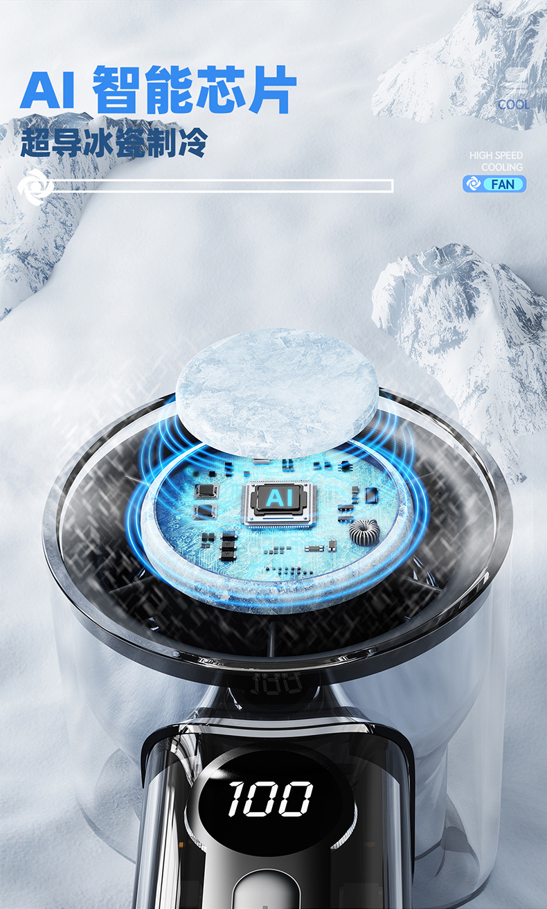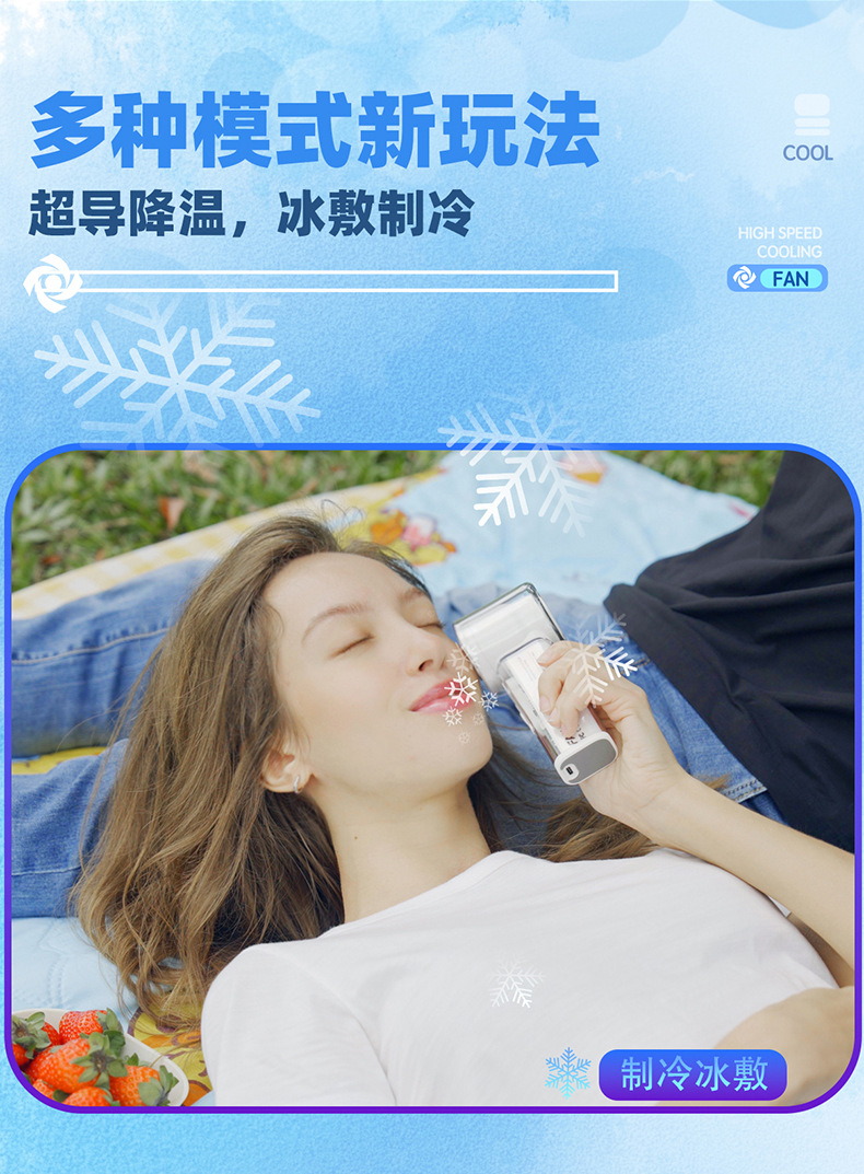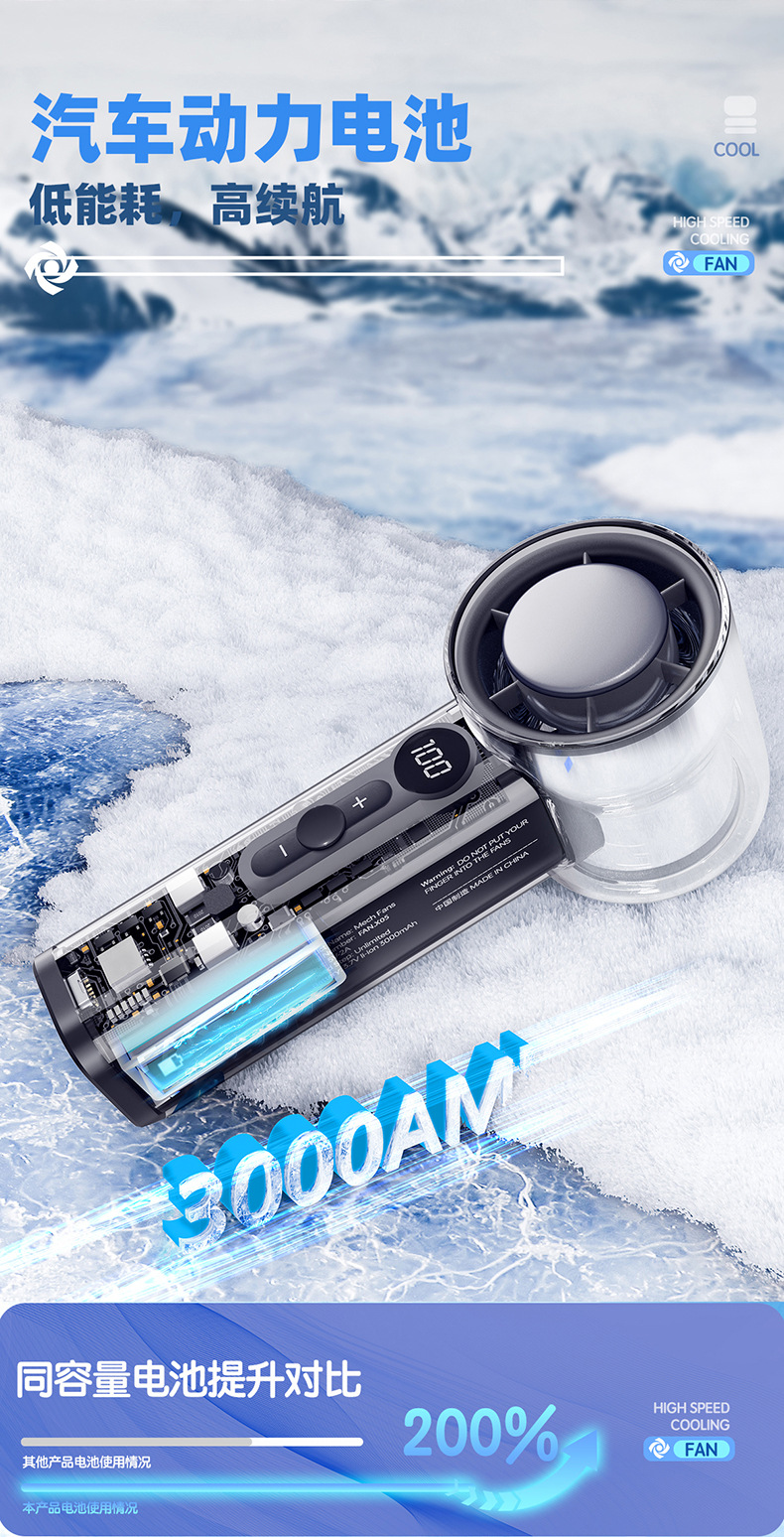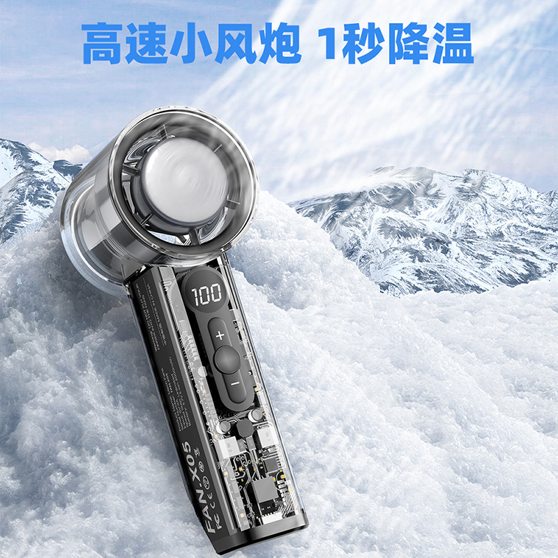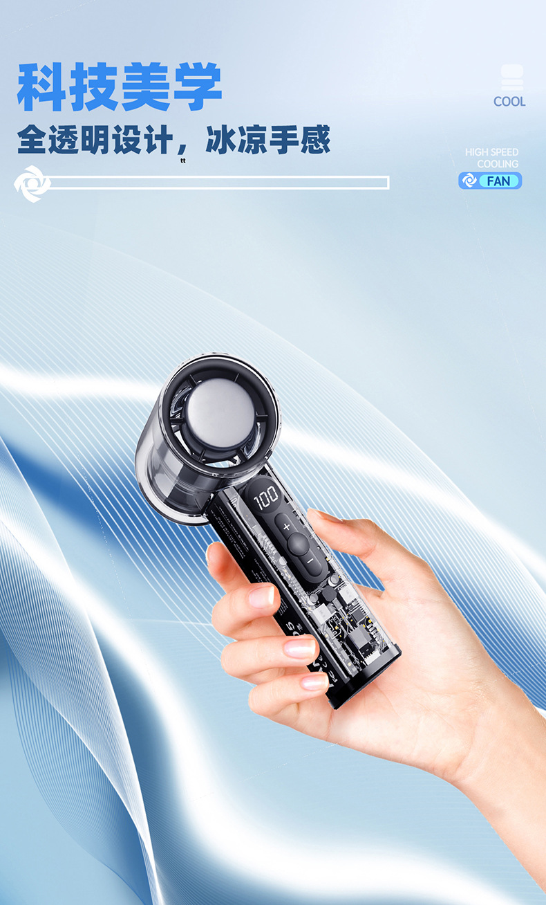 透明冰敷usb充电手持小风扇 新款冰感大风力电风扇便携式小电风扇