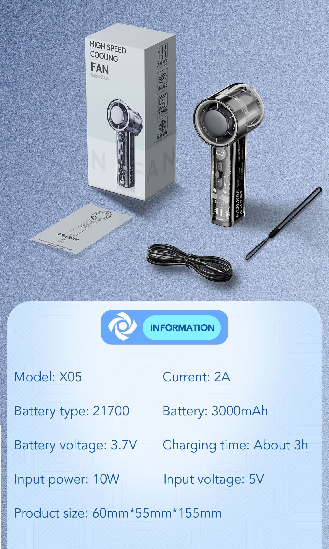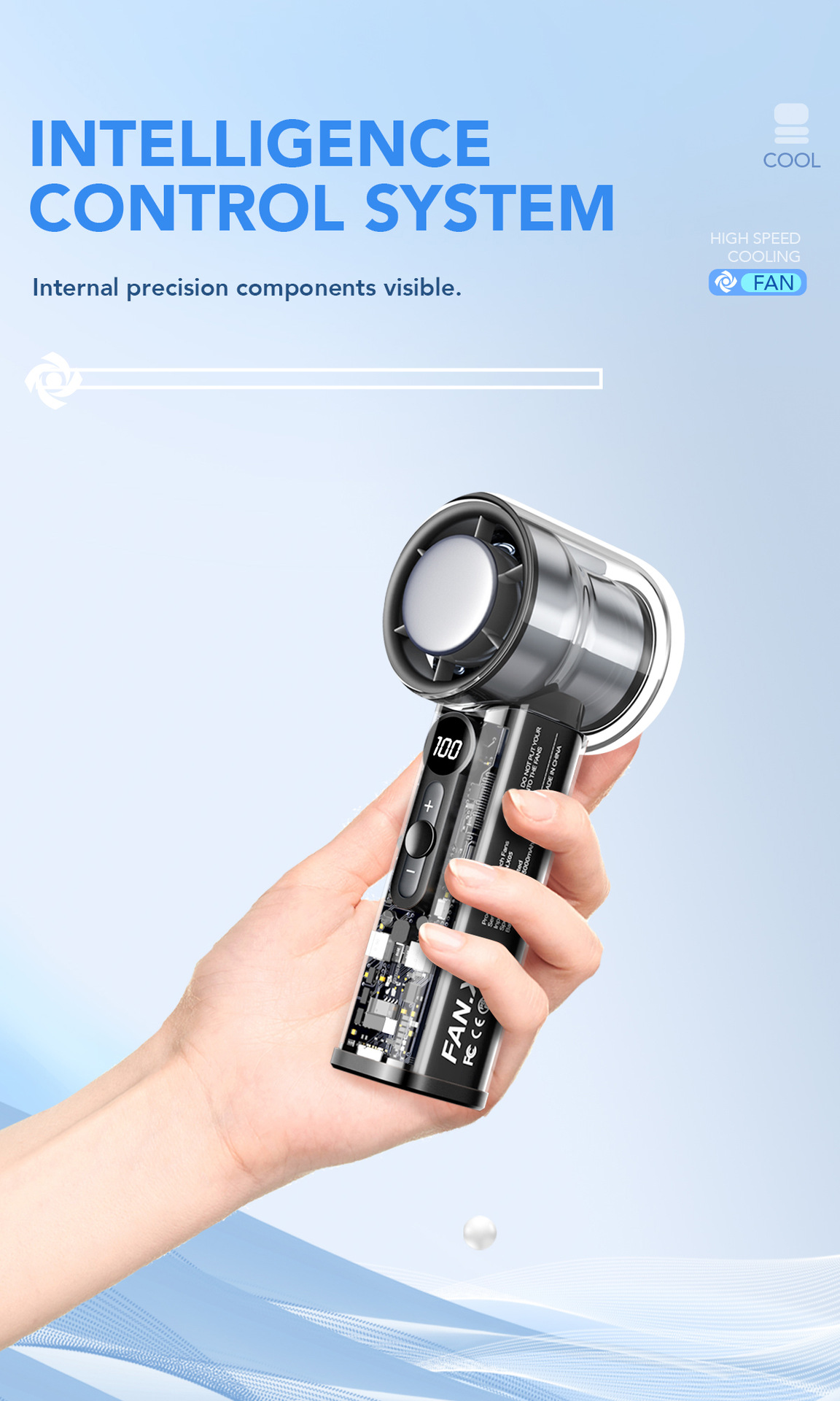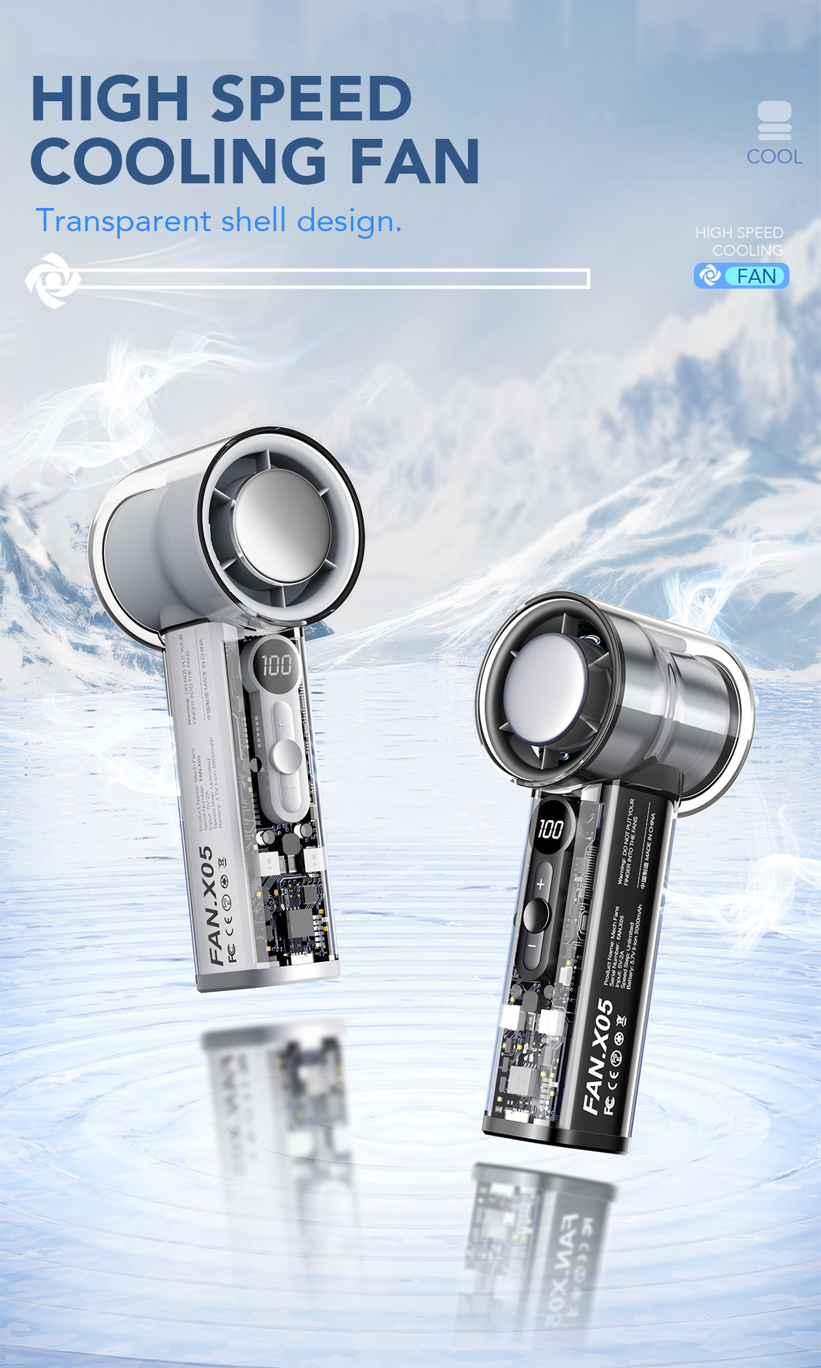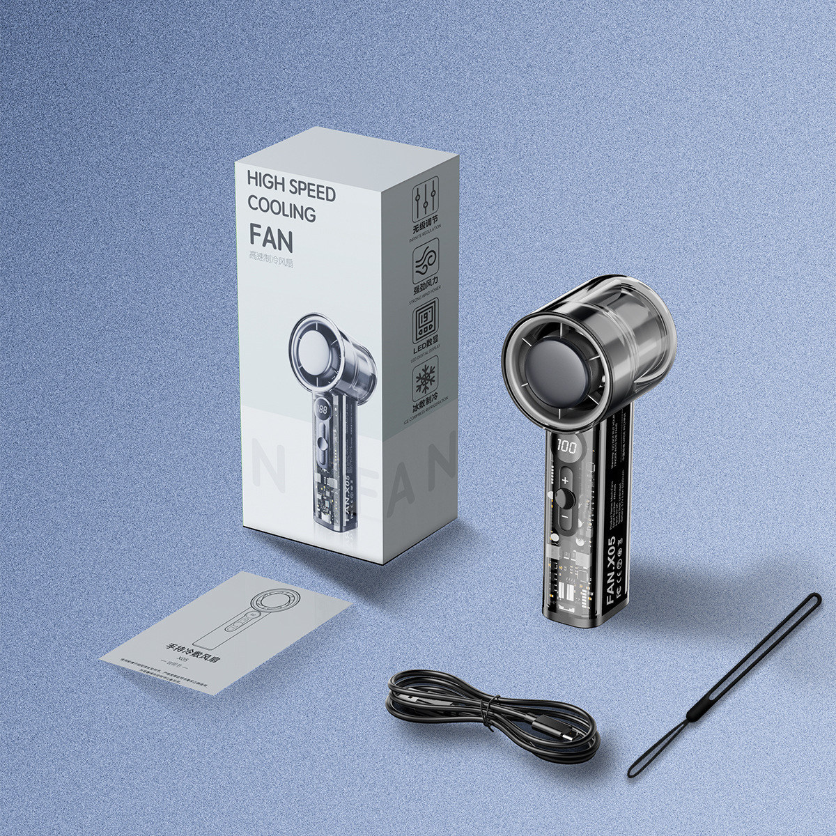 透明冰敷usb充电手持小风扇 新款冰感大风力电风扇便携式小电风扇