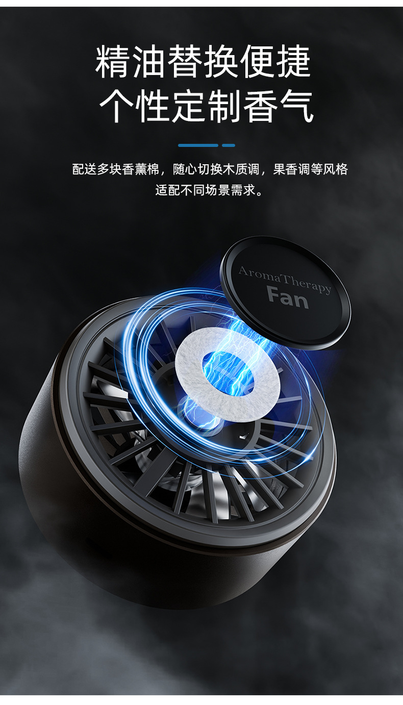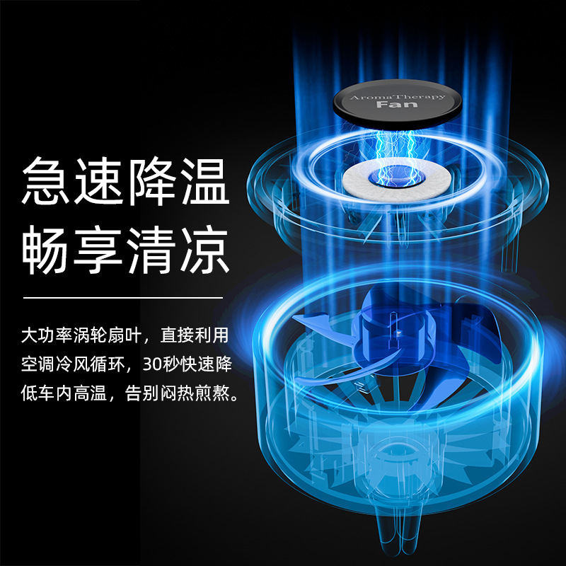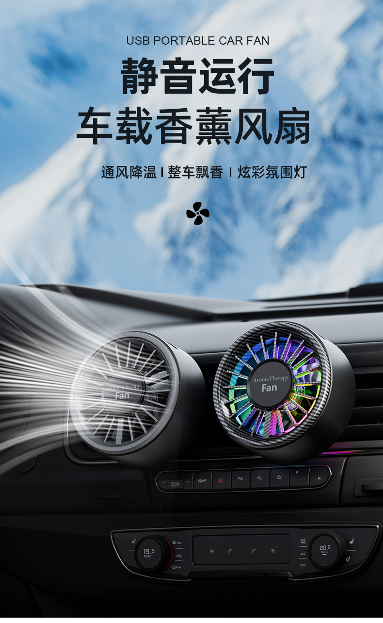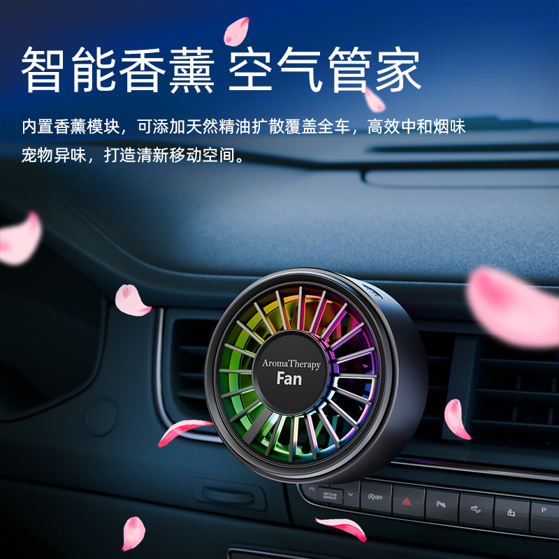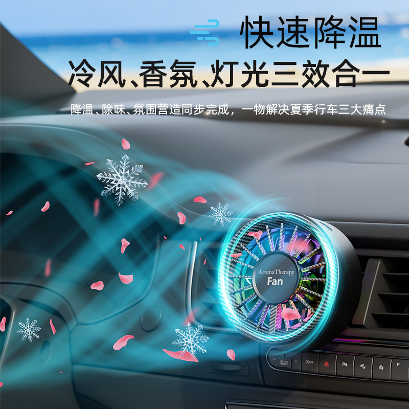 跨境爆款迷你车载香薰风扇高级感汽车usb小风扇创意空调出风口