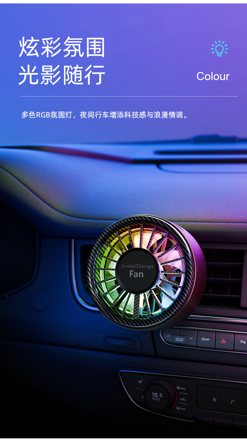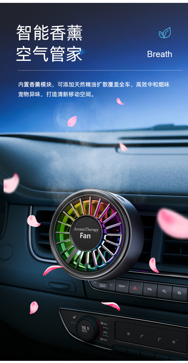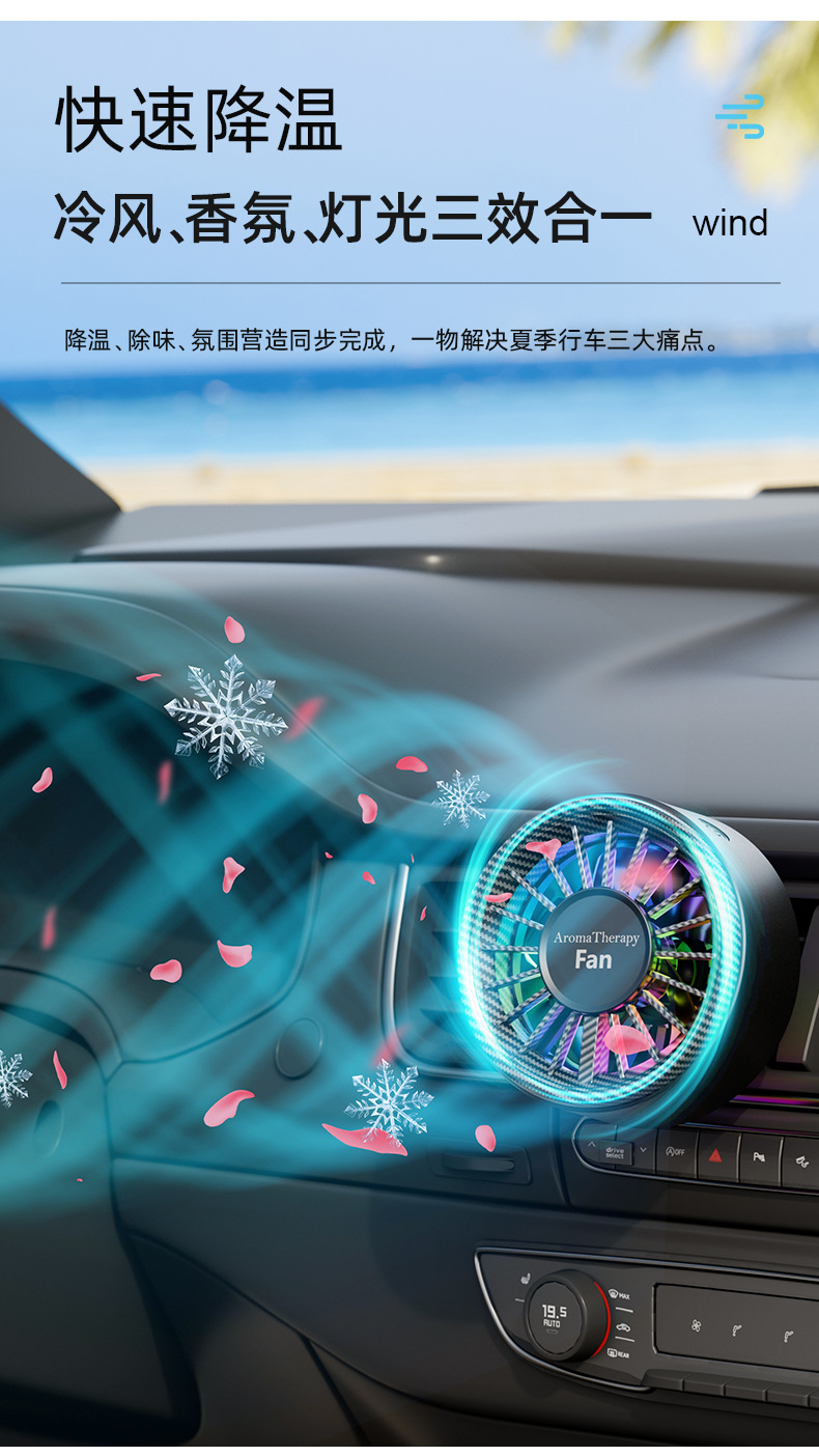 跨境爆款迷你车载香薰风扇高级感汽车usb小风扇创意空调出风口