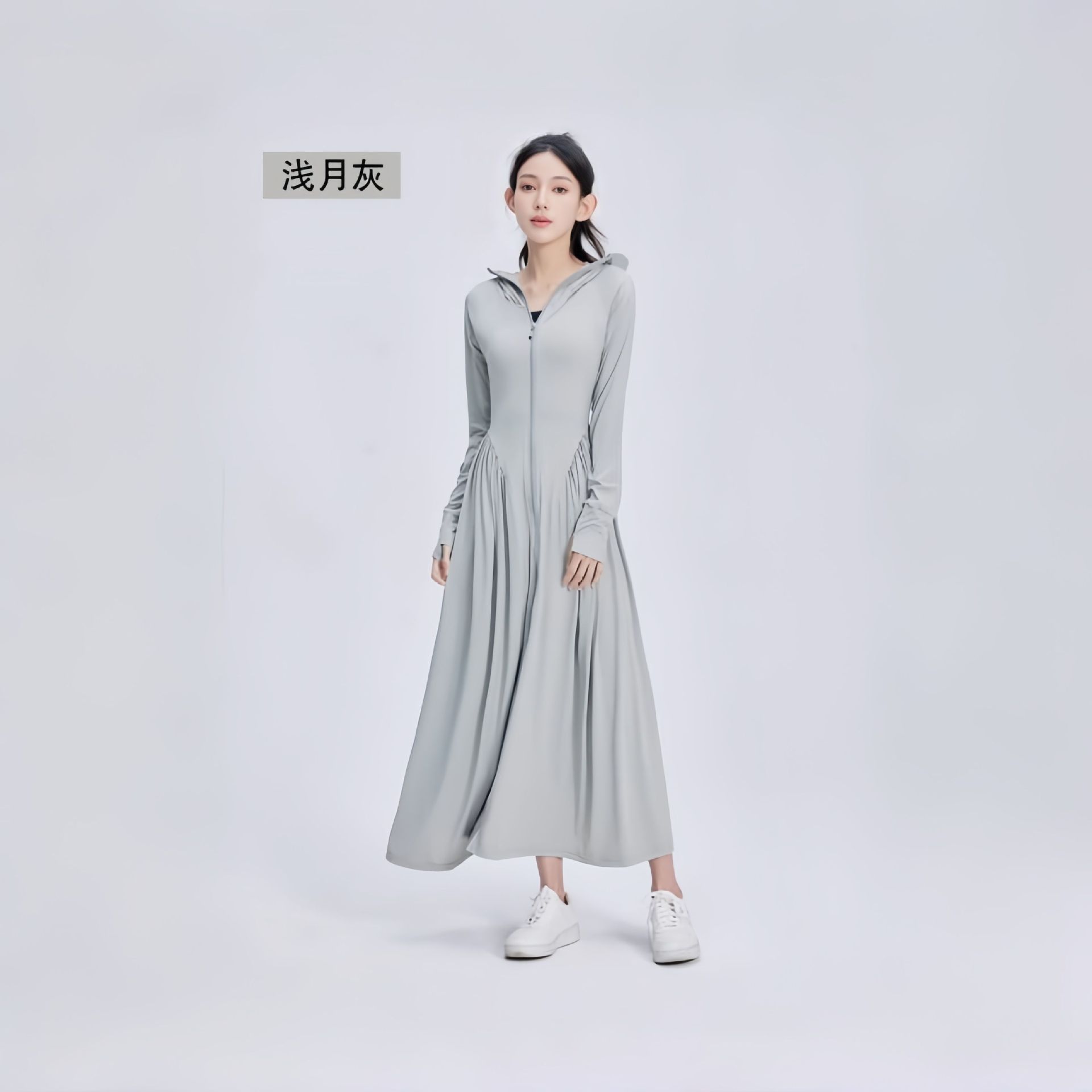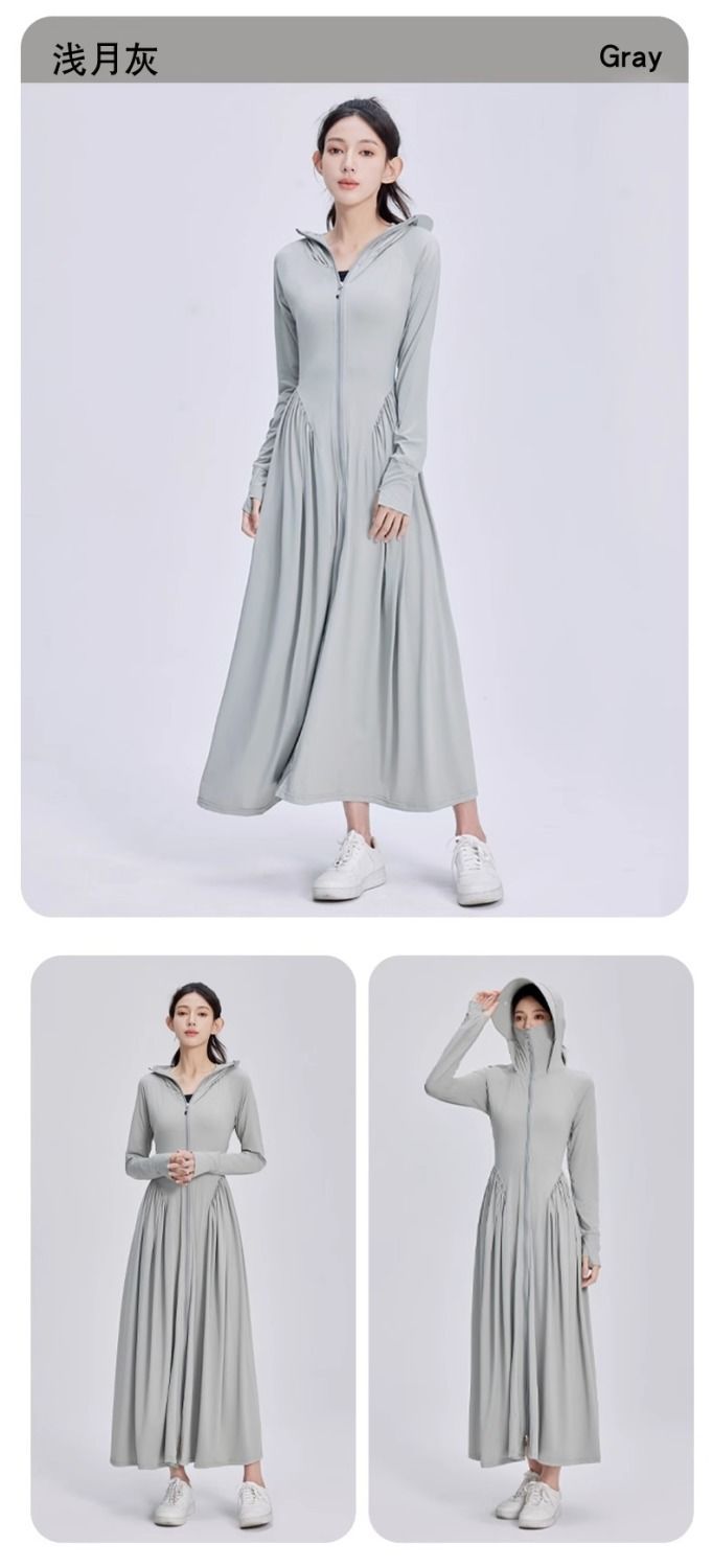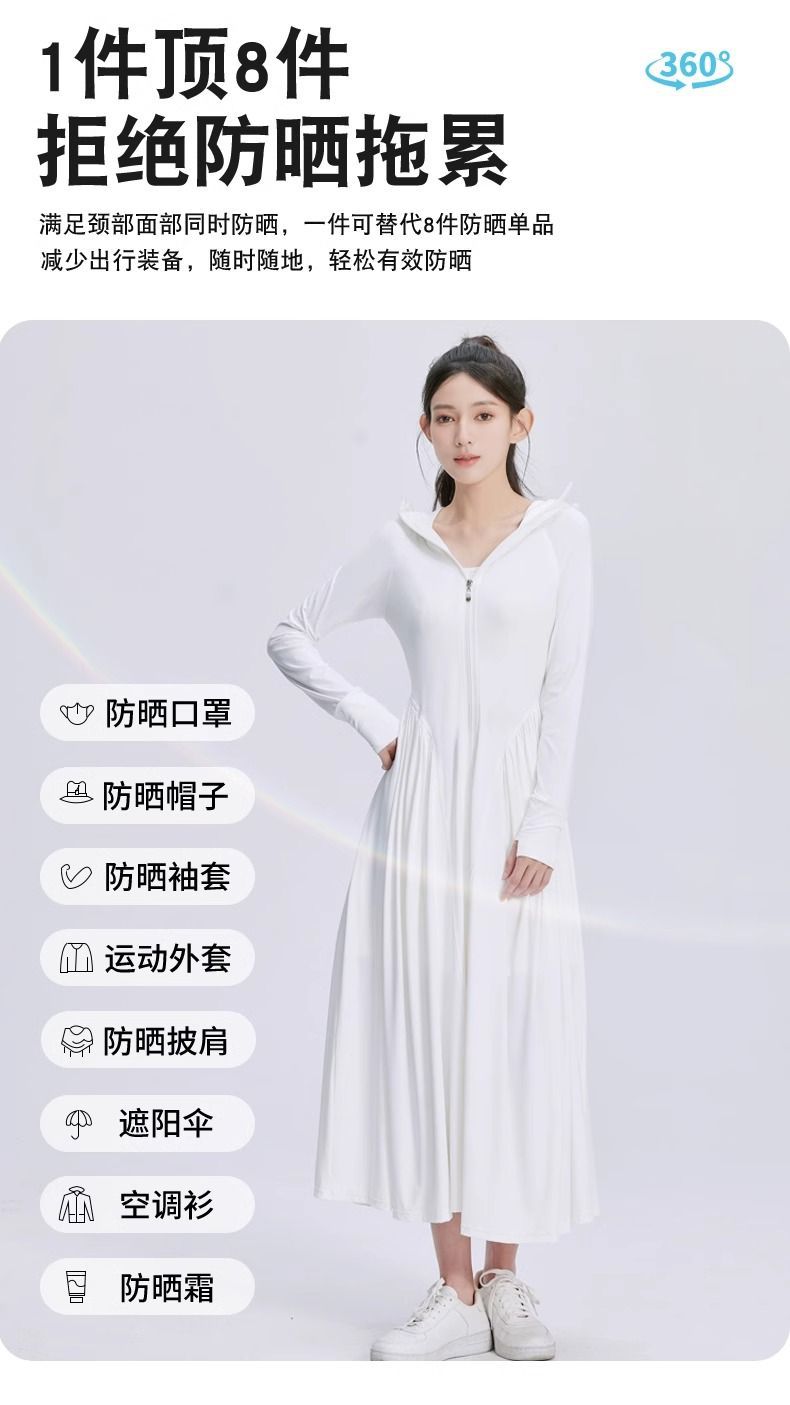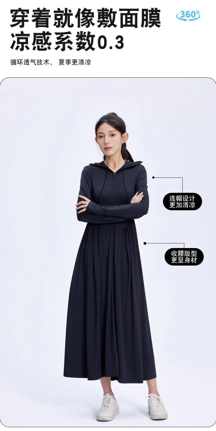 冰丝防晒衣女长款全身连帽收腰夏季轻薄透气防紫外线修身防晒裙子