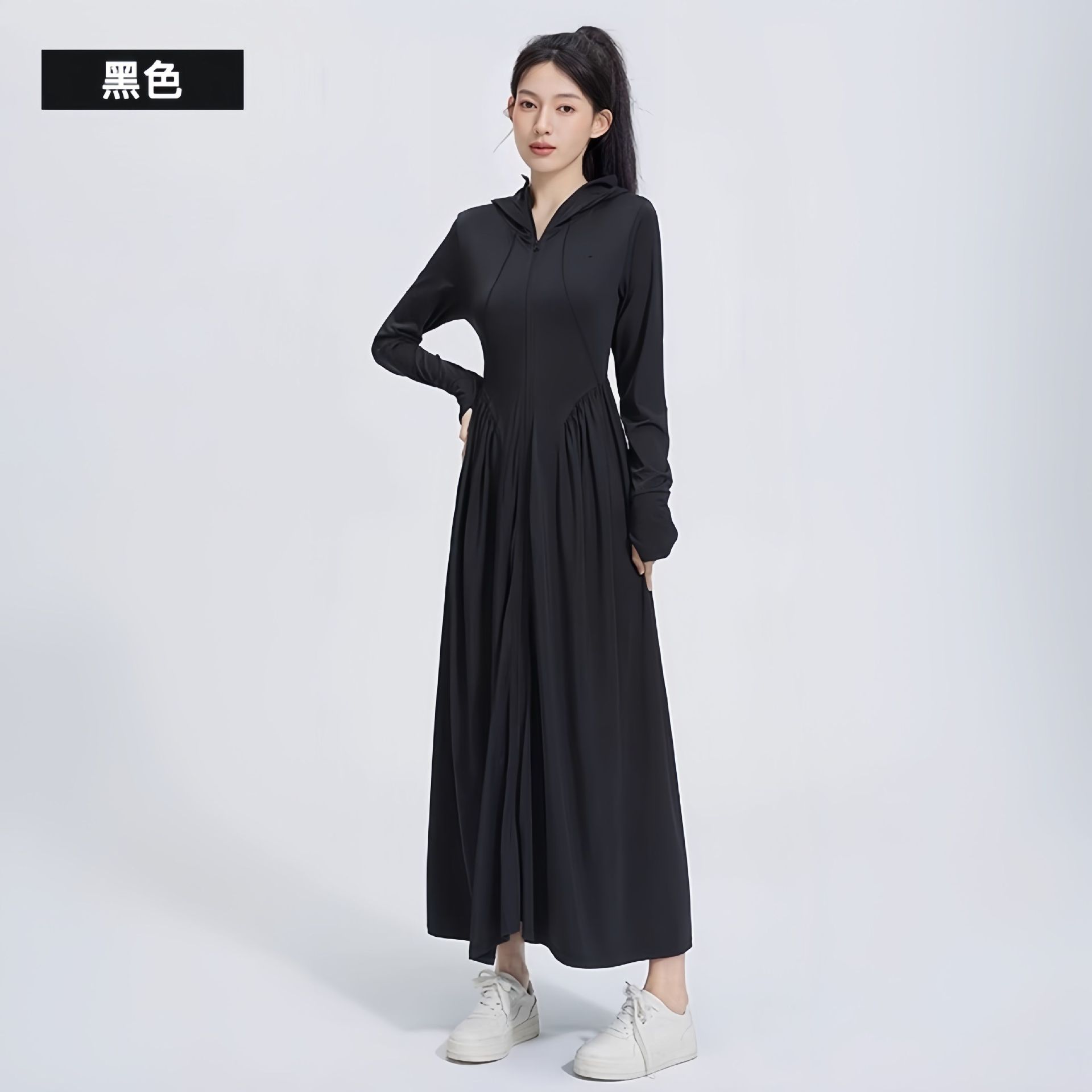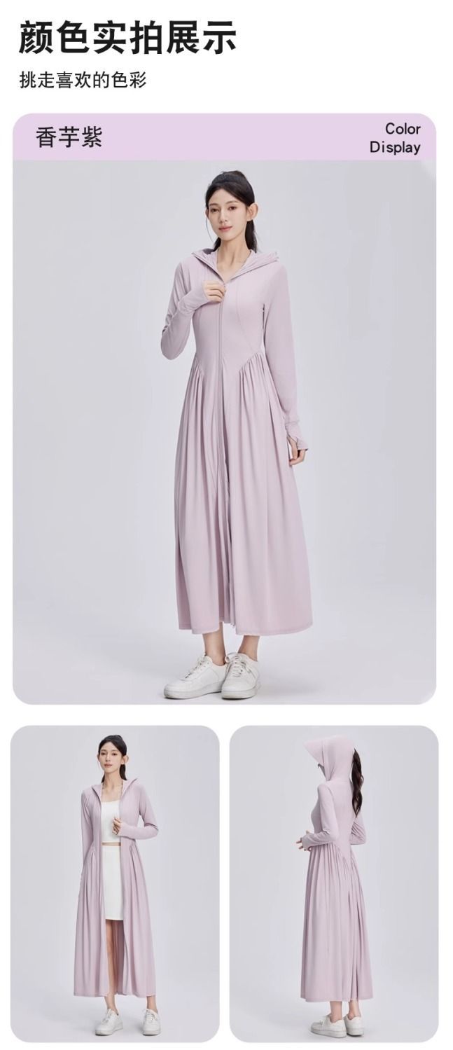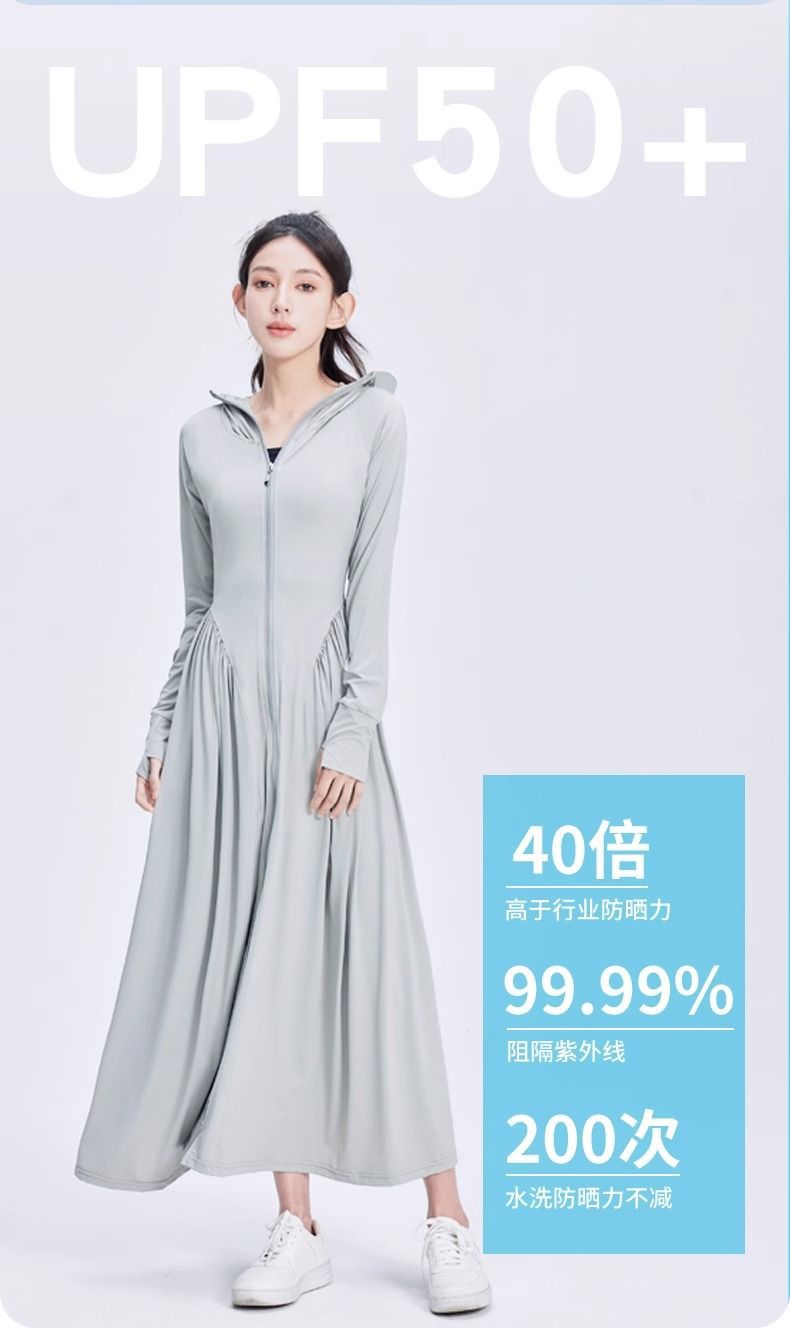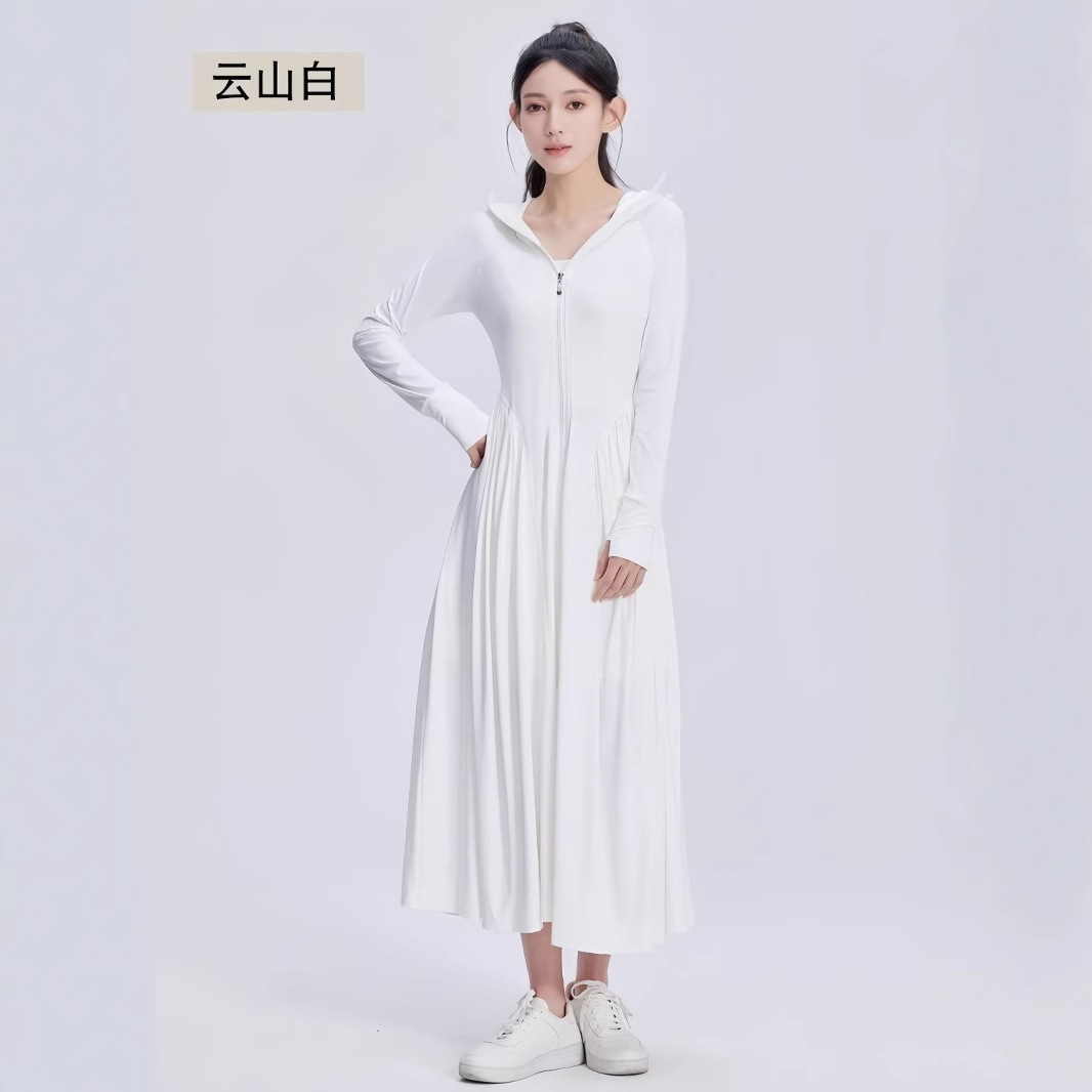 冰丝防晒衣女长款全身连帽收腰夏季轻薄透气防紫外线修身防晒裙子