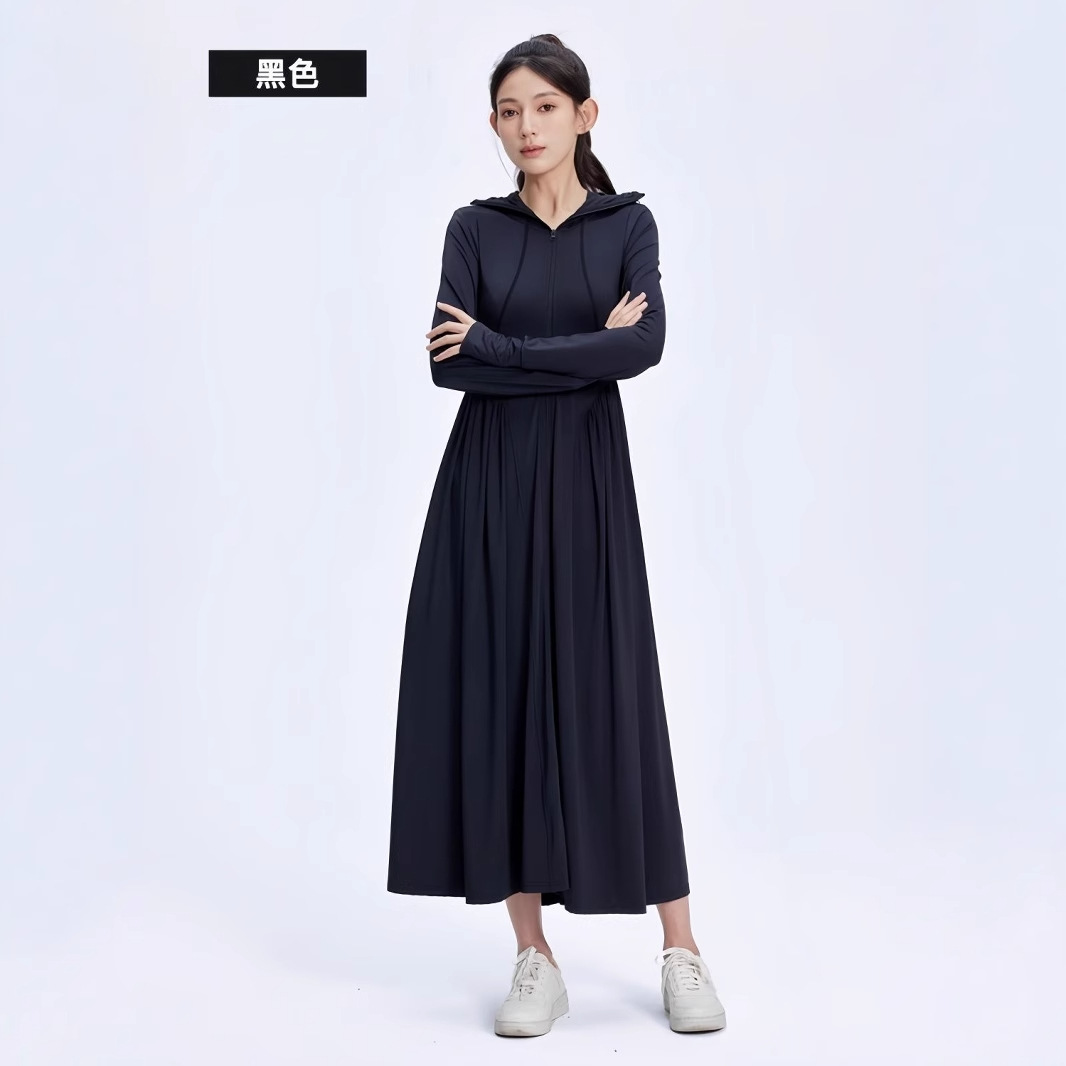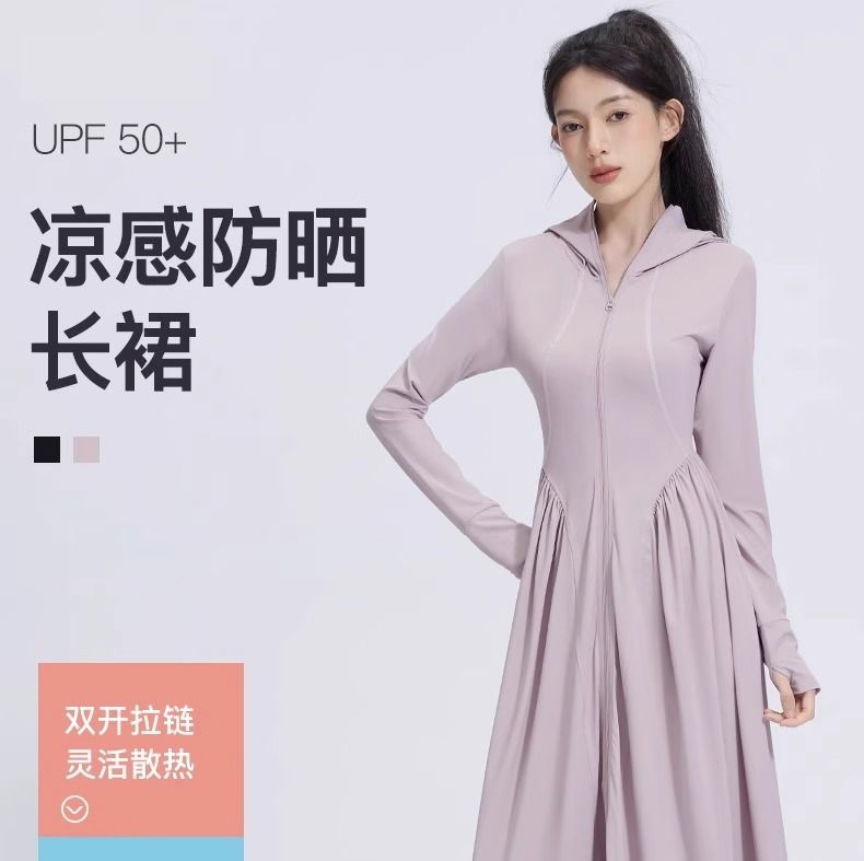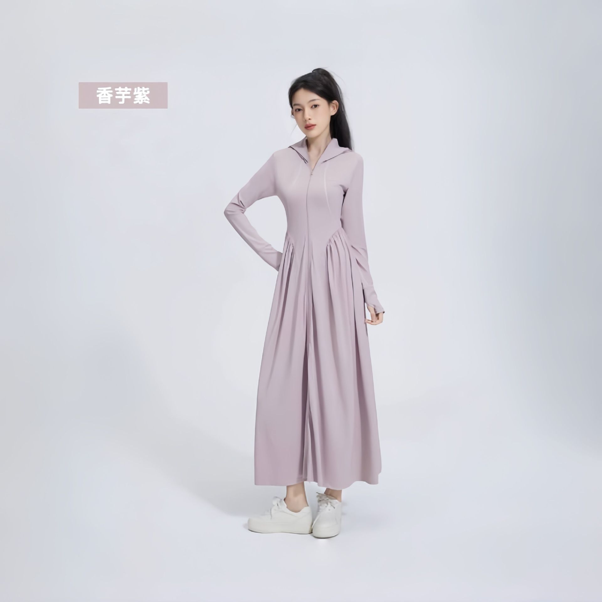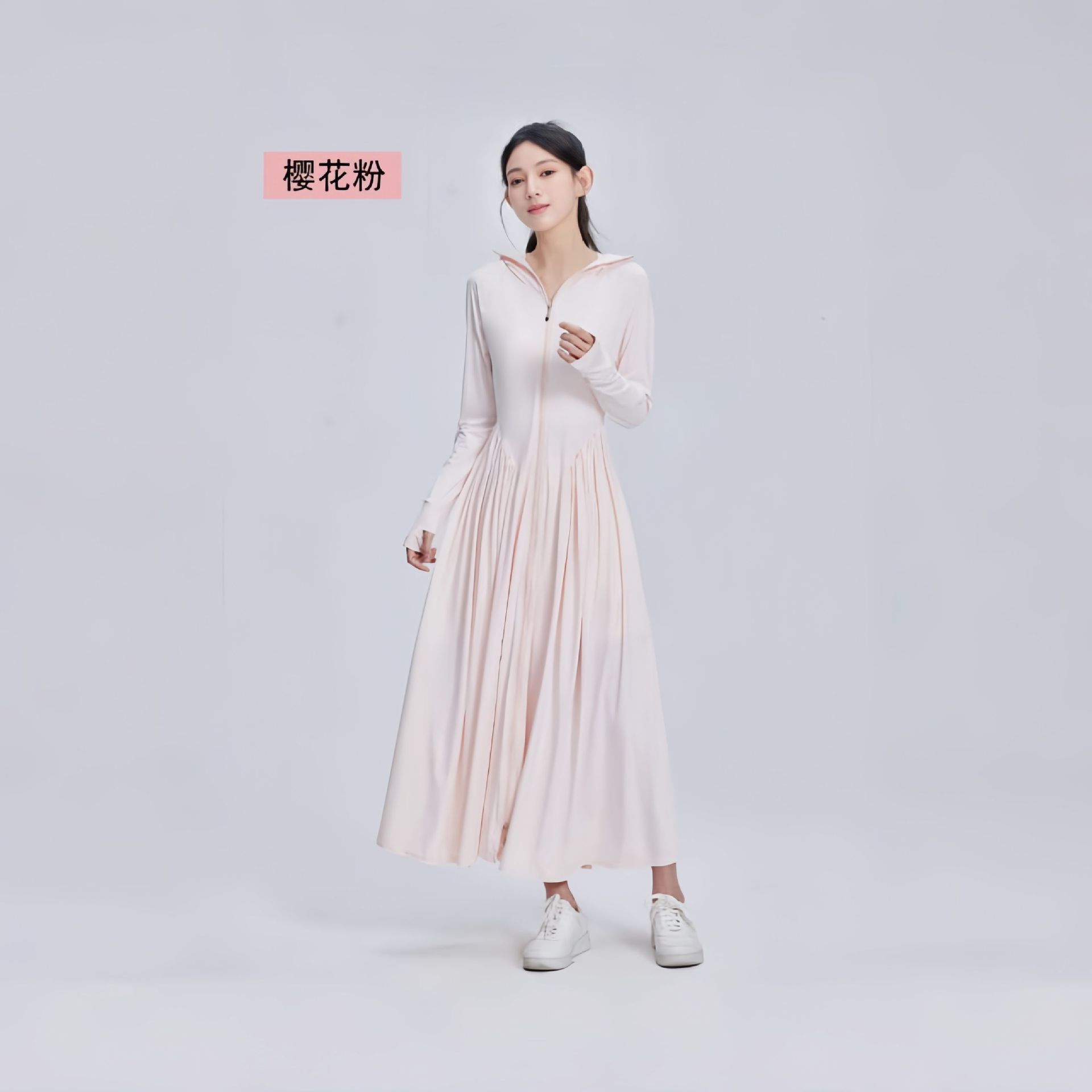 冰丝防晒衣女长款全身连帽收腰夏季轻薄透气防紫外线修身防晒裙子