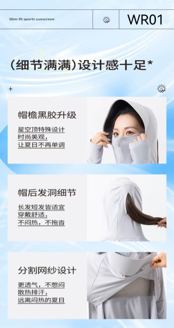 WR01黑胶帽檐斗篷二代防晒衣女夏外出骑行防紫外线透气冰丝防晒服