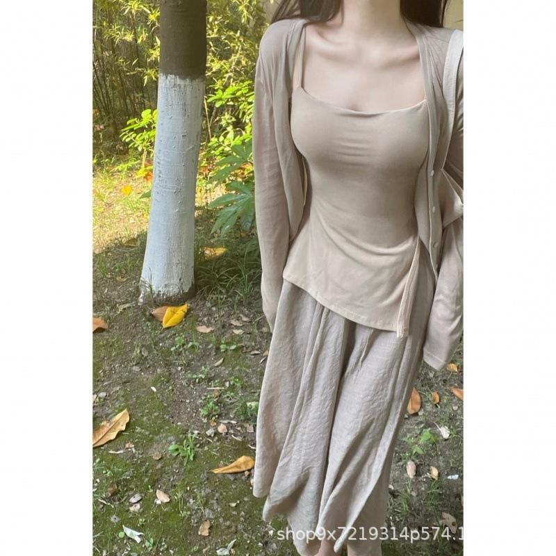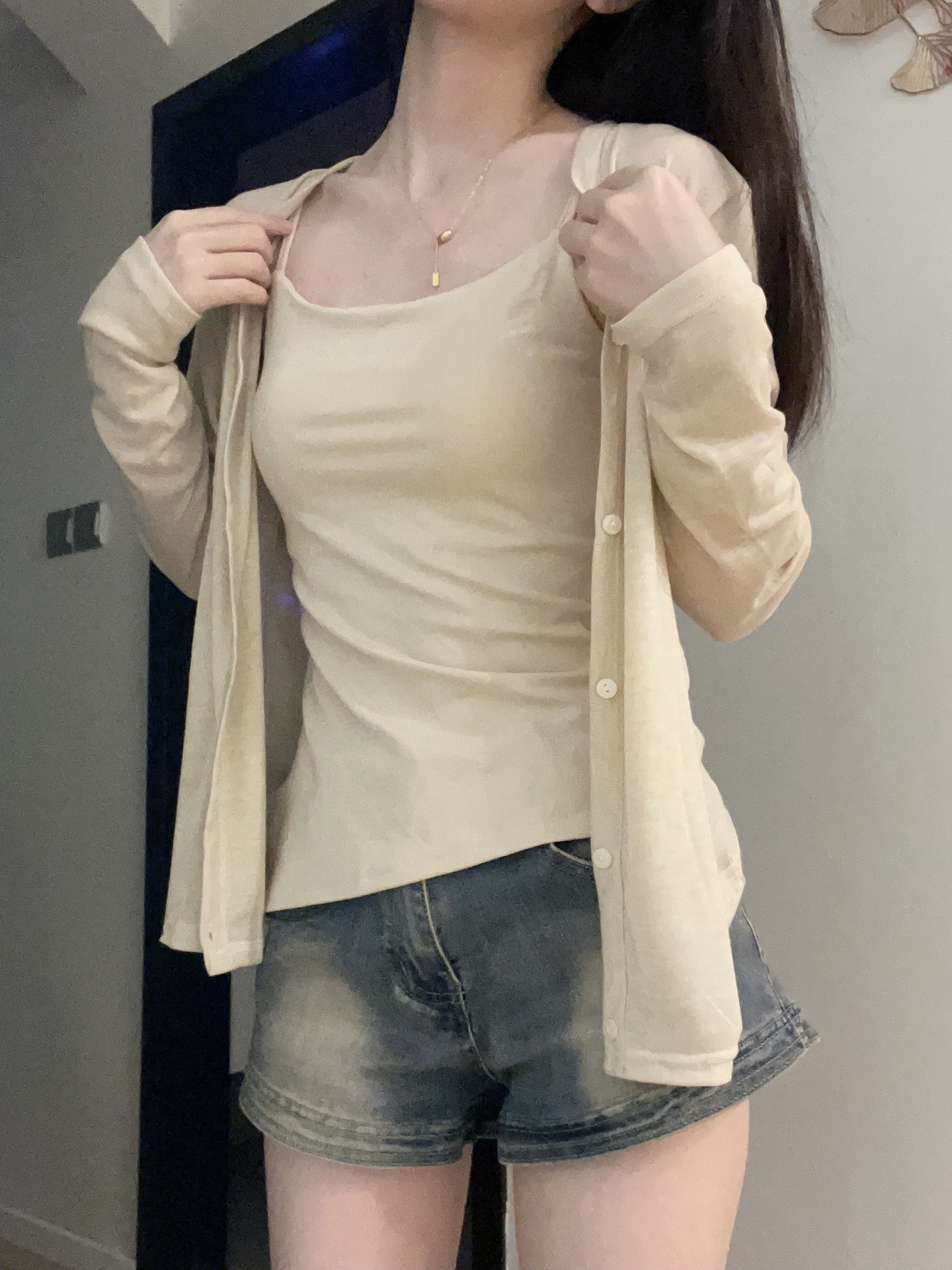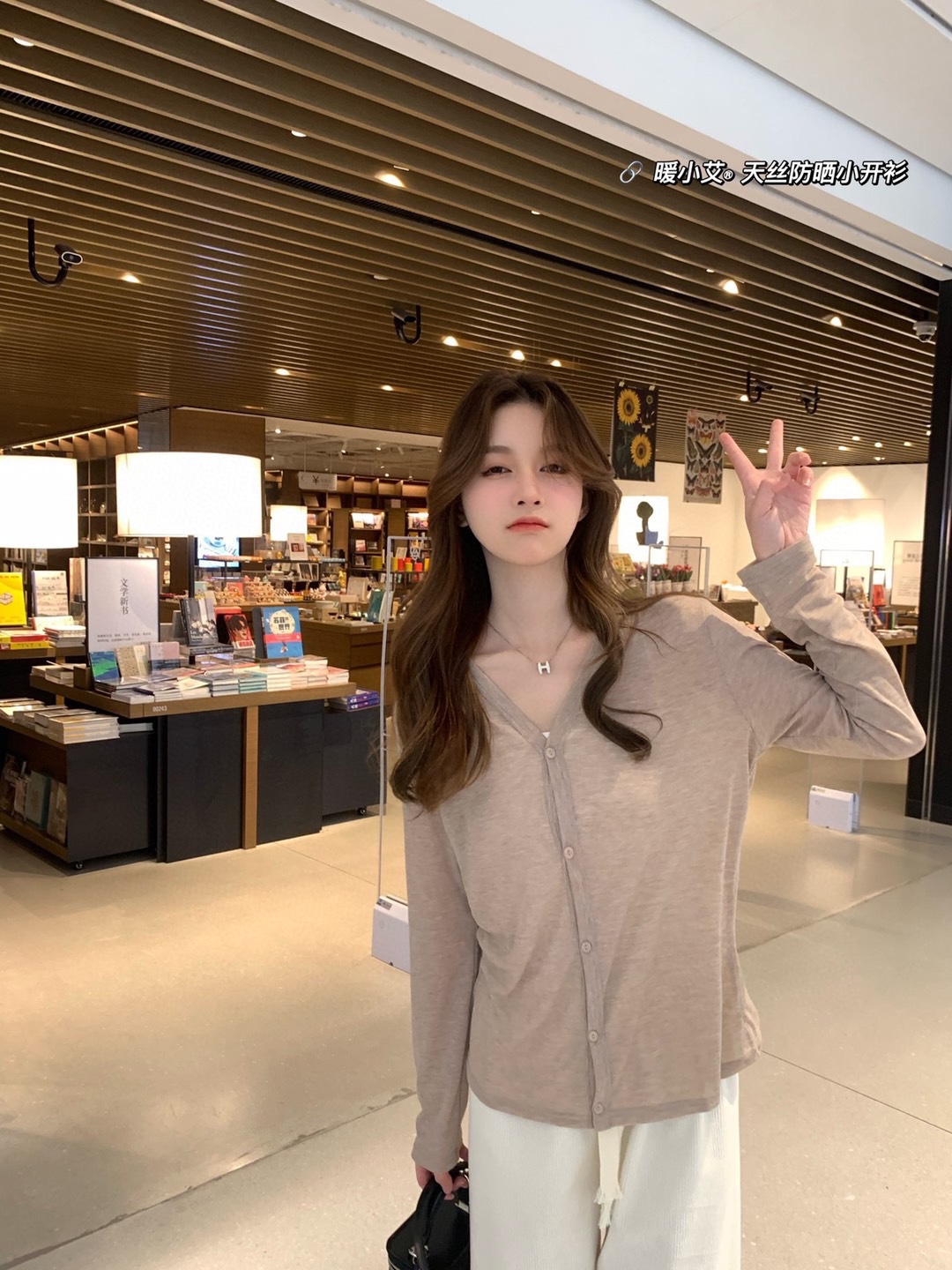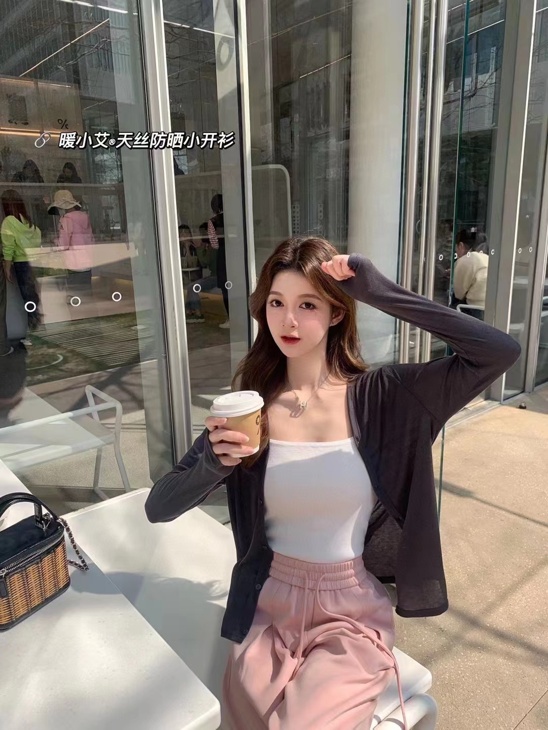 微与~夏季天丝防晒小开衫女薄款镂空长袖吊带外搭罩V领空调衫上衣