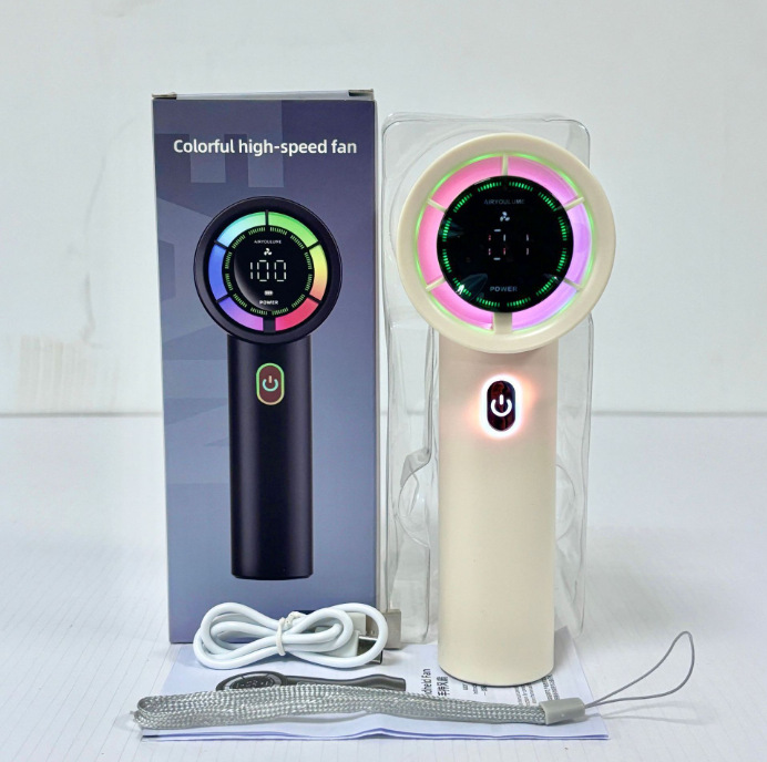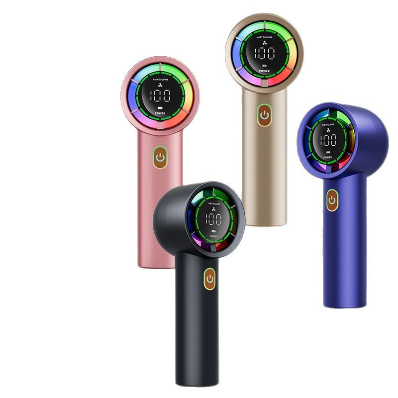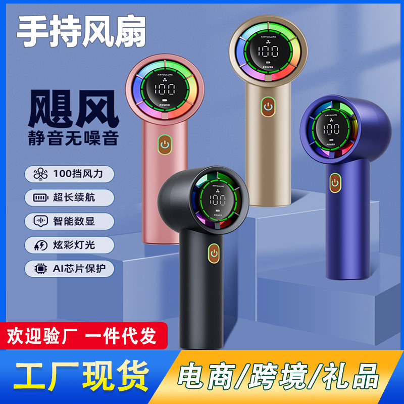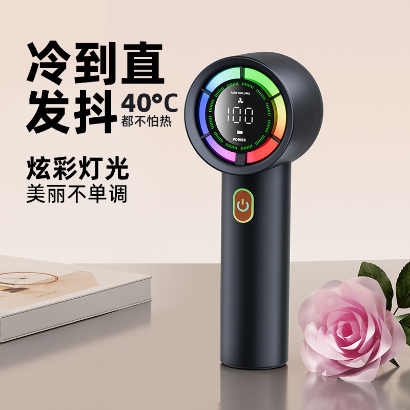 跨境迷你手持风扇数显静音高速小便携式USB充电户外涡轮可充电