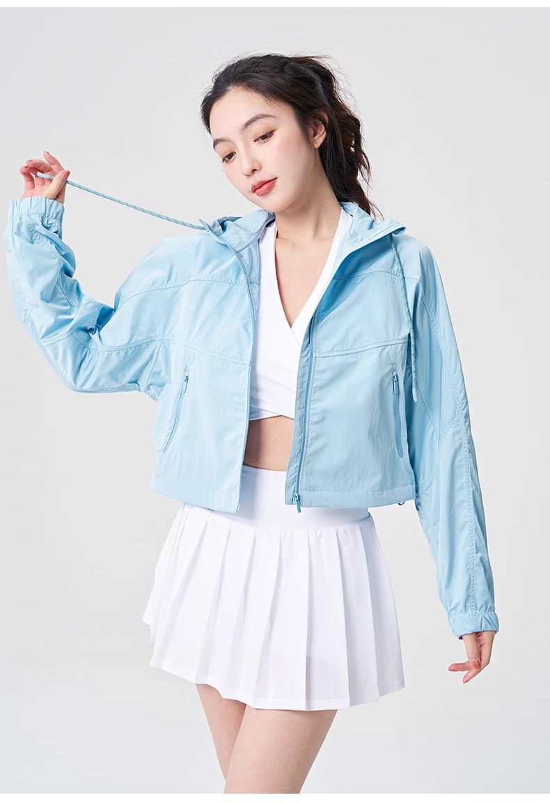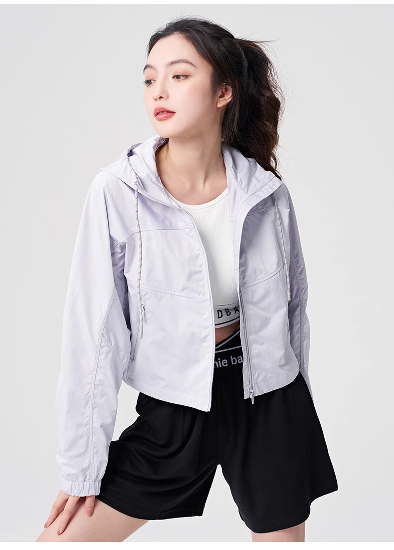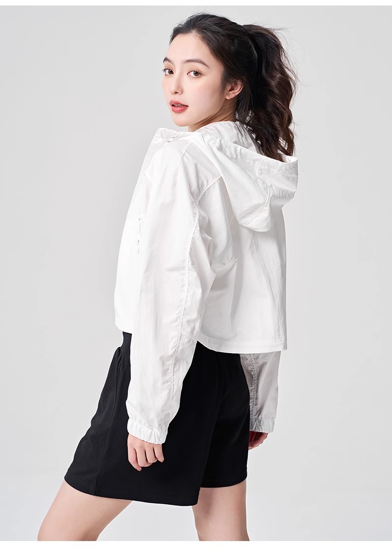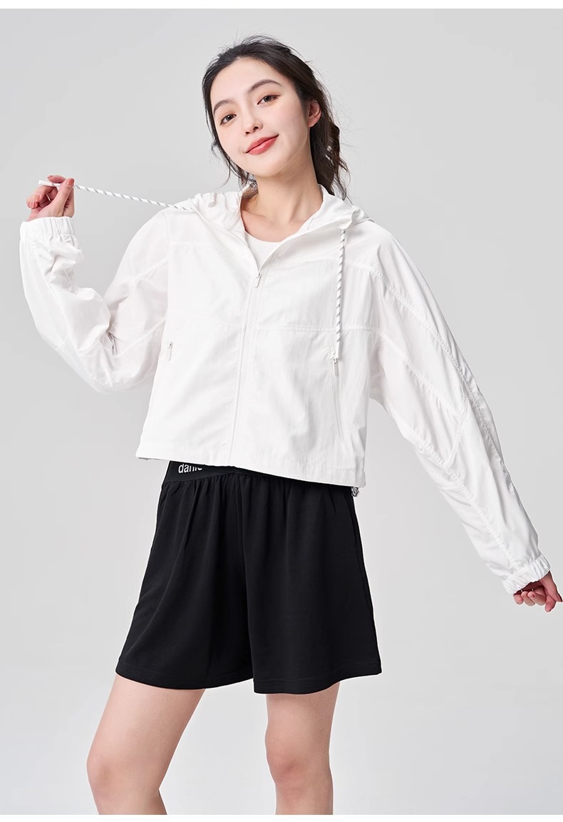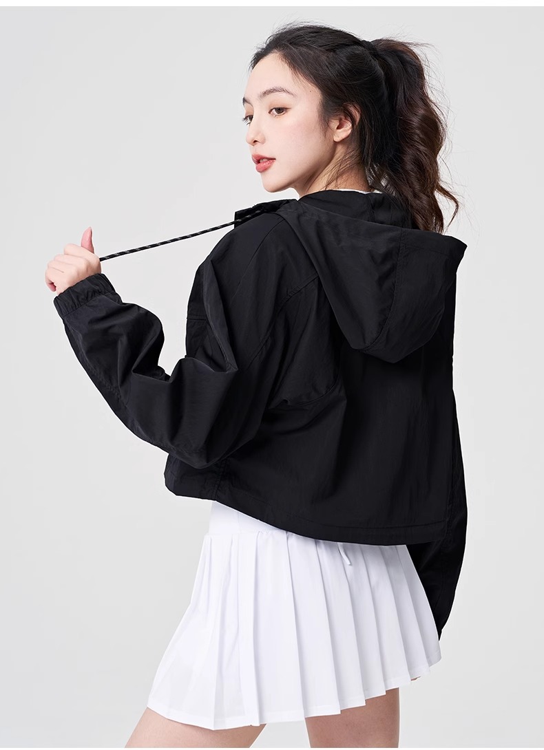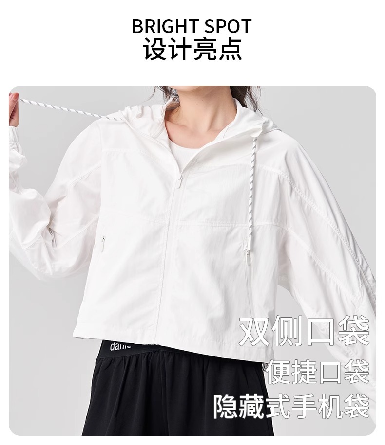 防晒服upf50+短款显瘦抽绳外套薄款防紫外线连帽秋外套女士夹克