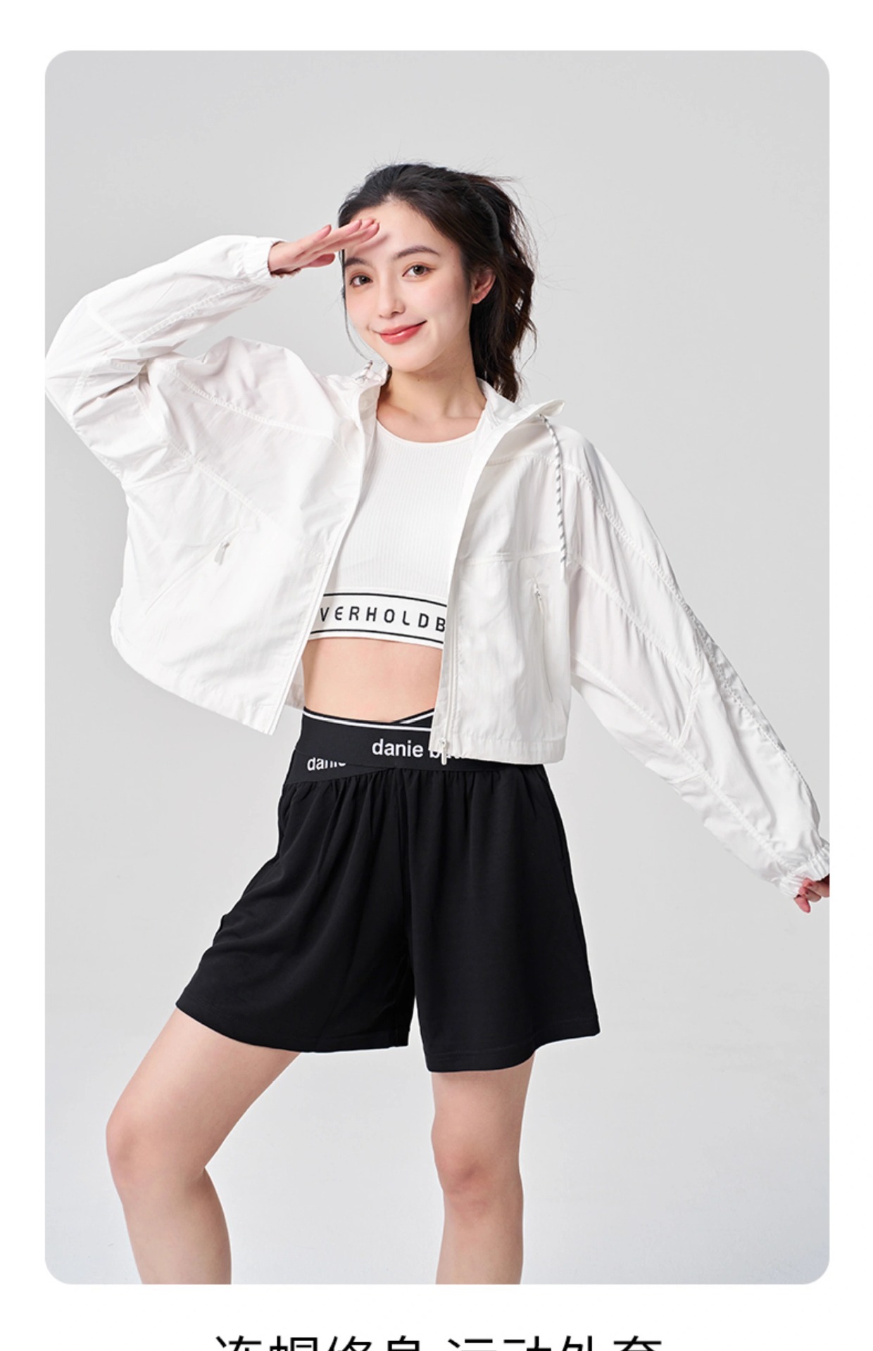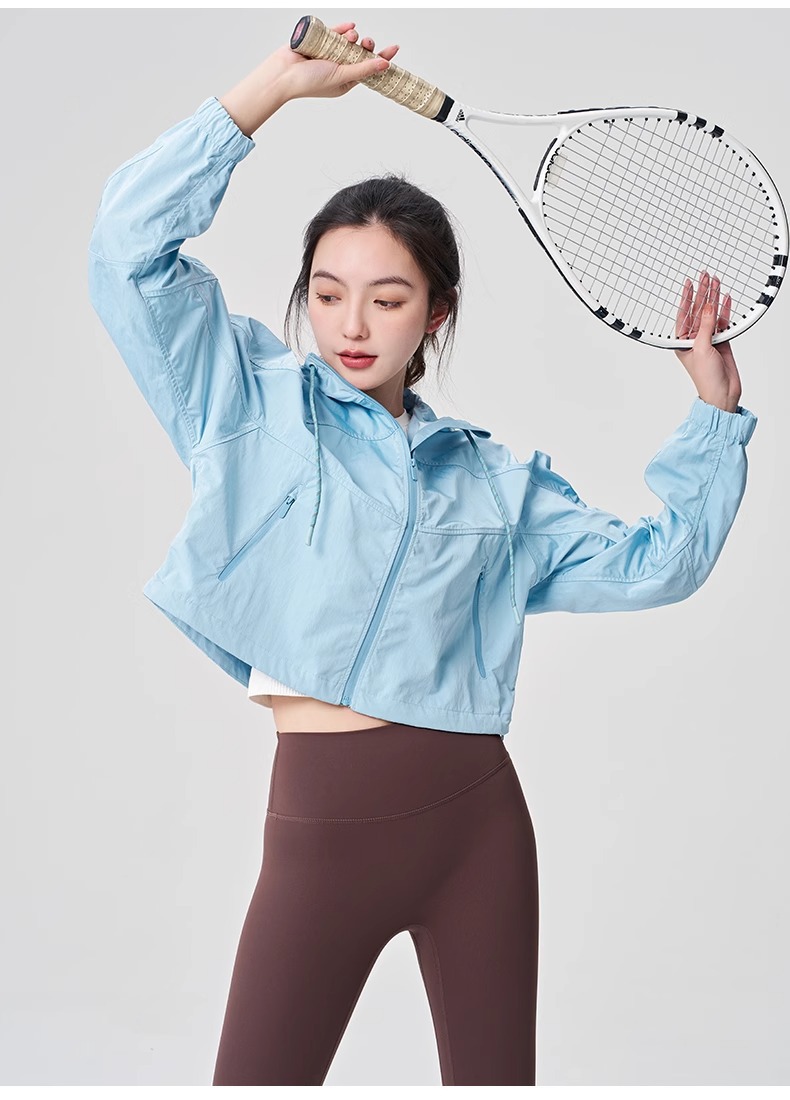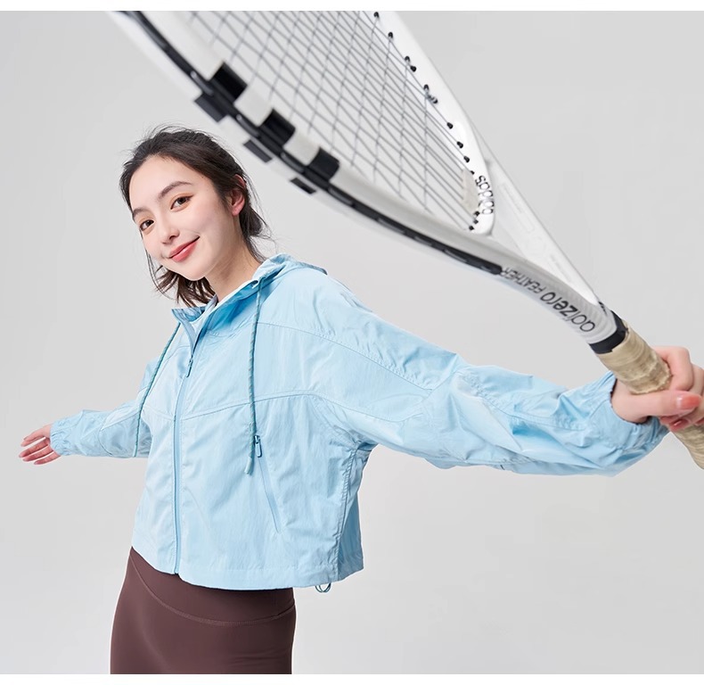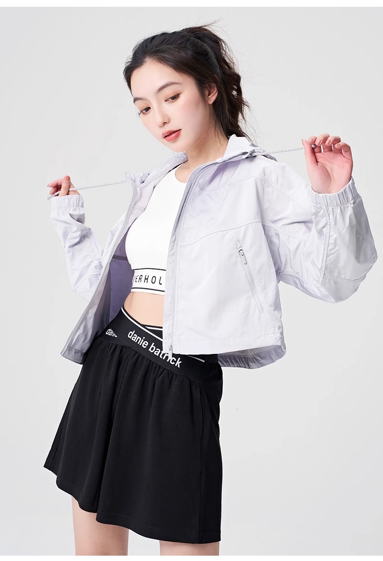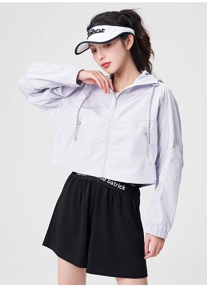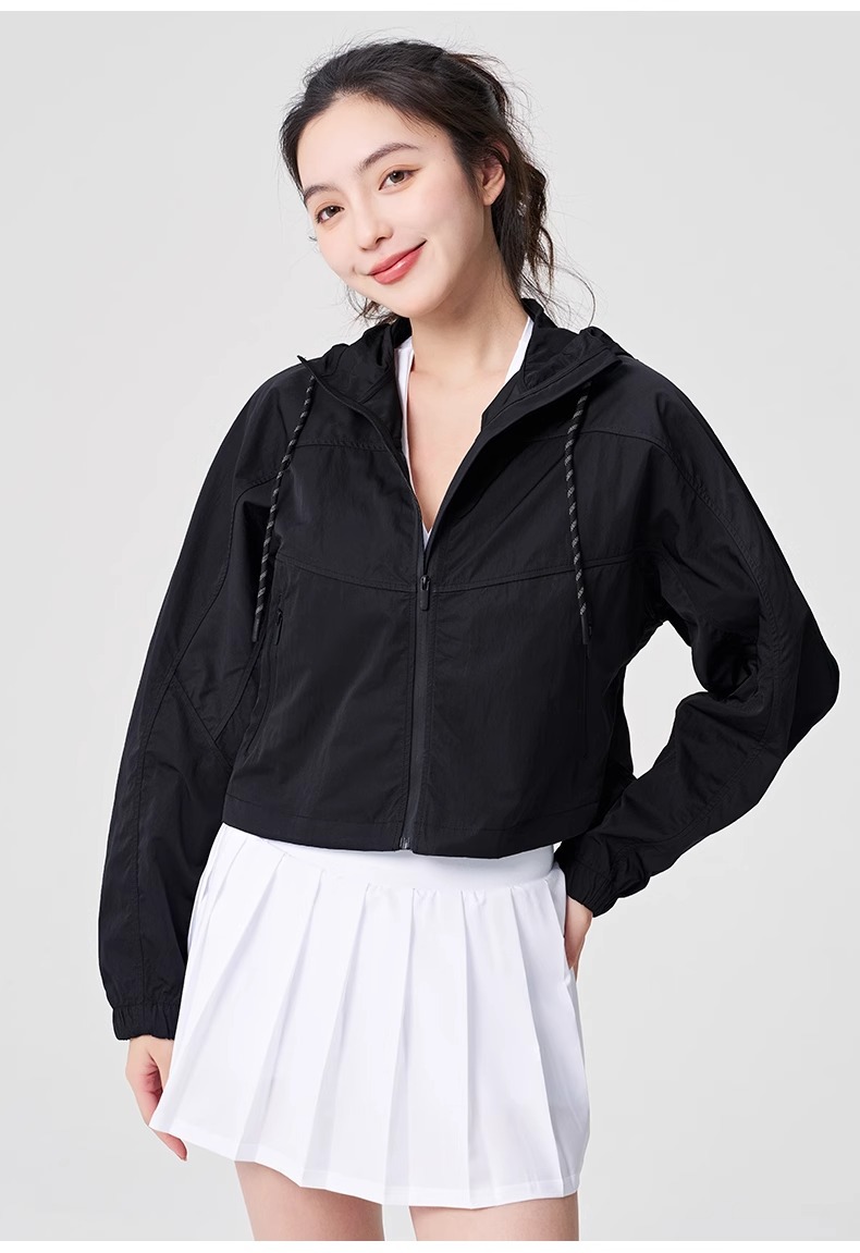 防晒服upf50+短款显瘦抽绳外套薄款防紫外线连帽秋外套女士夹克