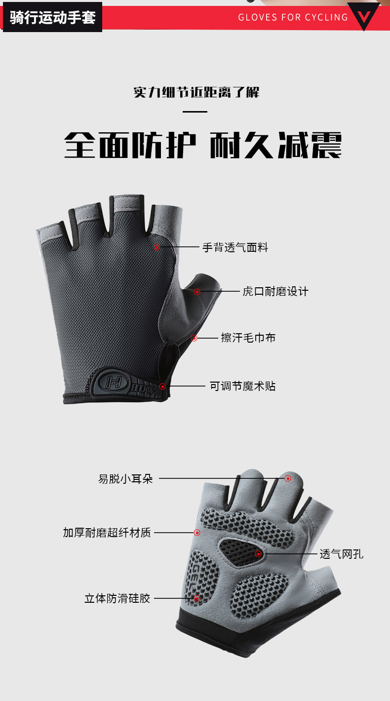 运动半指手套男女户外骑行健身透气减震防滑户外露指登山半截手套