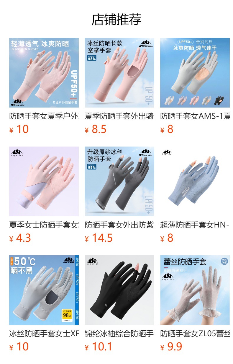 防晒手套男女夏季防紫外线冰丝触屏防滑户外骑行冰丝薄款手套批发