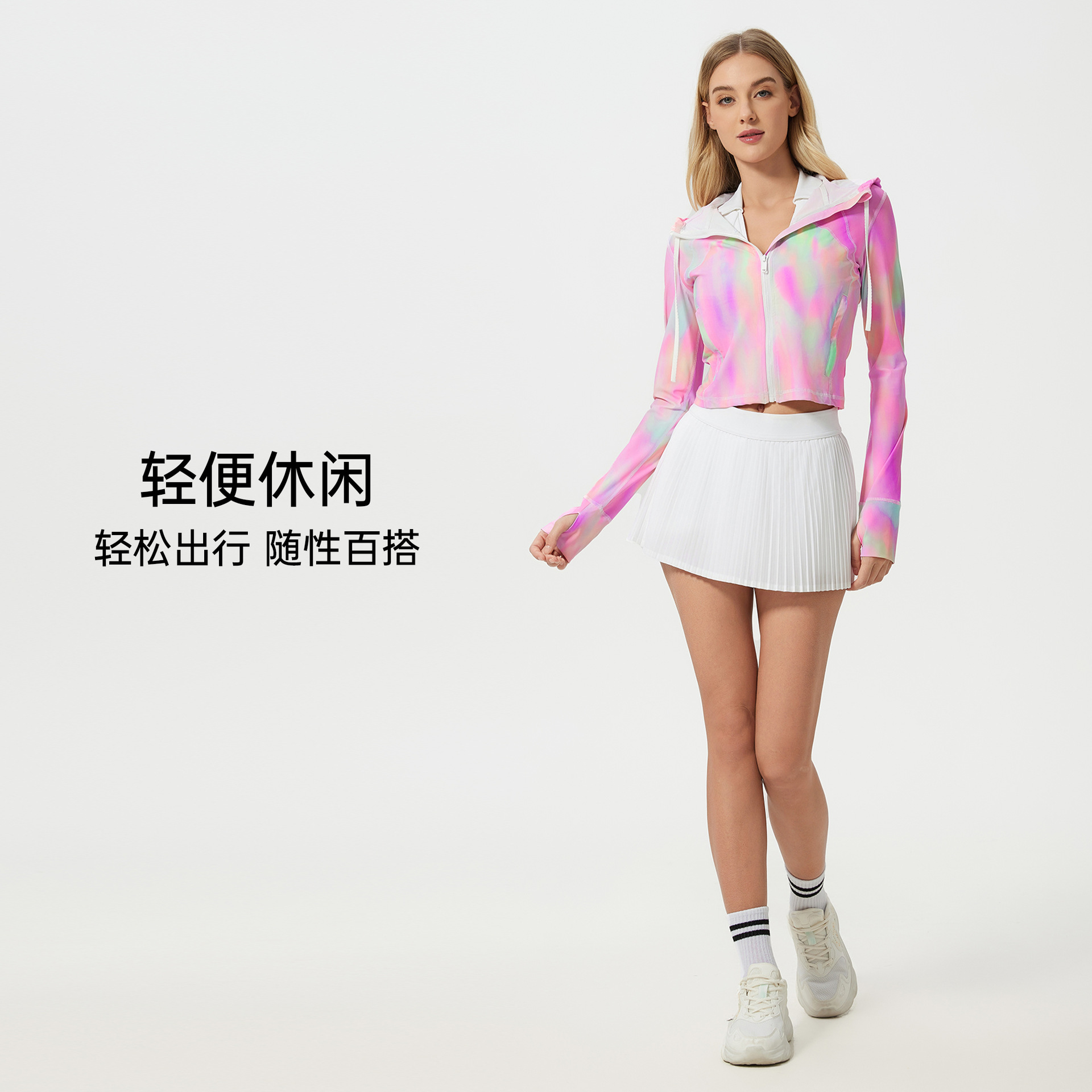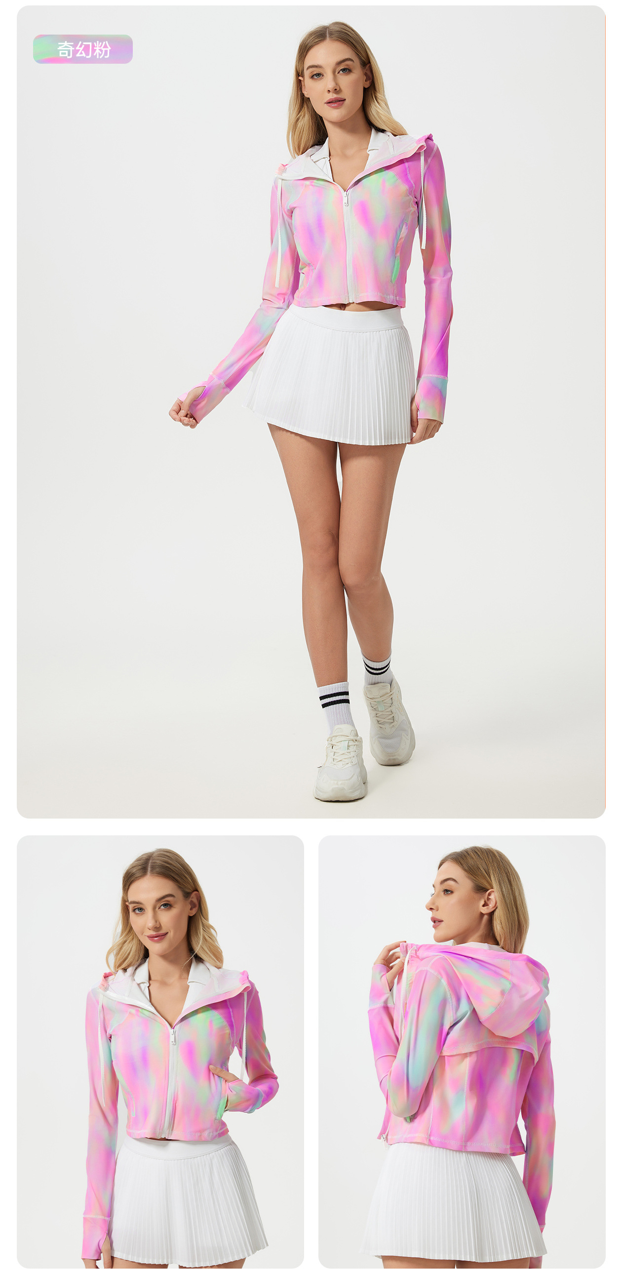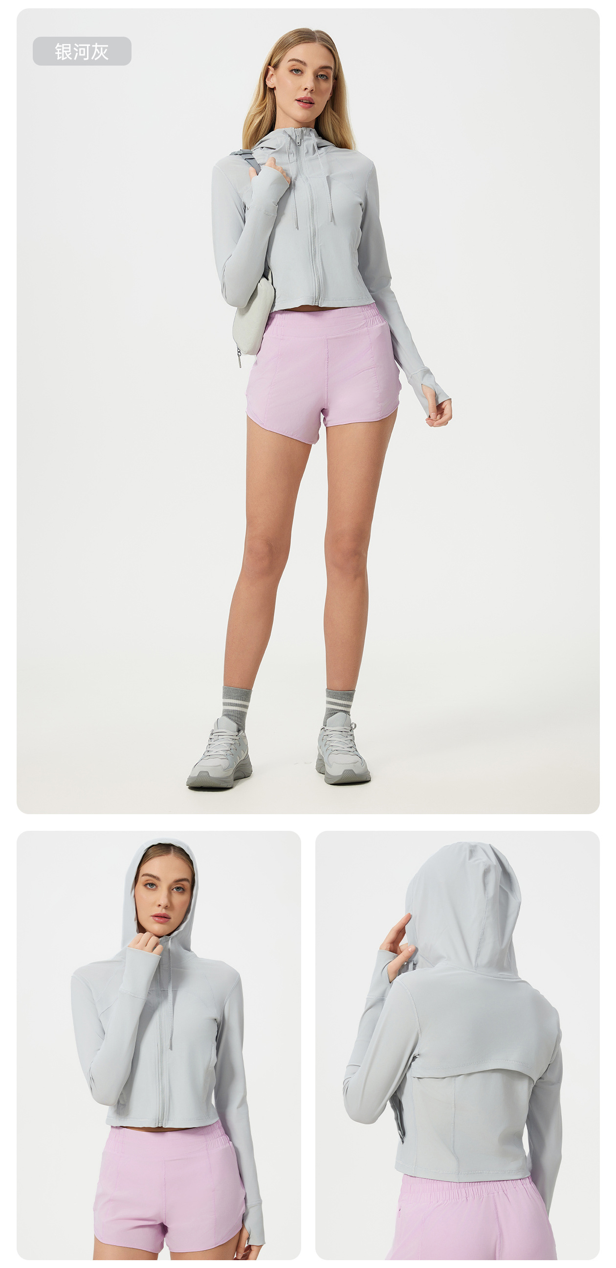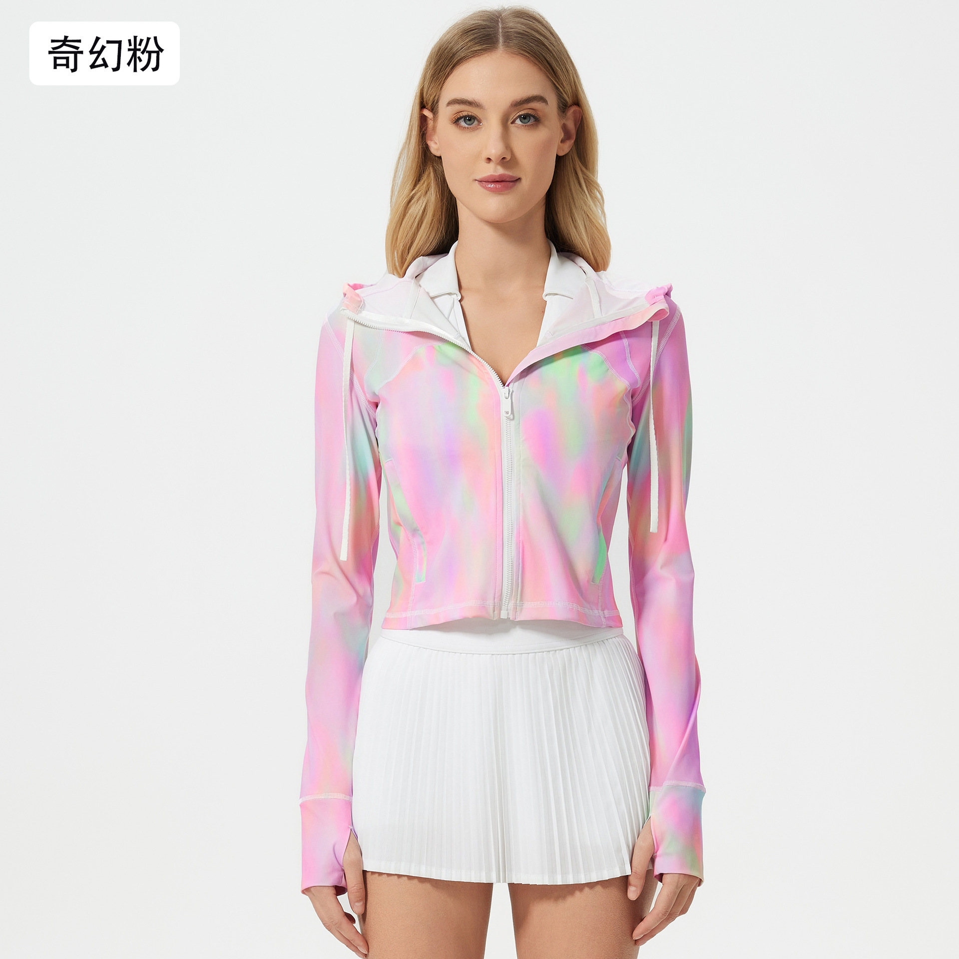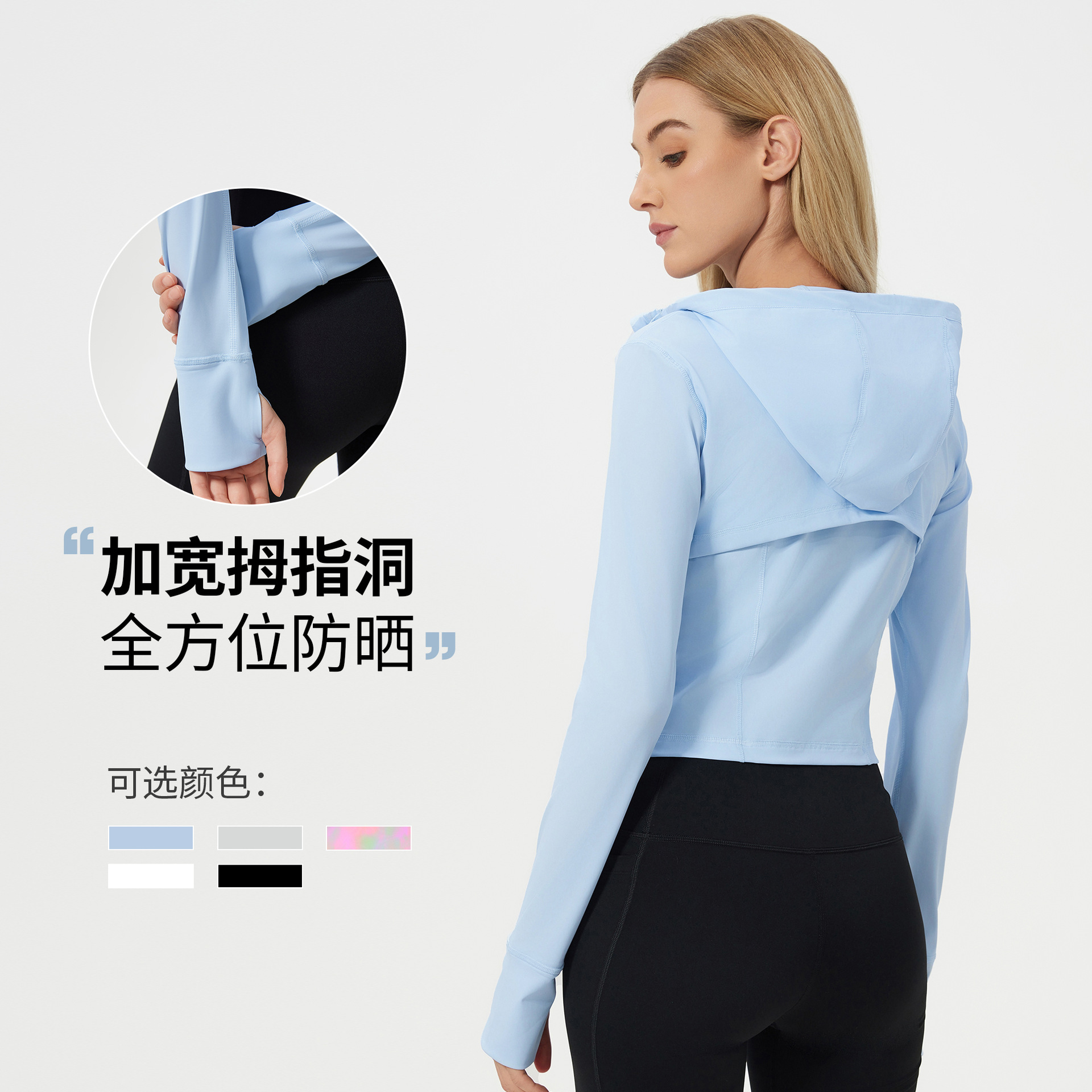 轻薄连帽户外高倍防晒皮肤衣短款速干透气防紫外线防晒衣女D25018