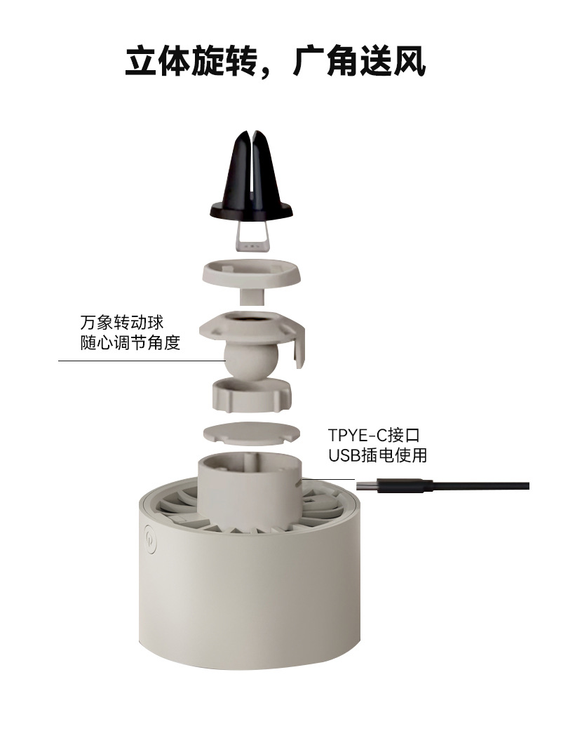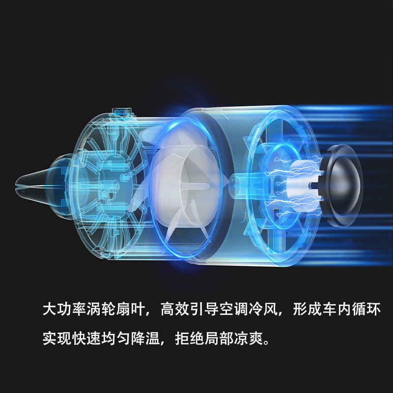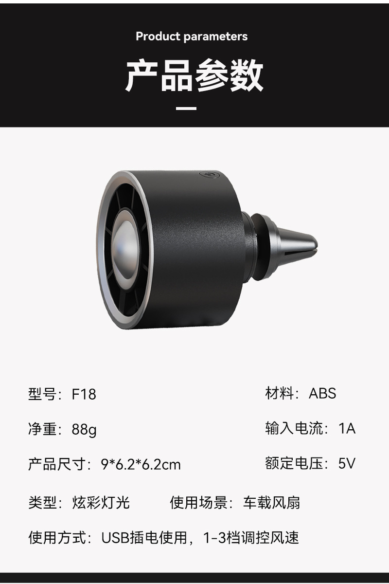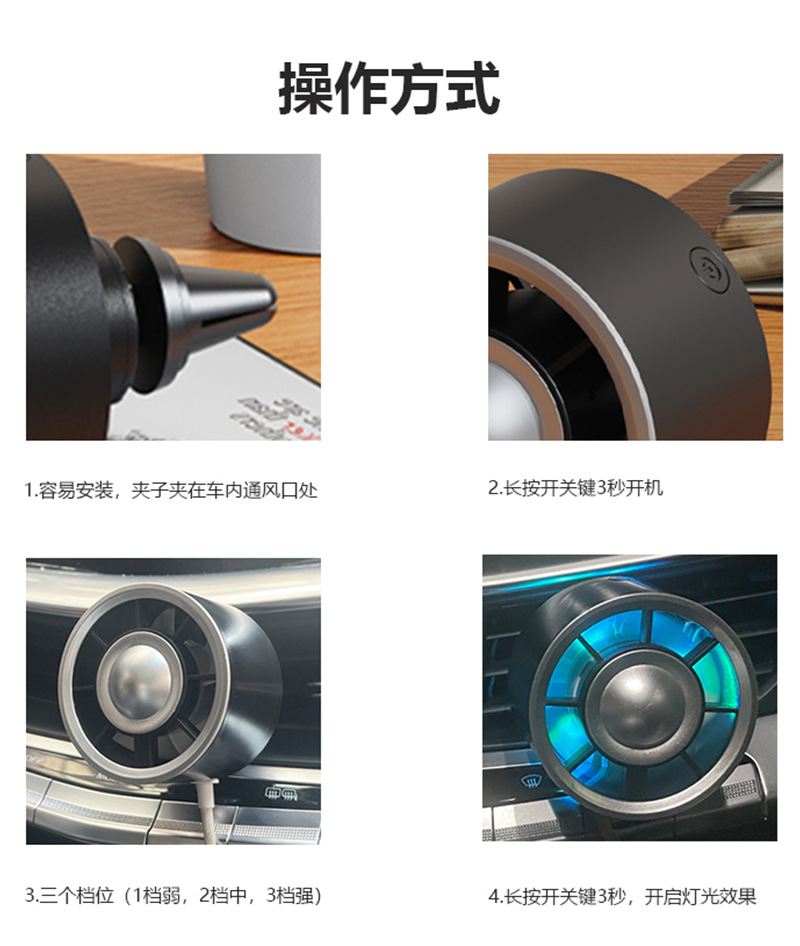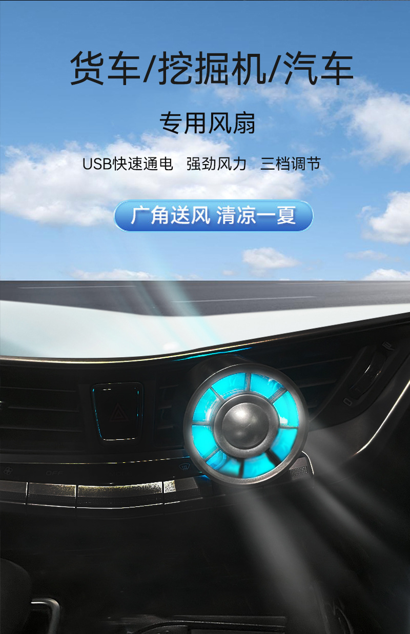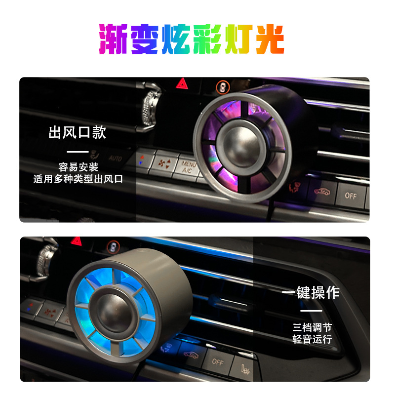 新款车载风扇车用香薰迷你出风口散热风扇USB炫彩氛围灯货车风扇