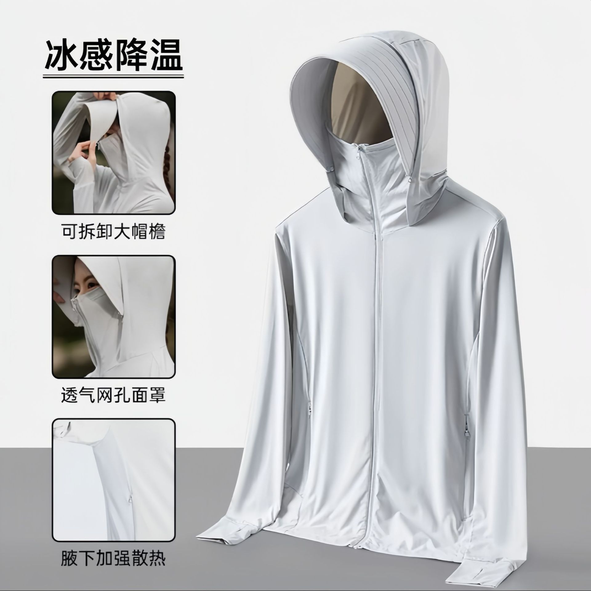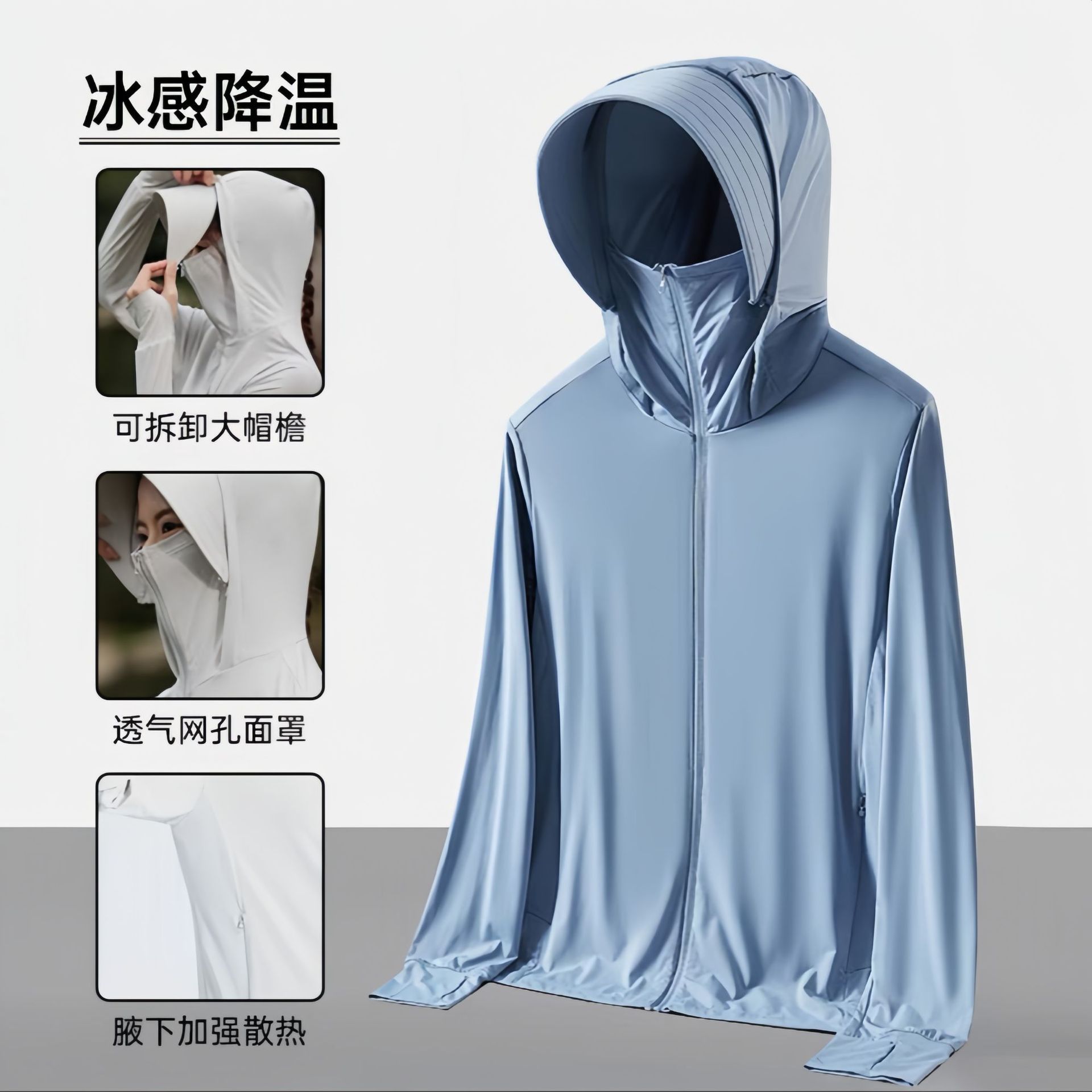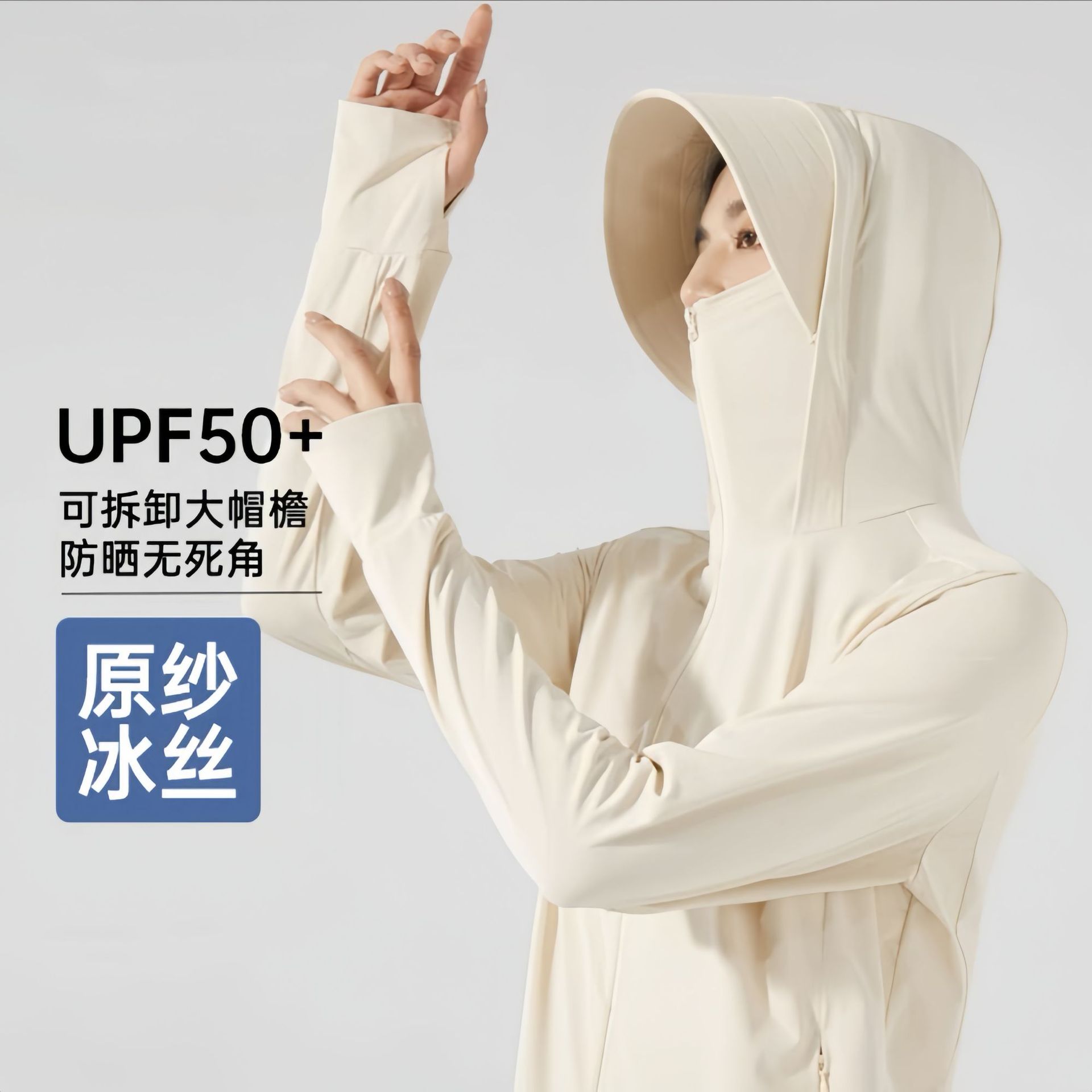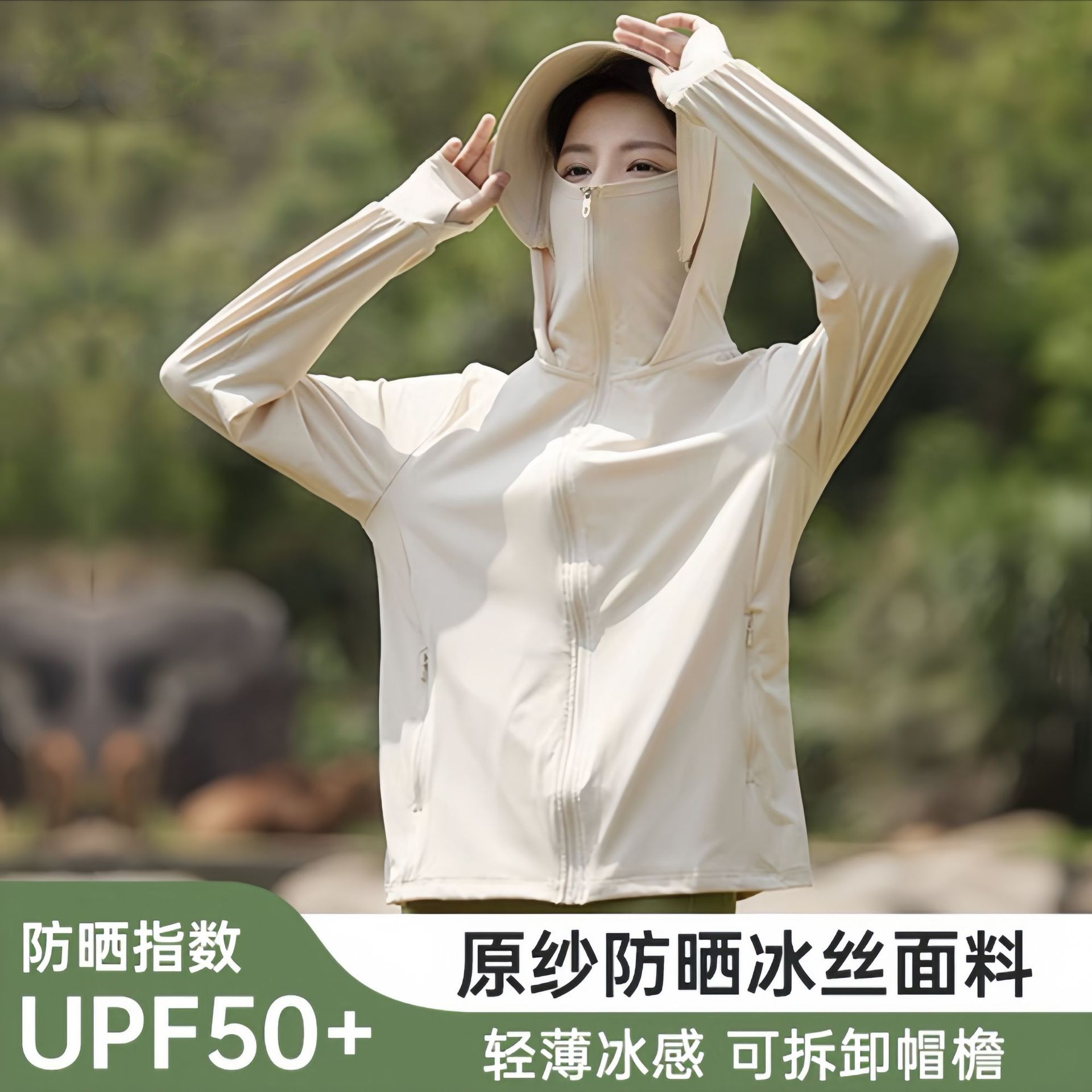 原纱冰丝防晒衣女upf50+可拆卸帽檐防紫外线骑行防晒服男透气轻薄