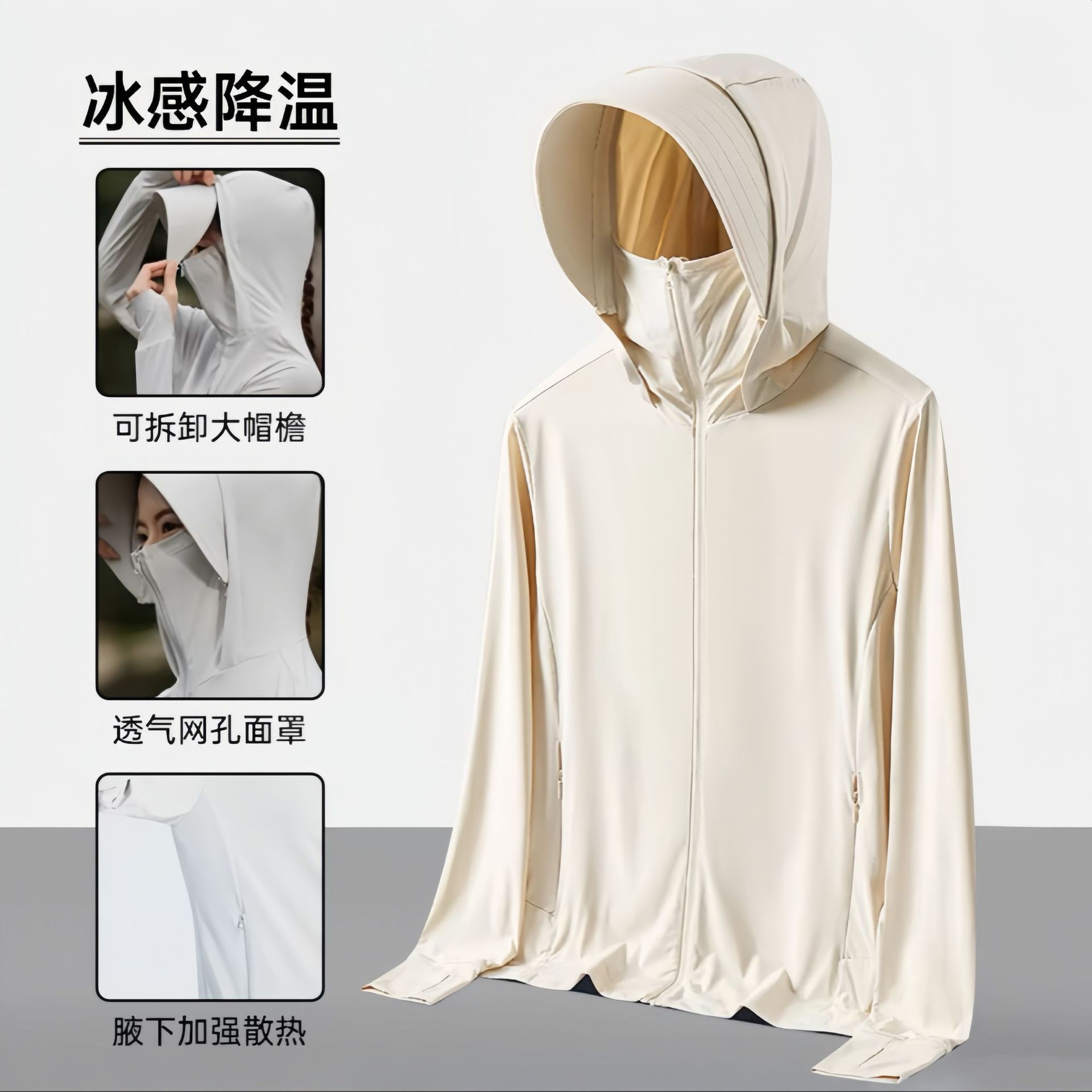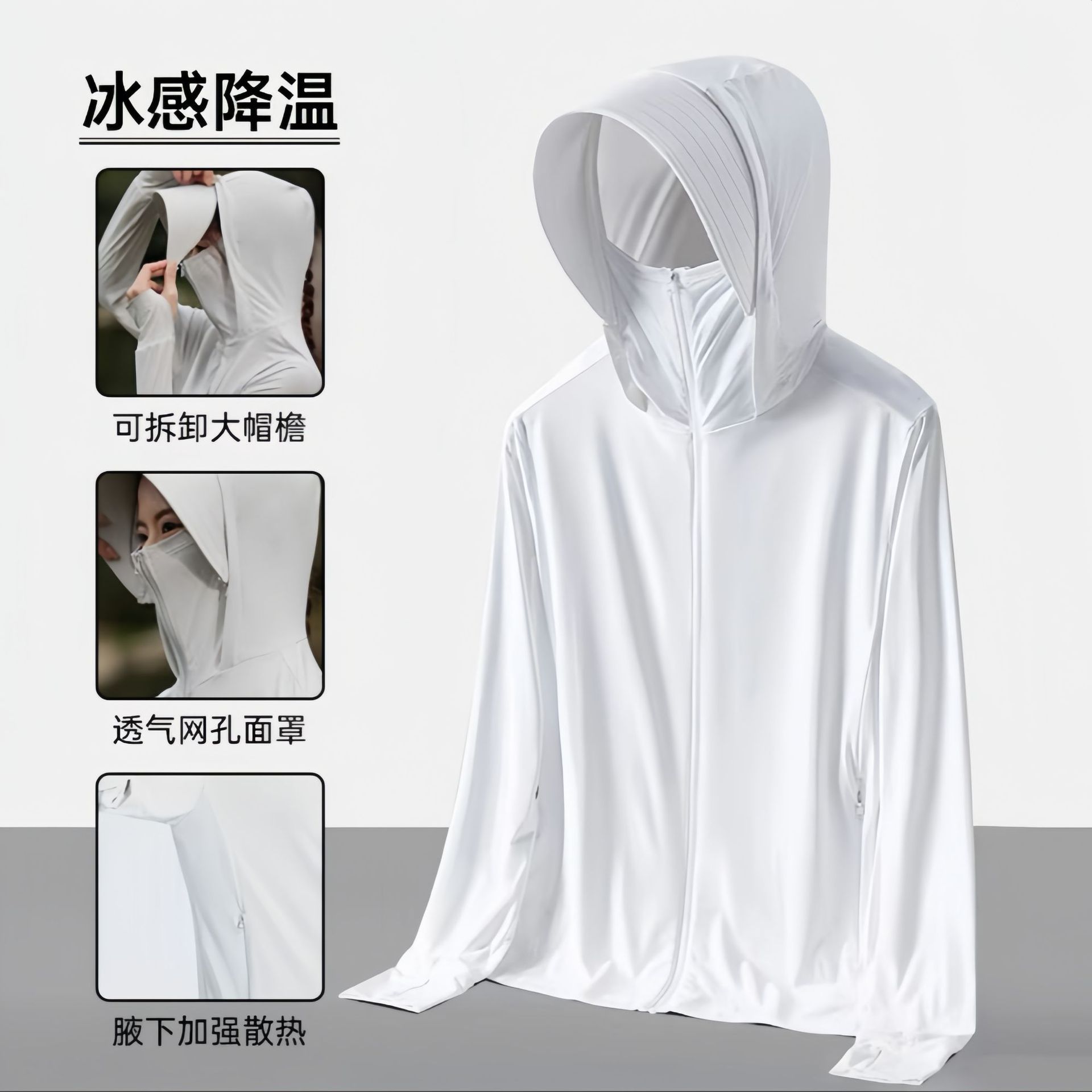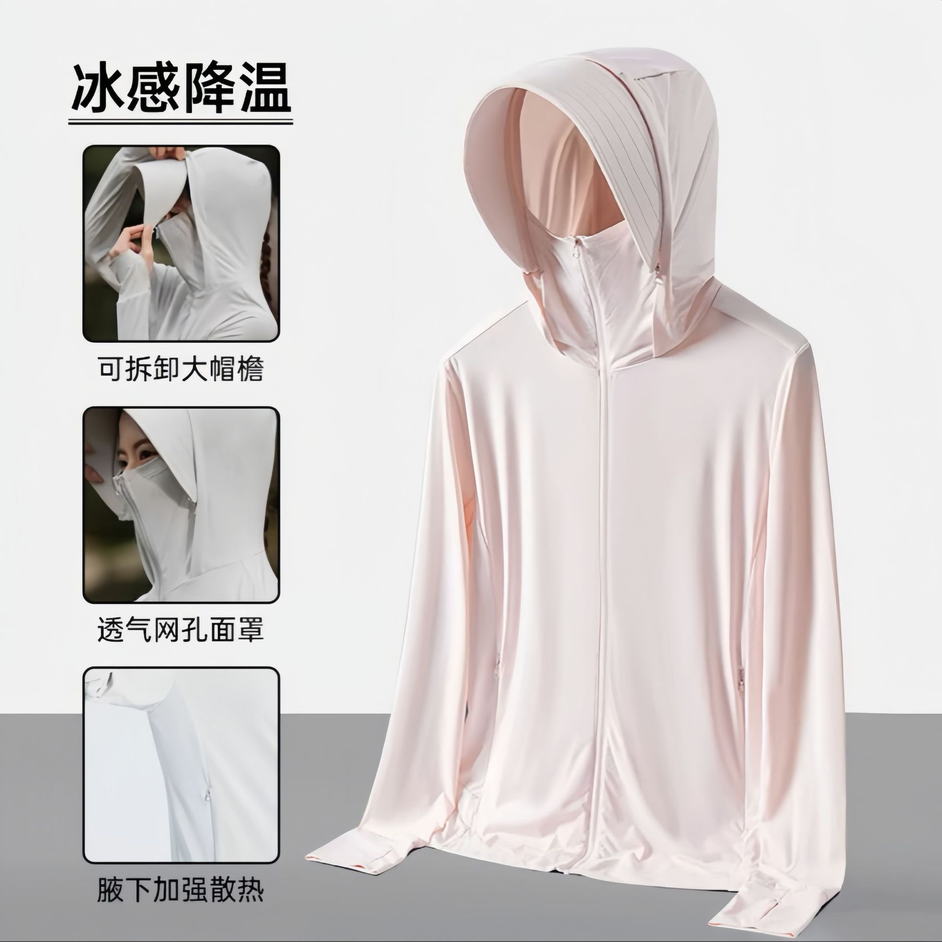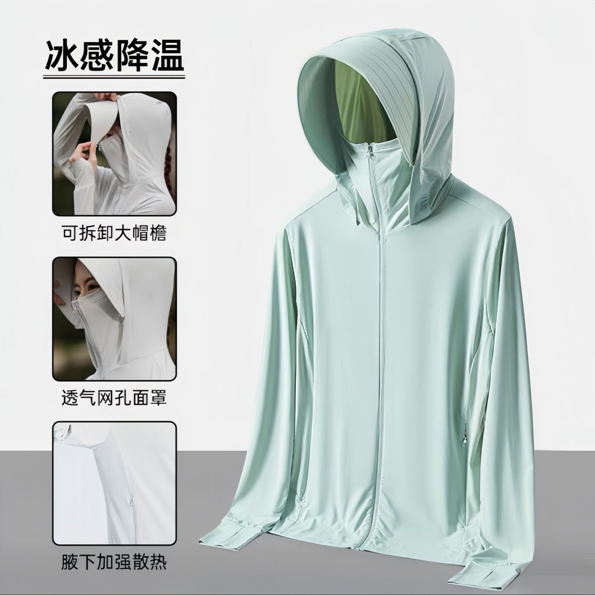 原纱冰丝防晒衣女upf50+可拆卸帽檐防紫外线骑行防晒服男透气轻薄