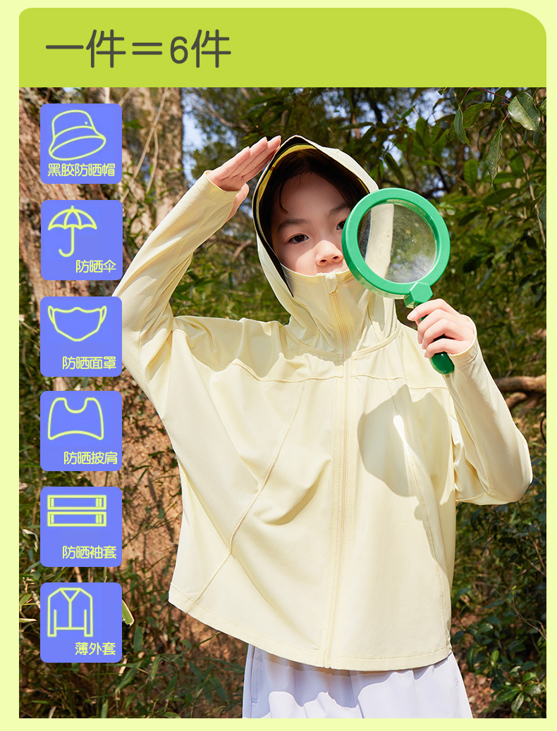 天猫同款儿童冰凉透气防晒服夏季防紫外线斗篷防晒衣外套皮肤衣