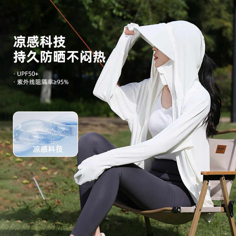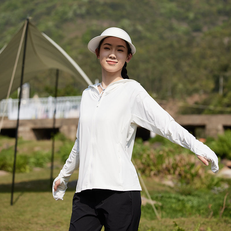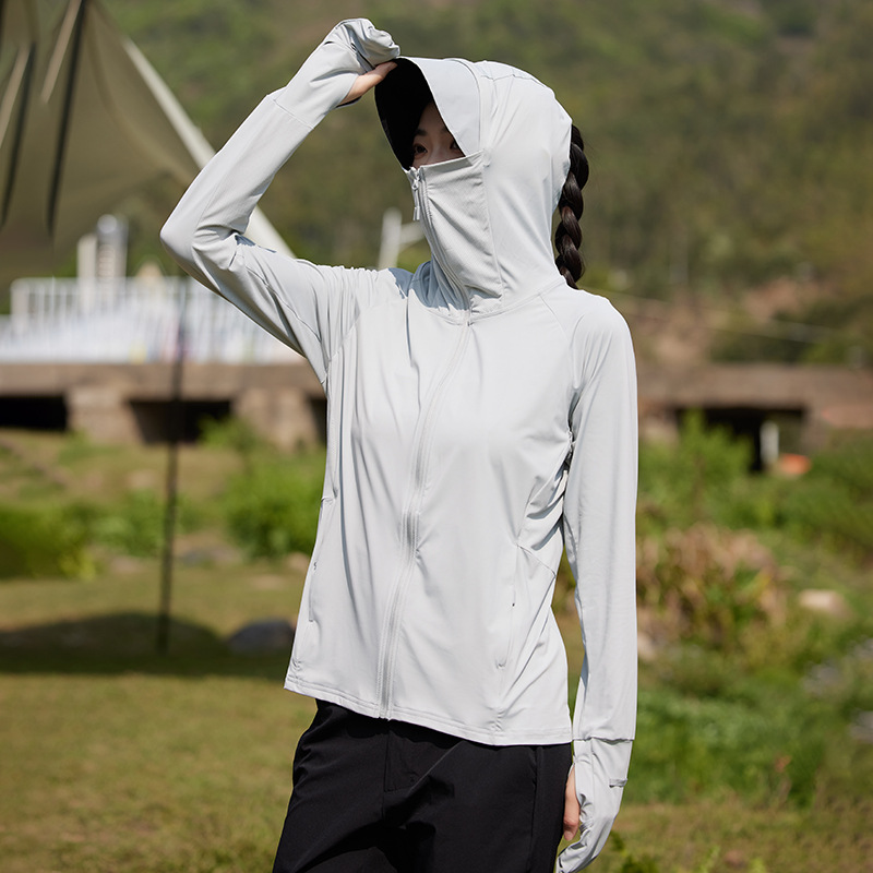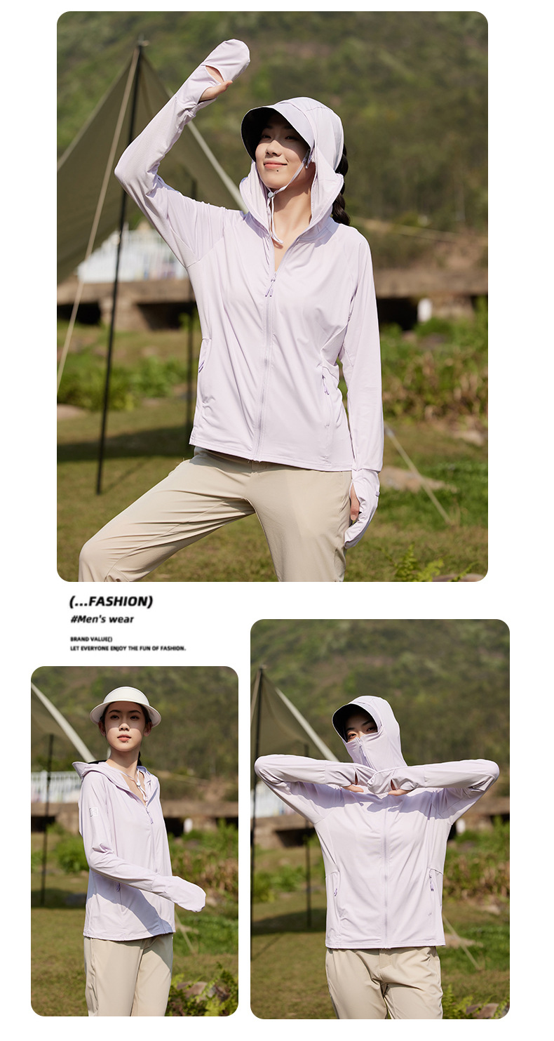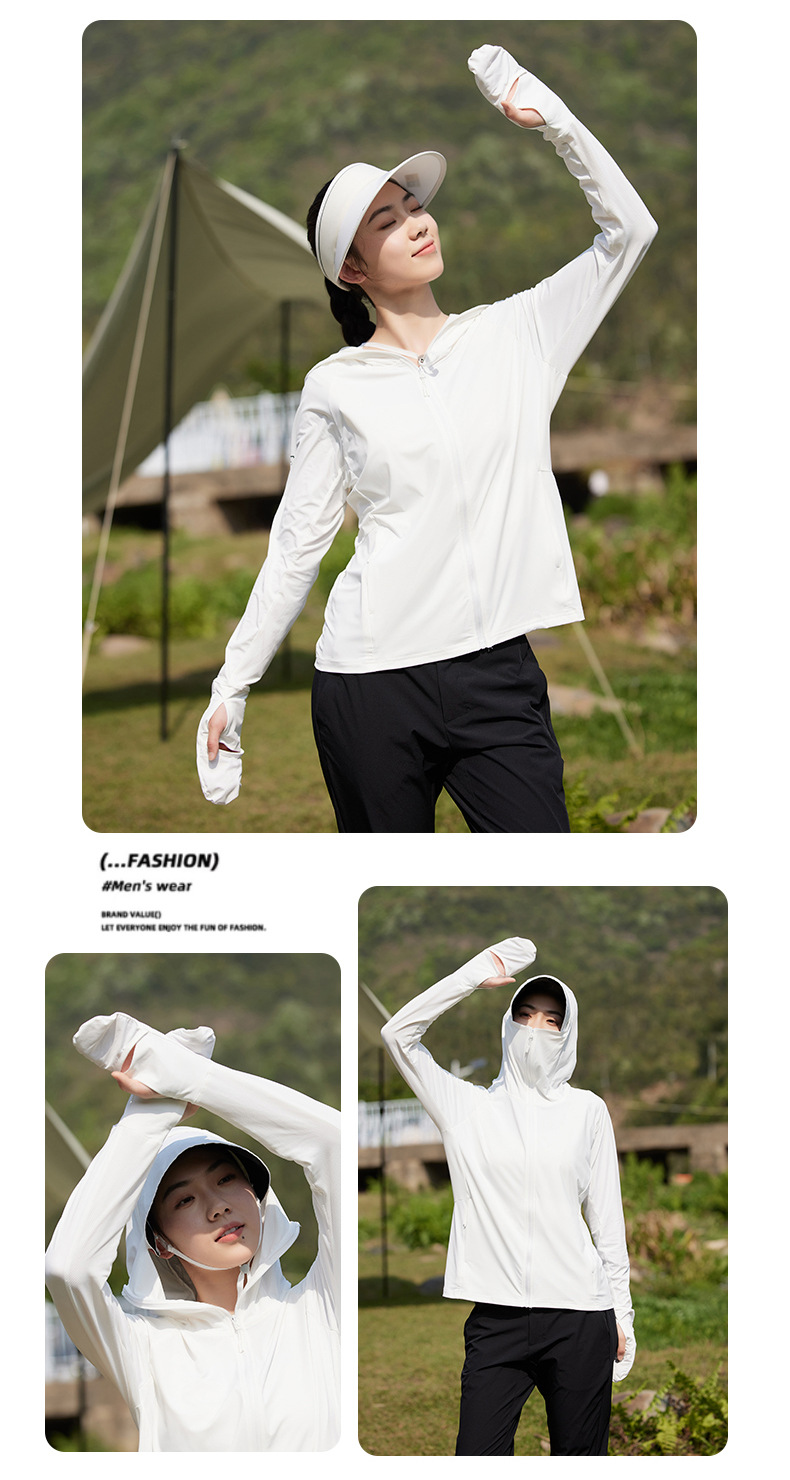 指尖防晒衣女夏防紫外线户外凉感轻薄透气遮阳中长款手套款防晒服