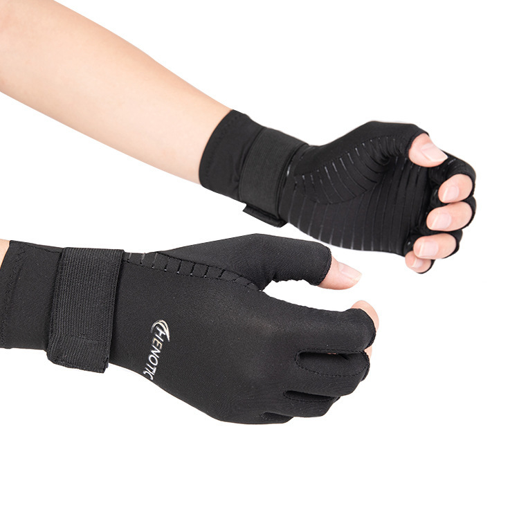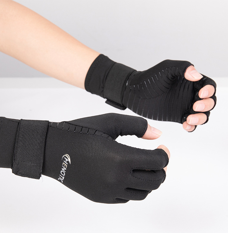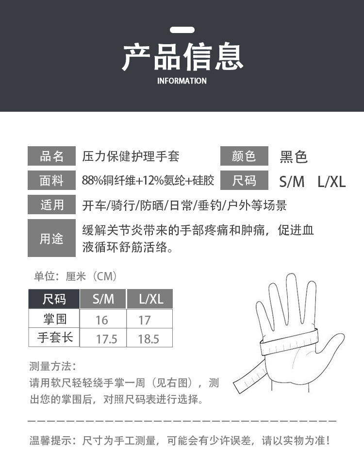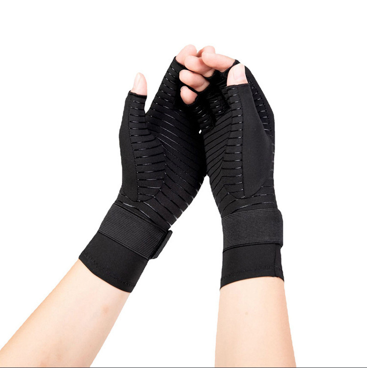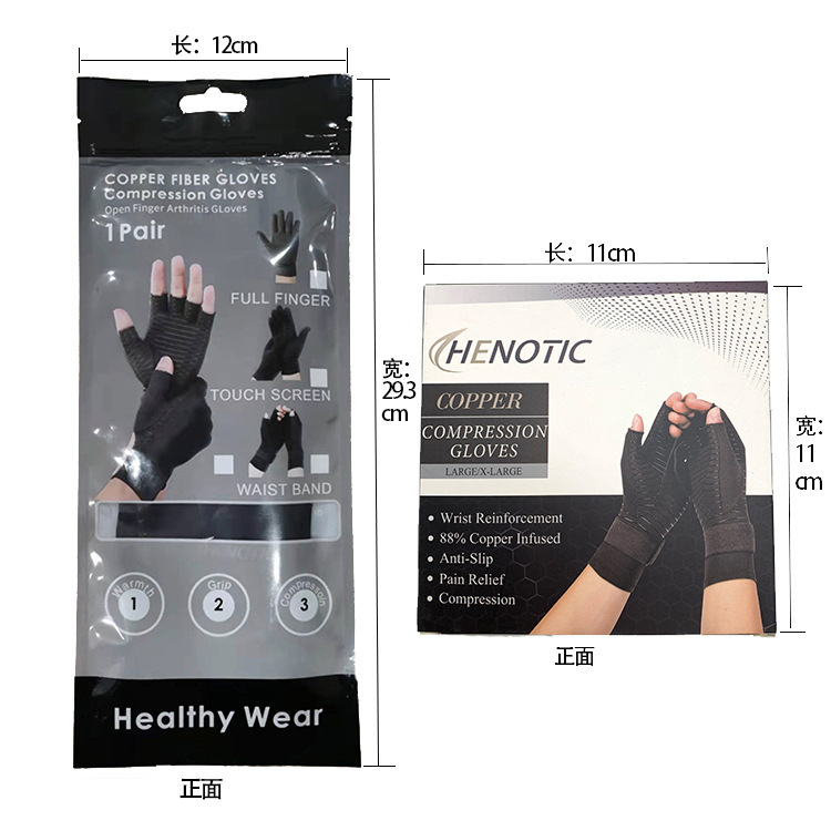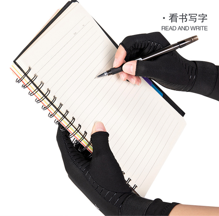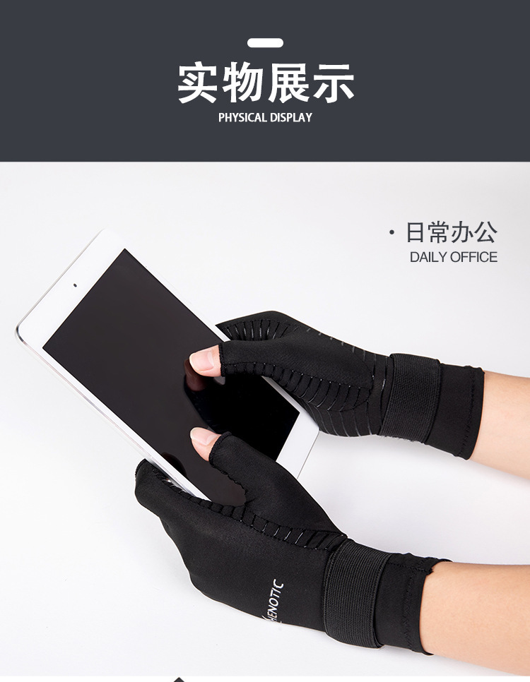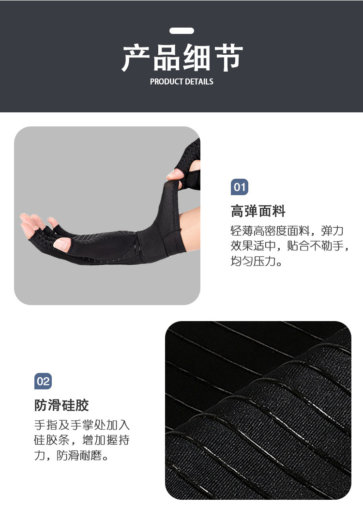 铜纤维关节压力半指手套运动健身绑带硅胶防滑骑行钓鱼防晒手套炎