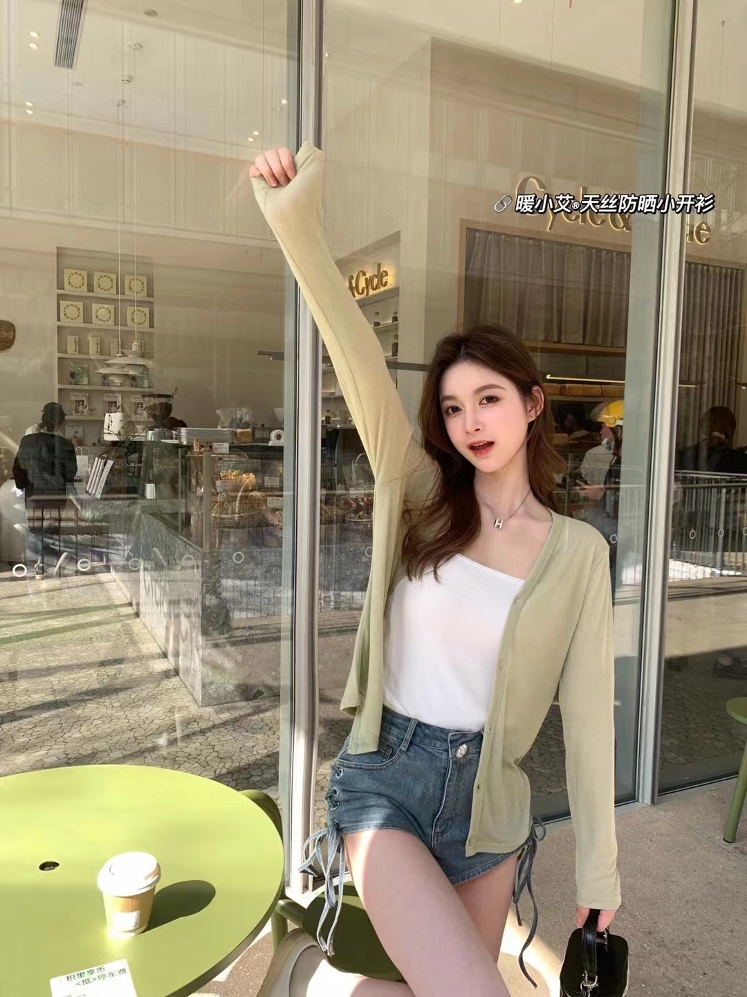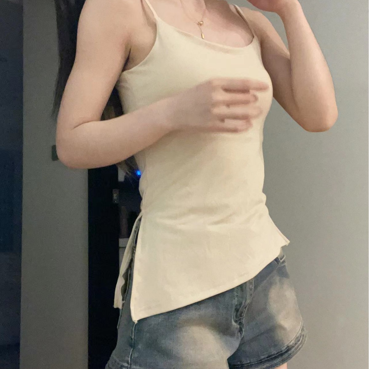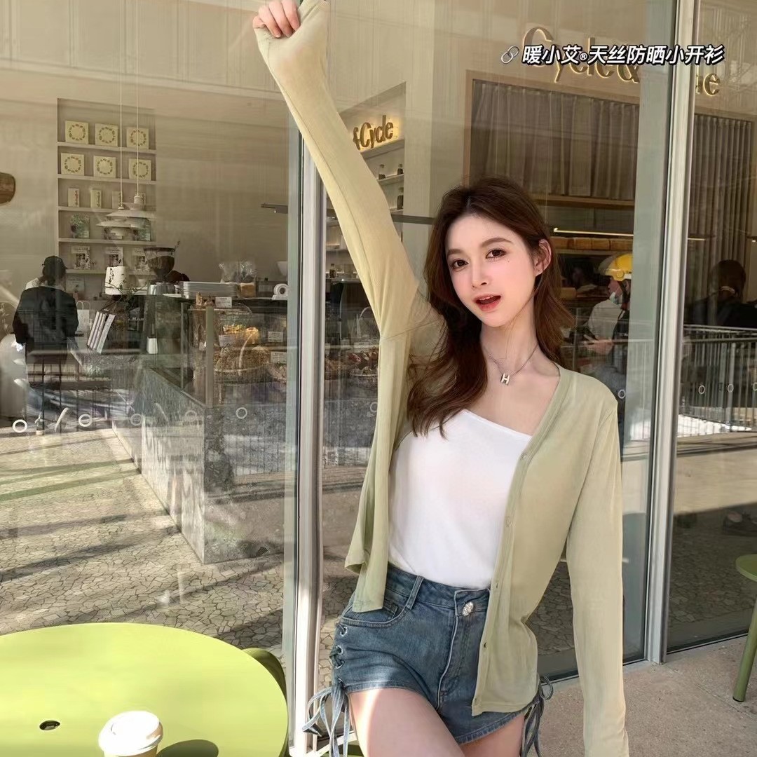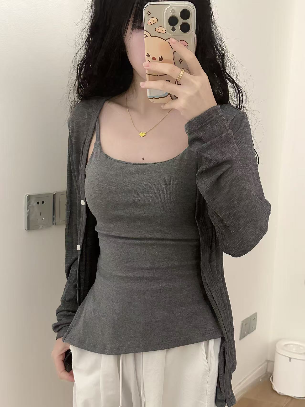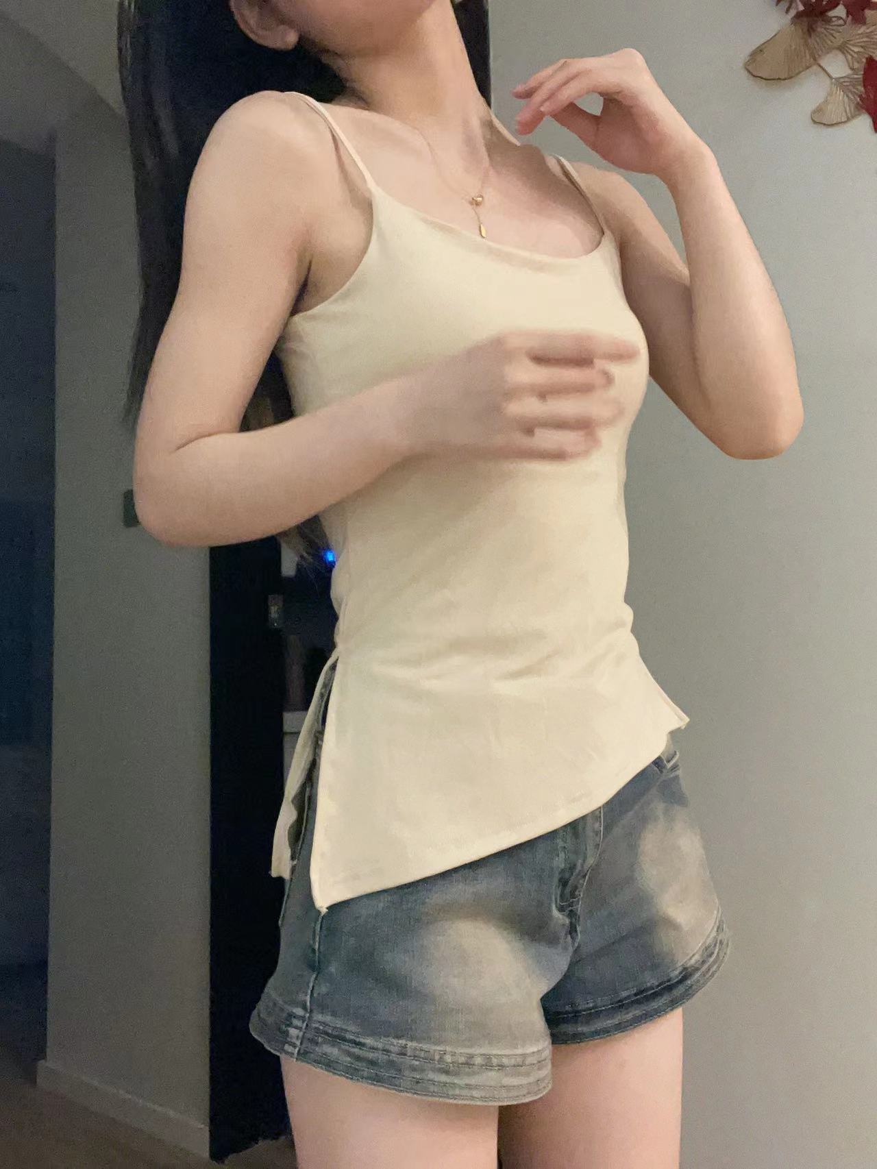 港风日系复古防晒开衫不规则斜开叉吊带背心舒适纯色内搭上衣女