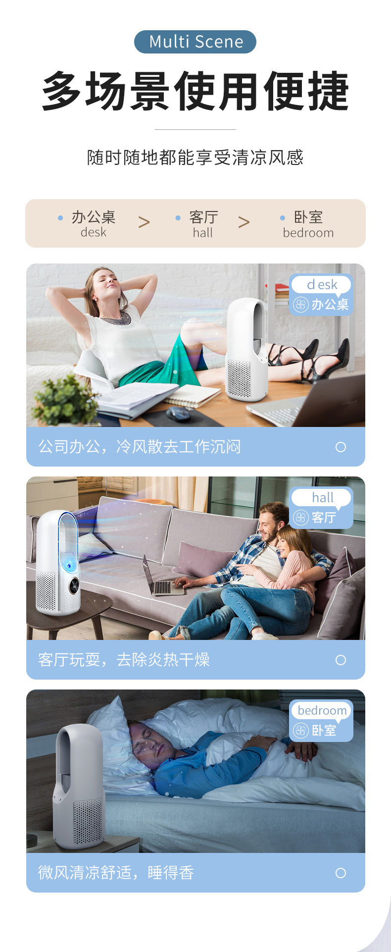 办公室新款无叶桌面风扇智能雾化便携式随身静音小风扇大风量批发