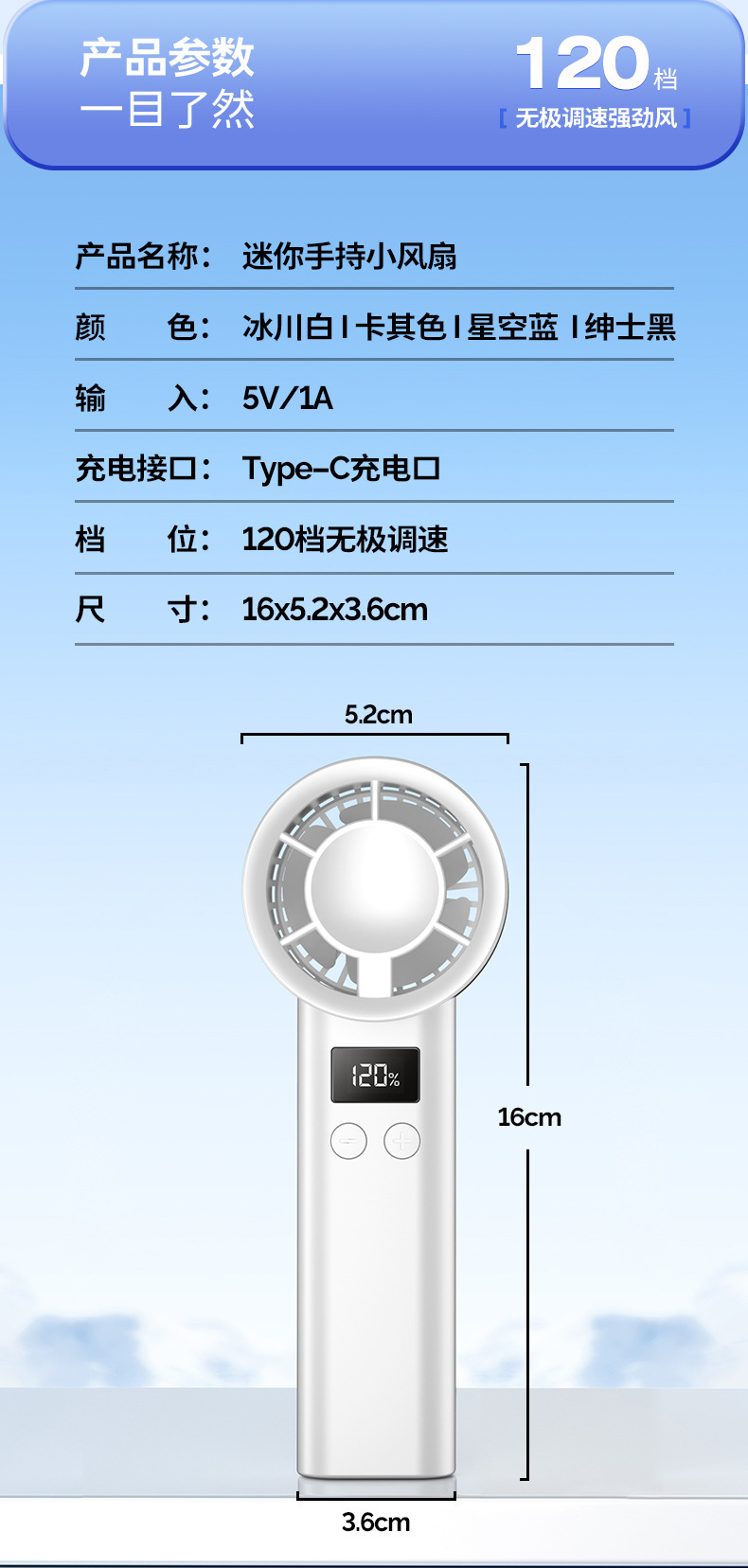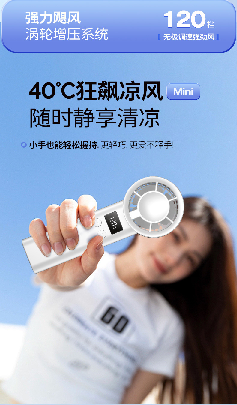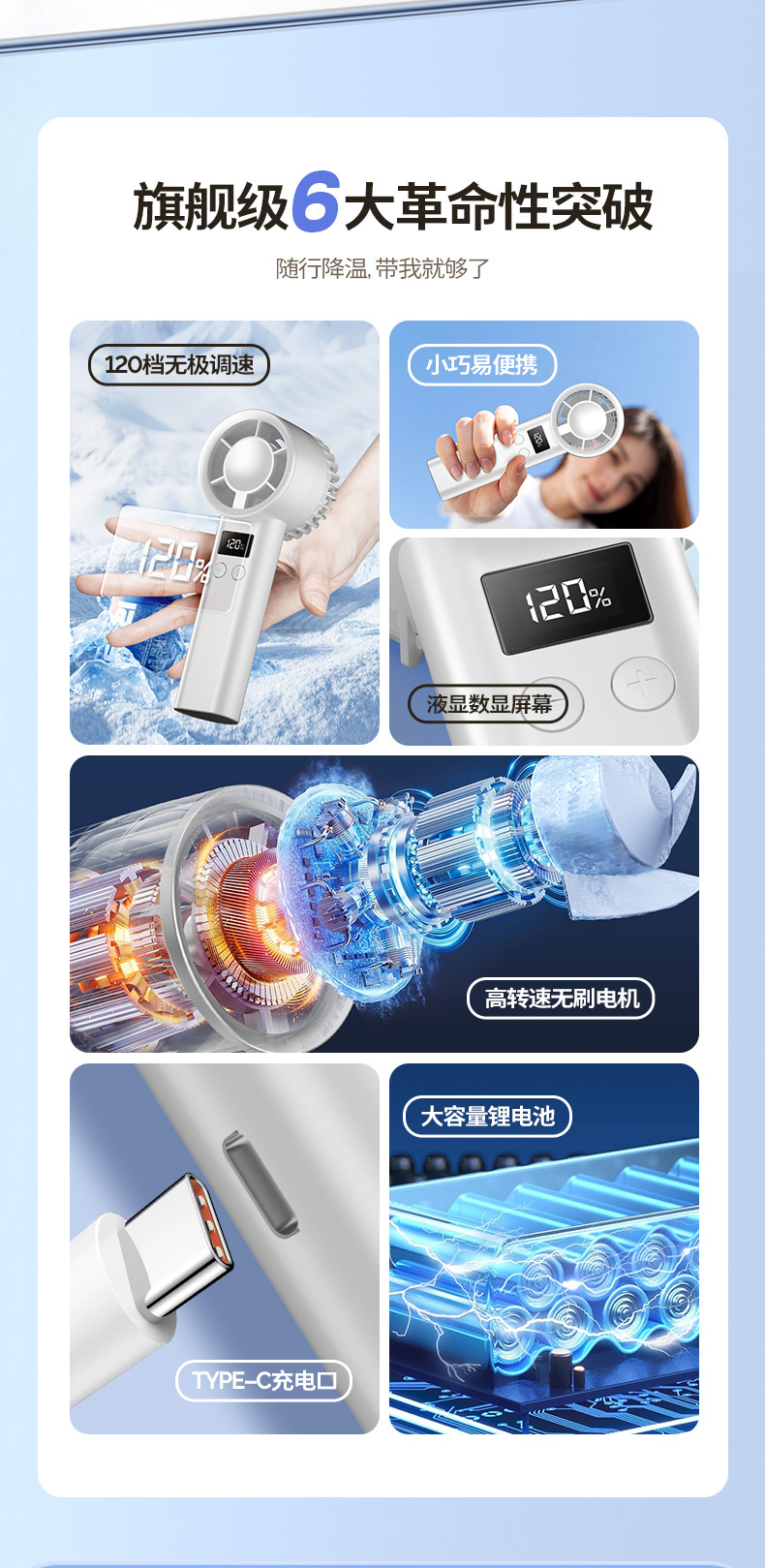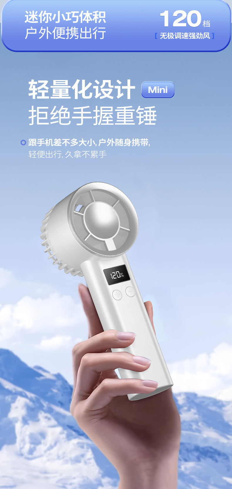跨境高速手持小风扇便携式随身小型迷你充电款120档小电扇usb电风