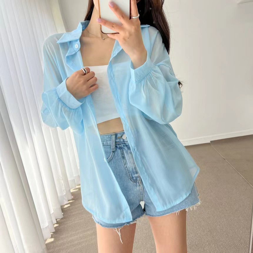 韩国气质长袖薄款防晒衫女2025夏季新款雪纺衬衫外套空调衫白上衣
