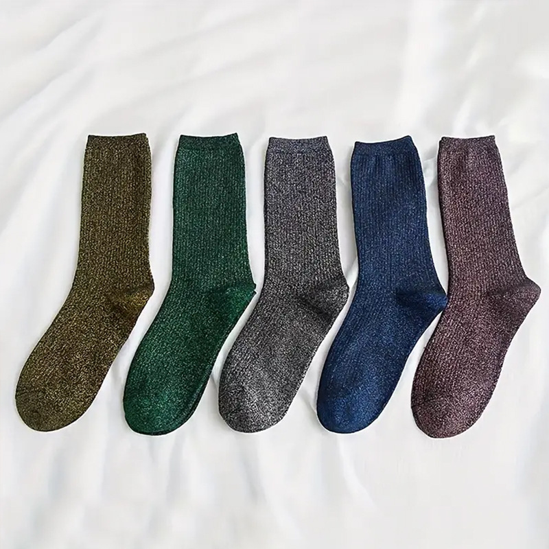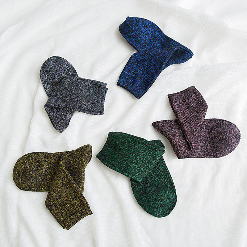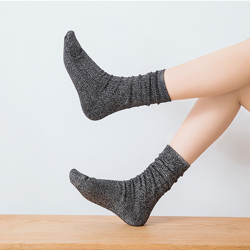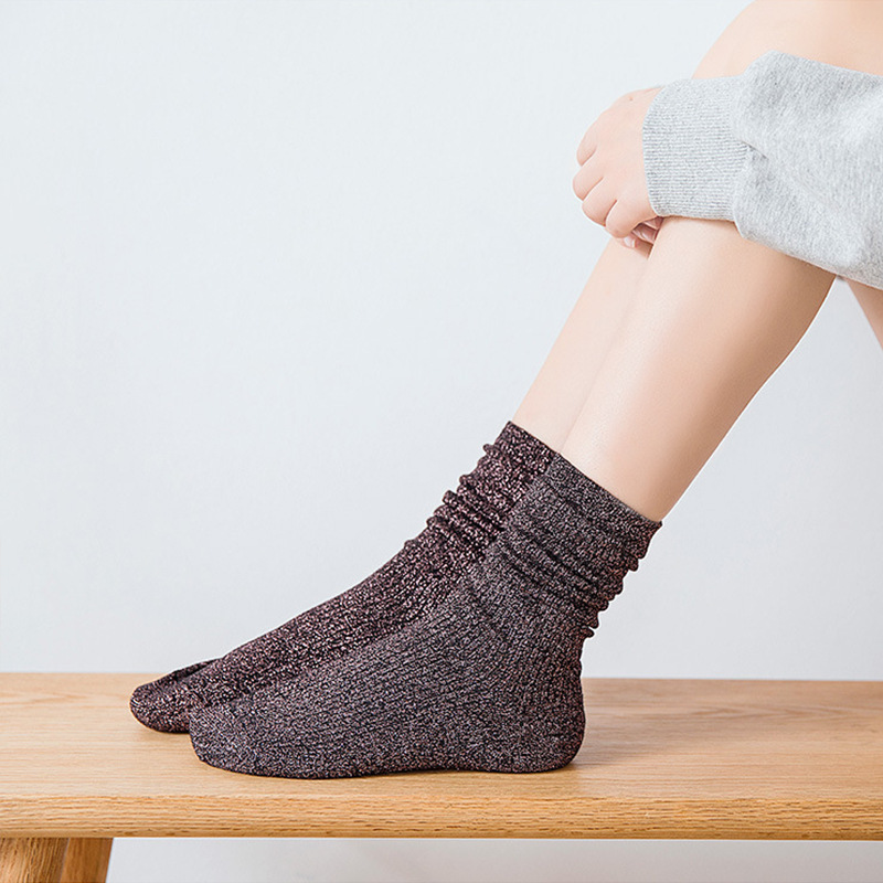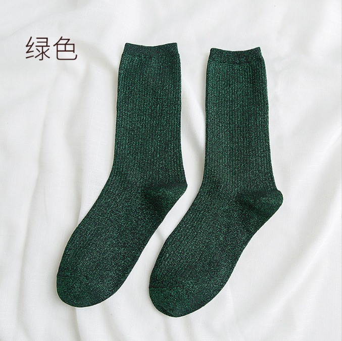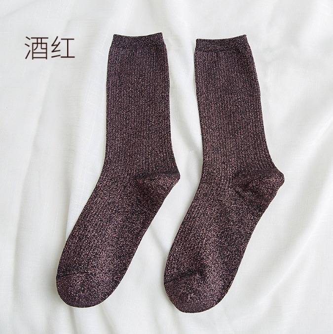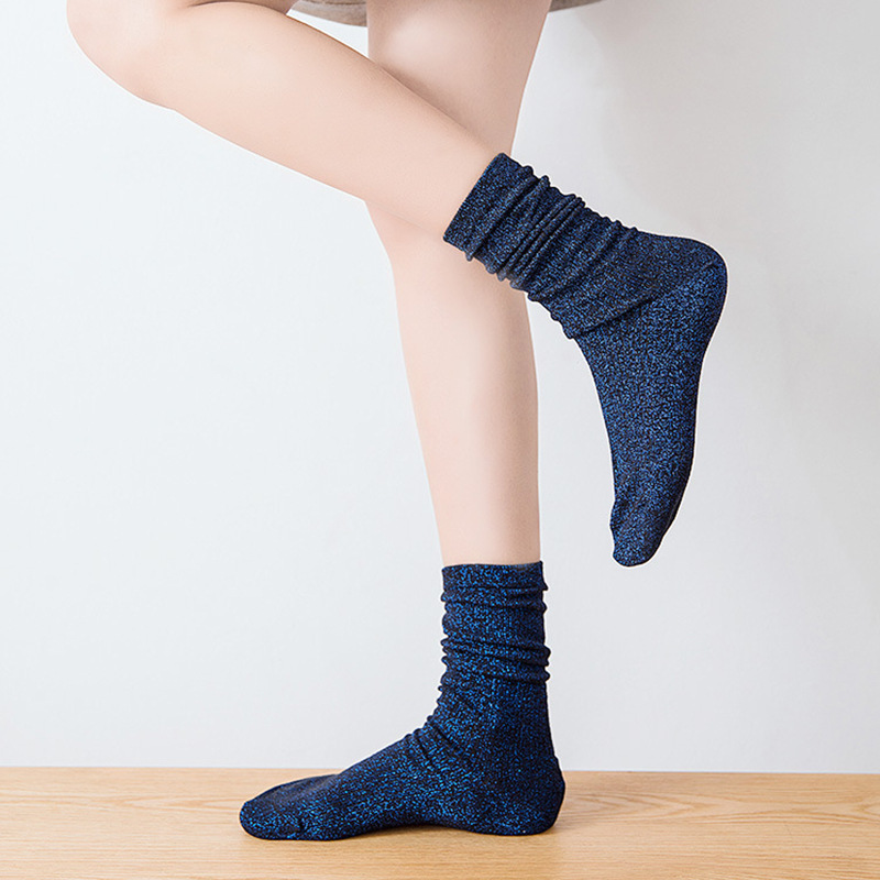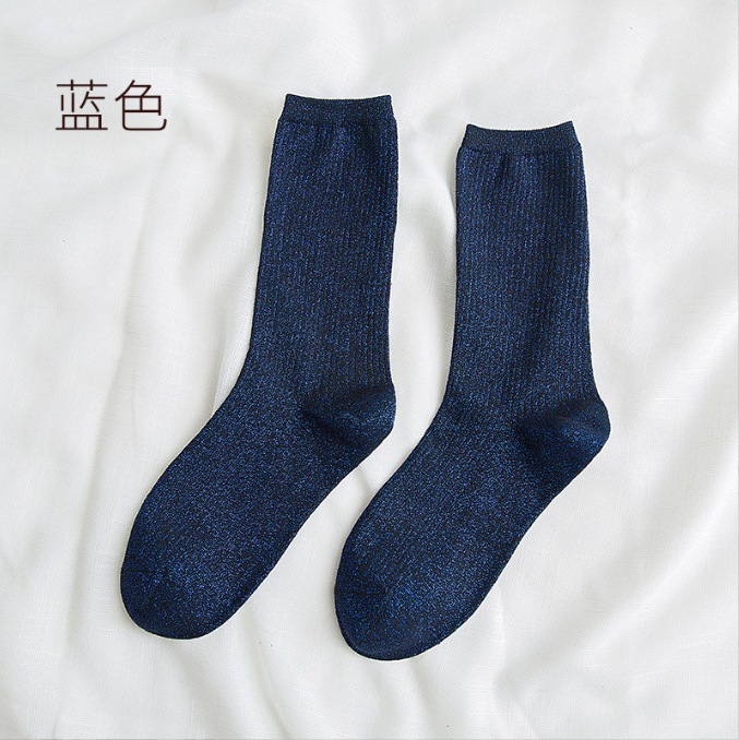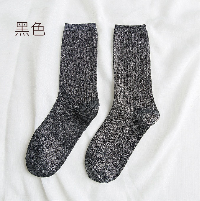 现货跨境批发春秋日系ins潮款金银丝女袜长筒堆堆袜