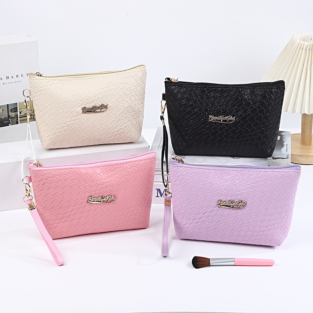 女士手拿包2026款小众格纹编织手拎包外贸零钱包跨境手提化妆包