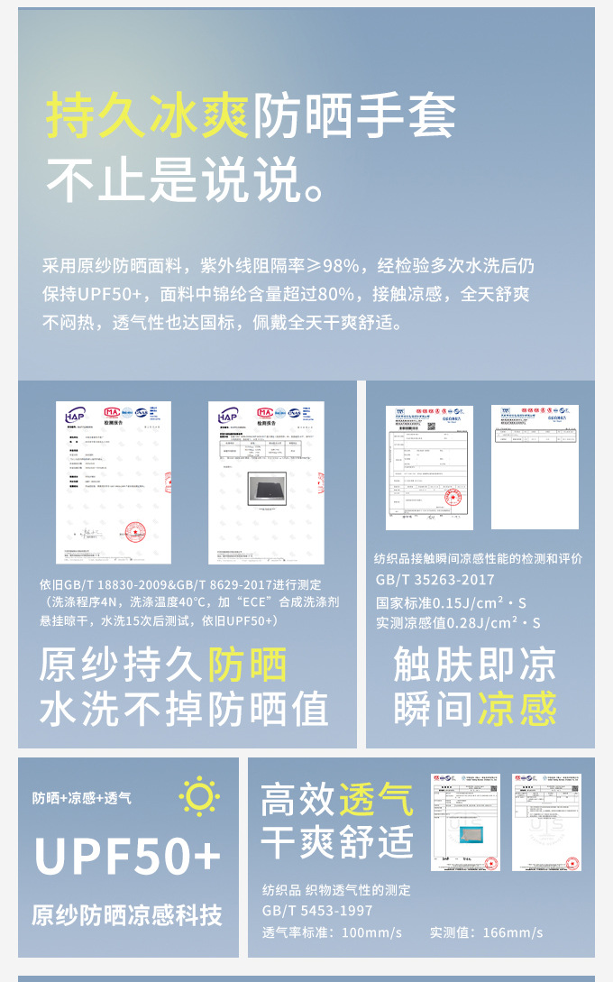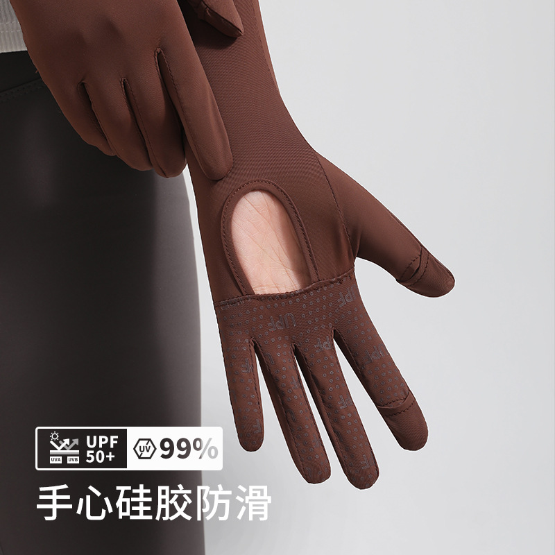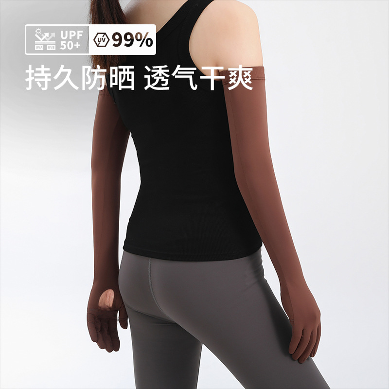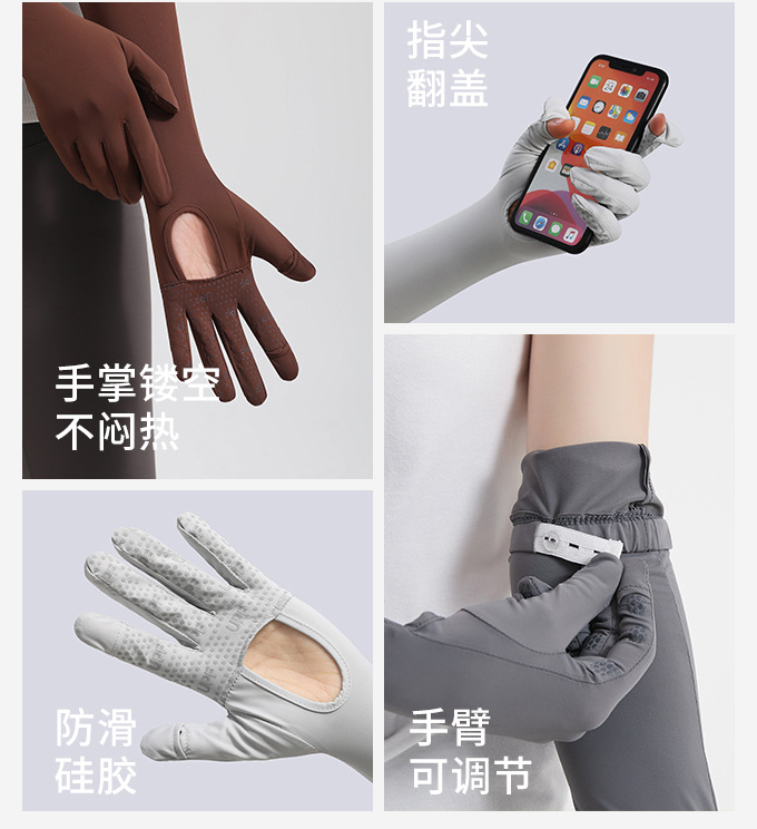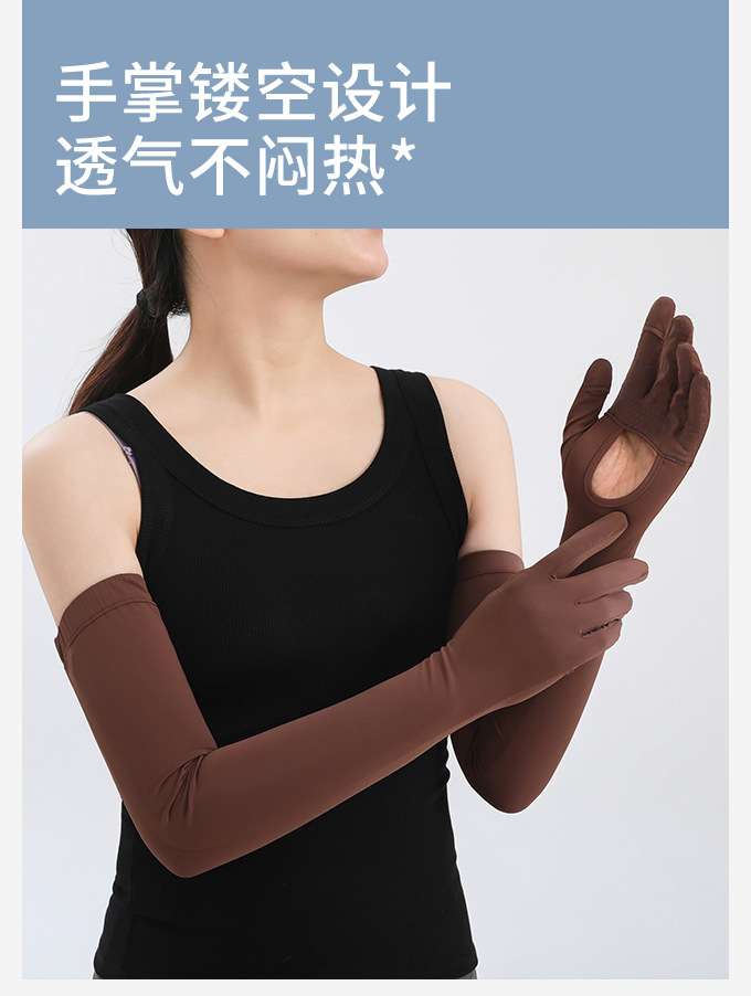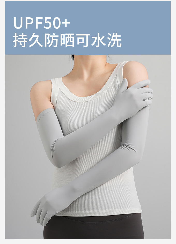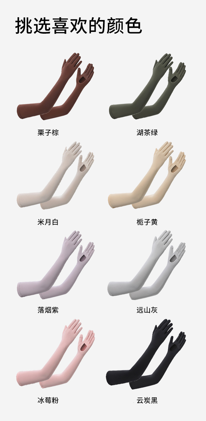 新款夏季冰丝原纱防晒加长手套袖套凉感防紫外线防滑骑行户外薄袖