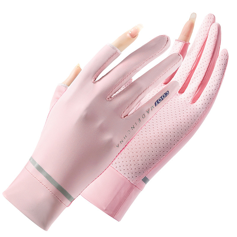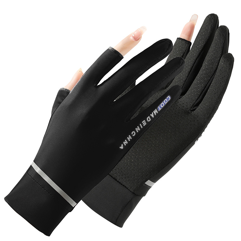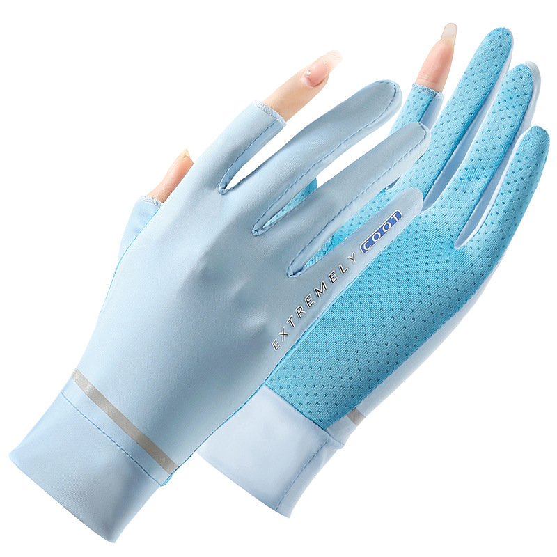 夏季遮阳露指手套冰凉透气掌心高弹户外开车运动骑行女士冰爽手套