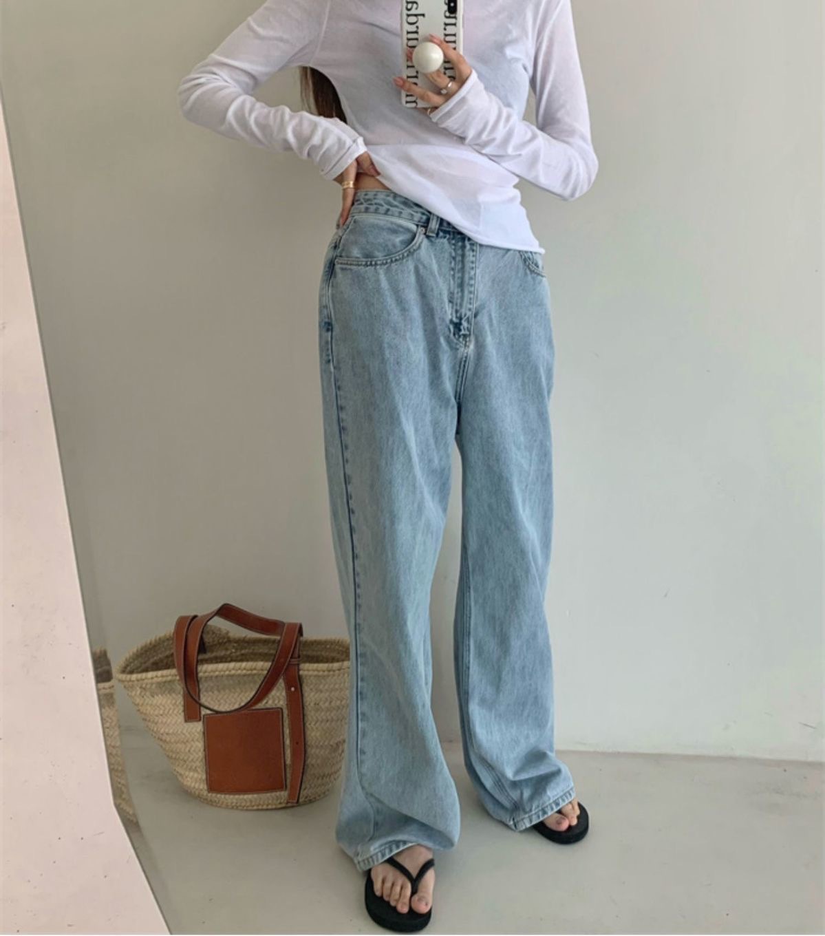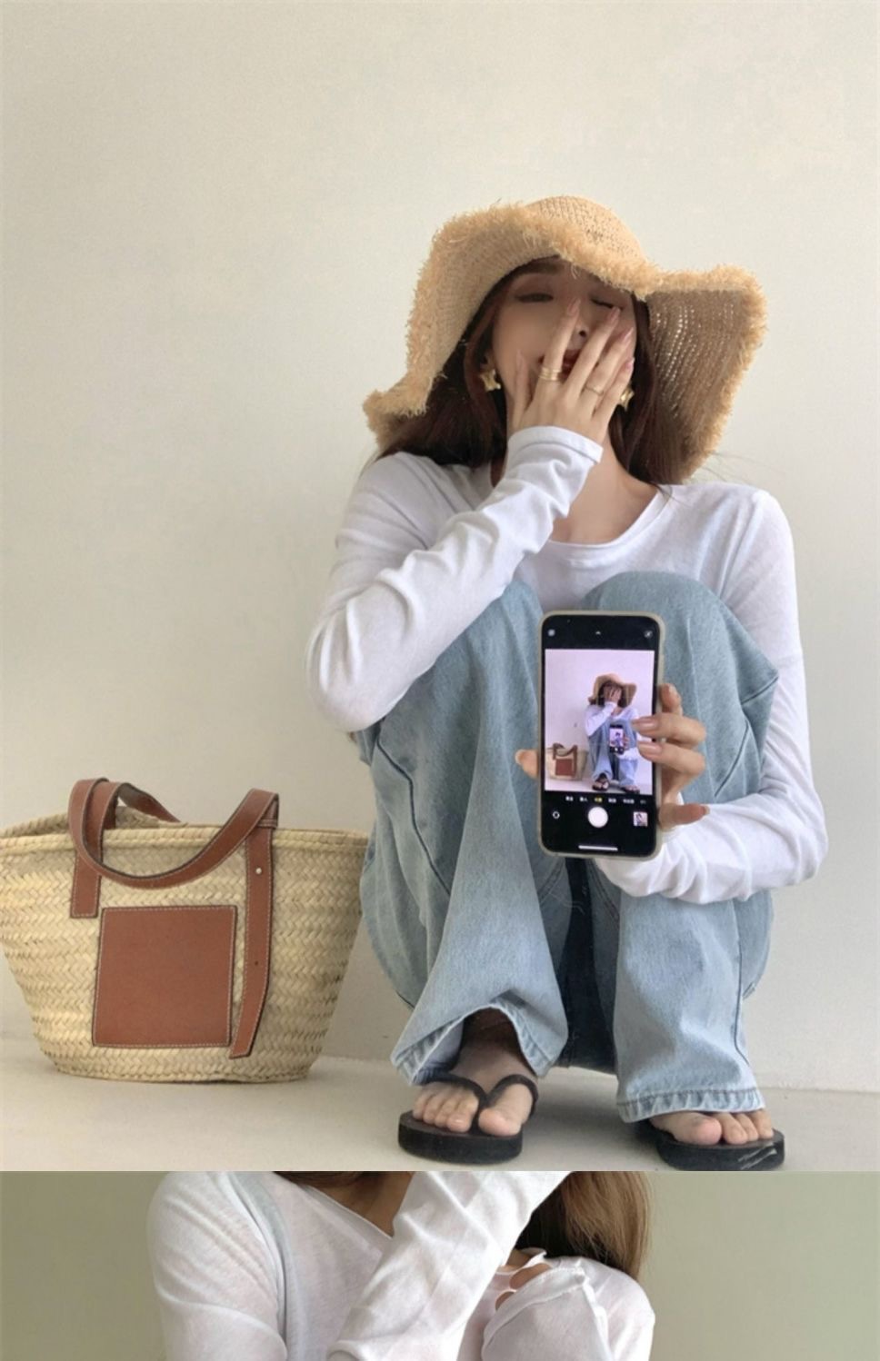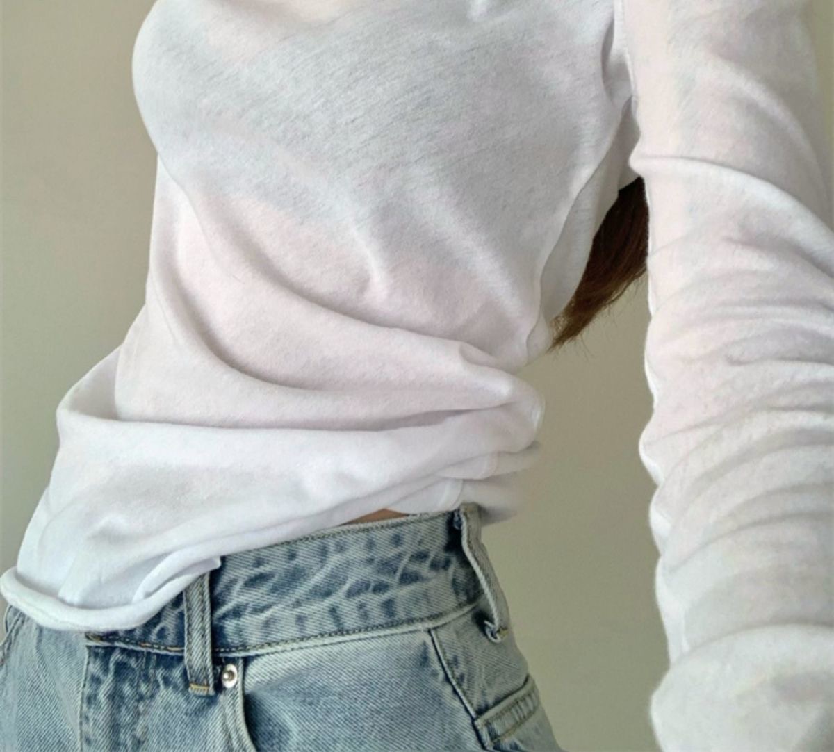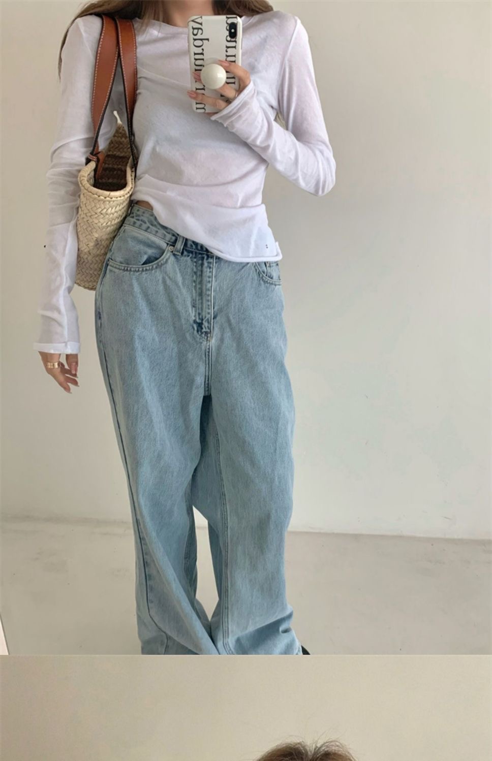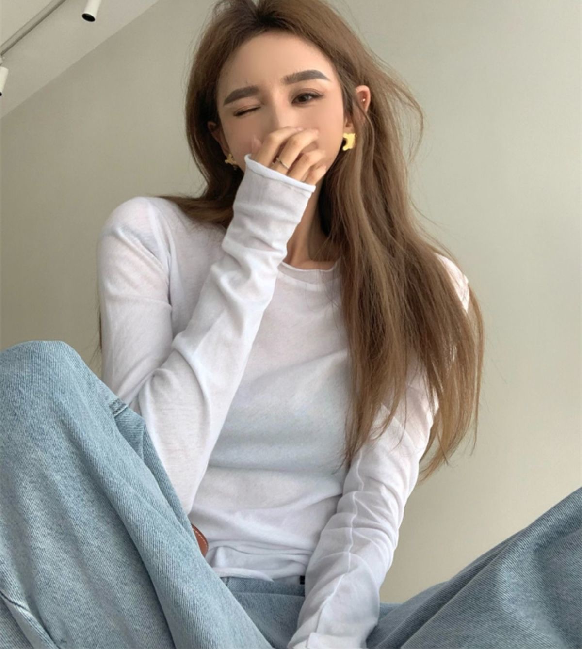 夏季新款百搭纯色宽松圆领长袖冰丝防晒T恤打底衫女韩版修身上衣