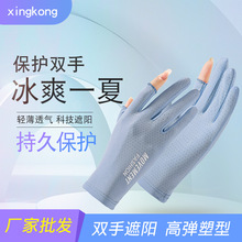 防晒手套女士夏季薄款透气防紫外线开车骑行新款冰丝韩版触屏手套