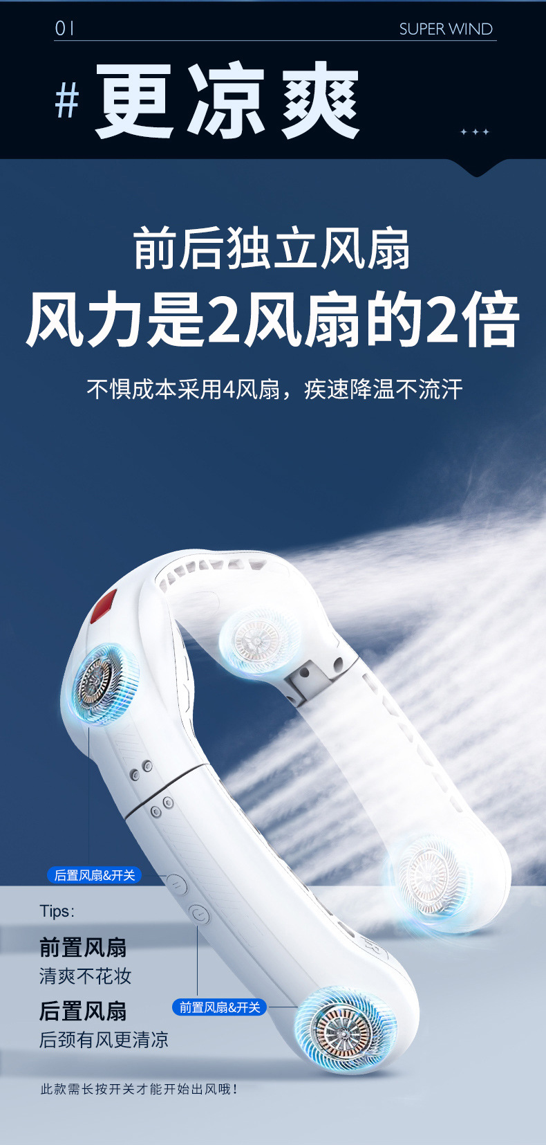 挂脖风扇便携式电风扇制冷空调随身静音usb充电无叶迷你小风扇