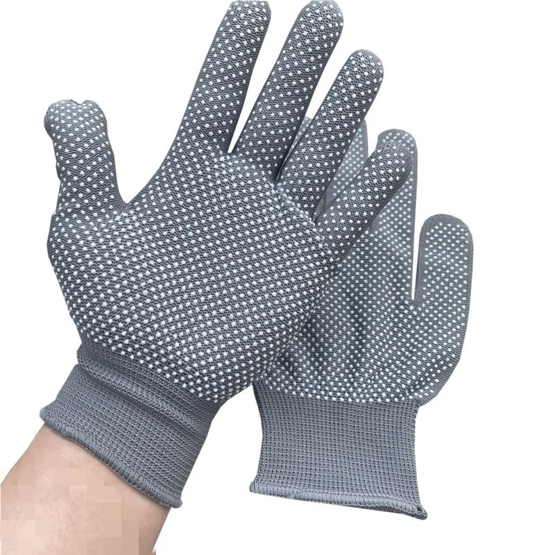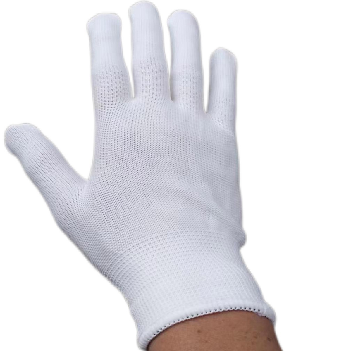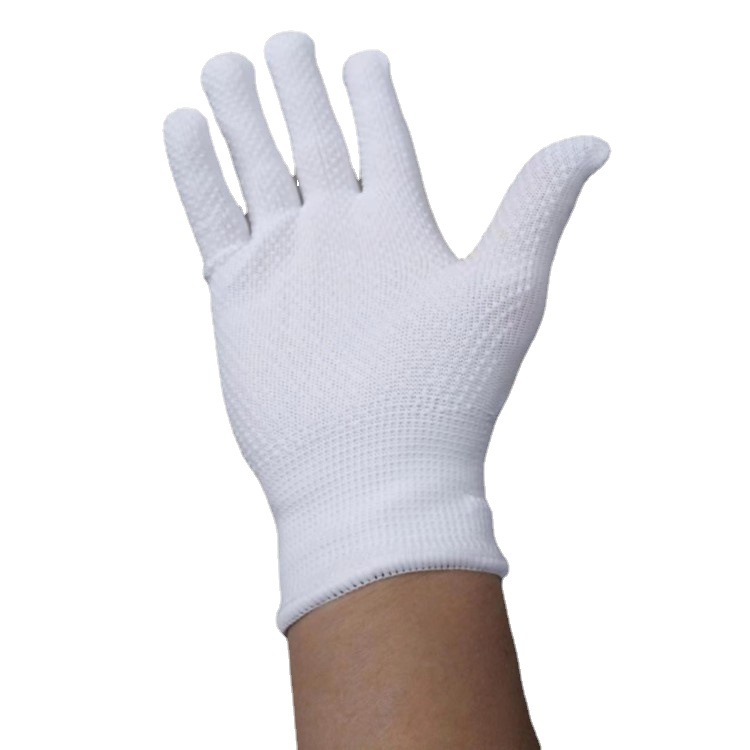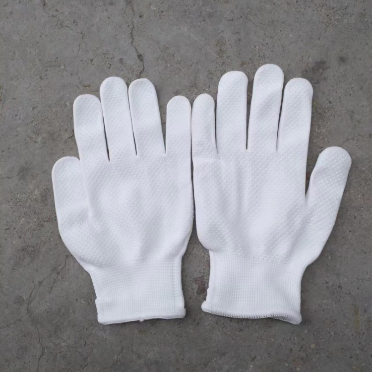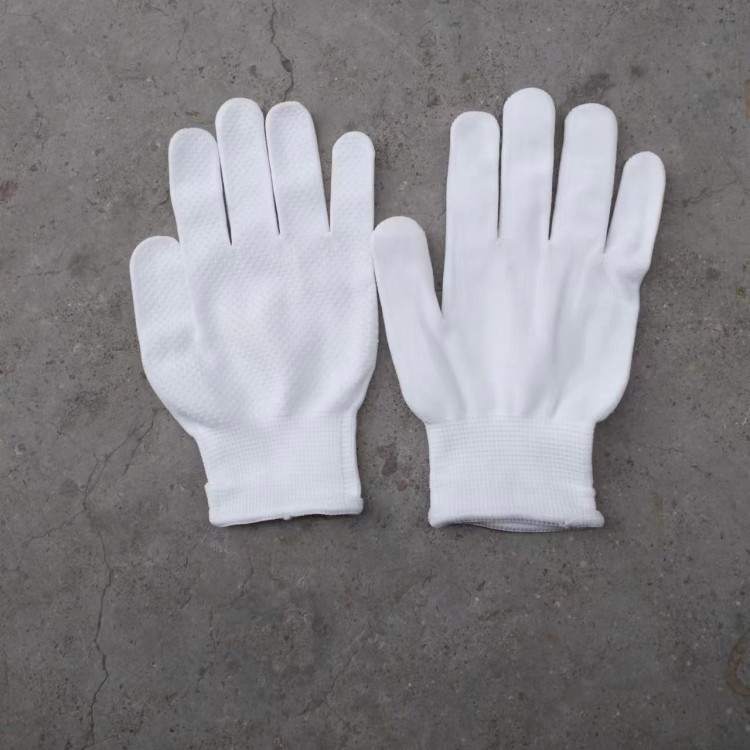 批发白色防滑防晒13针薄款尼龙点胶手套透气贴手男女工作干活劳保