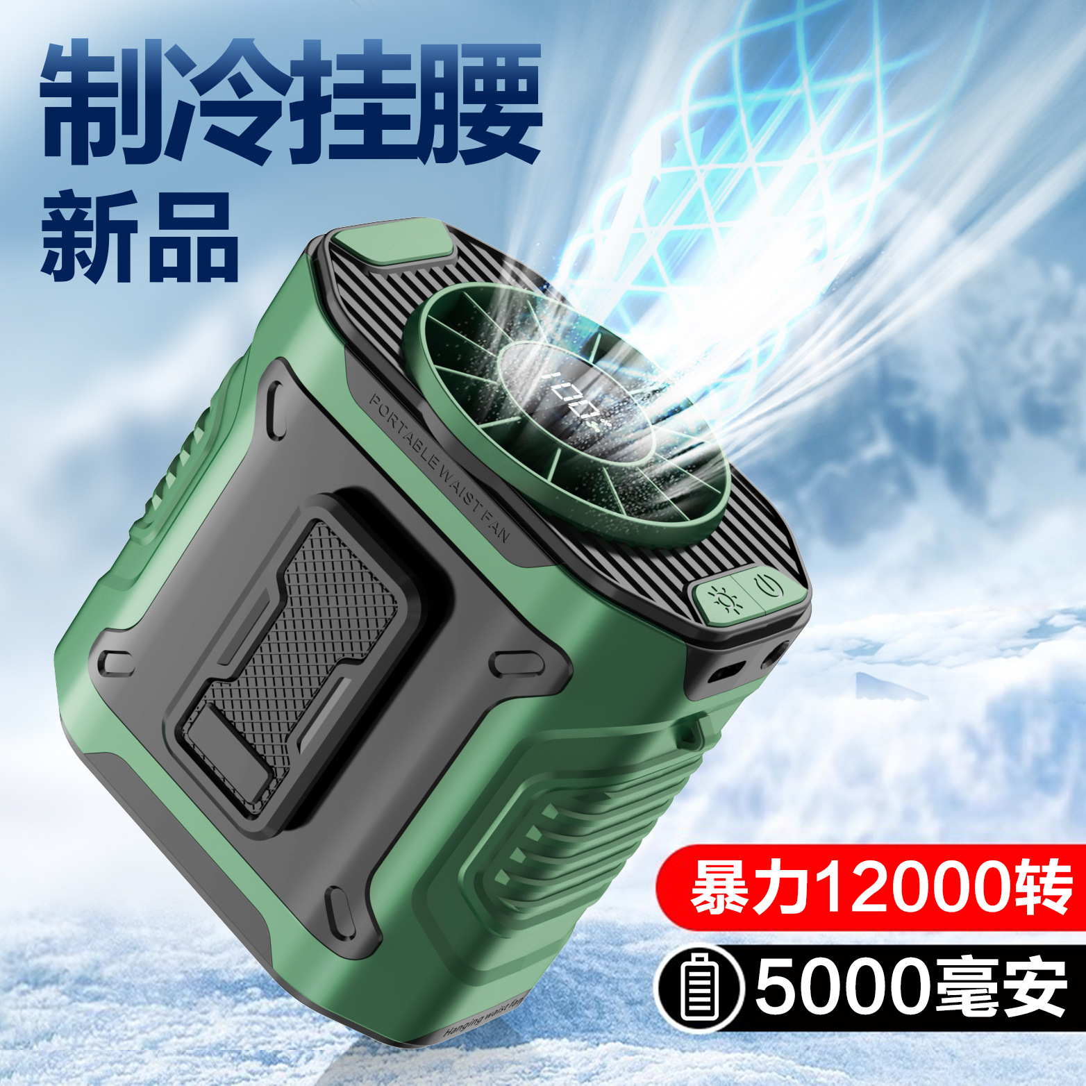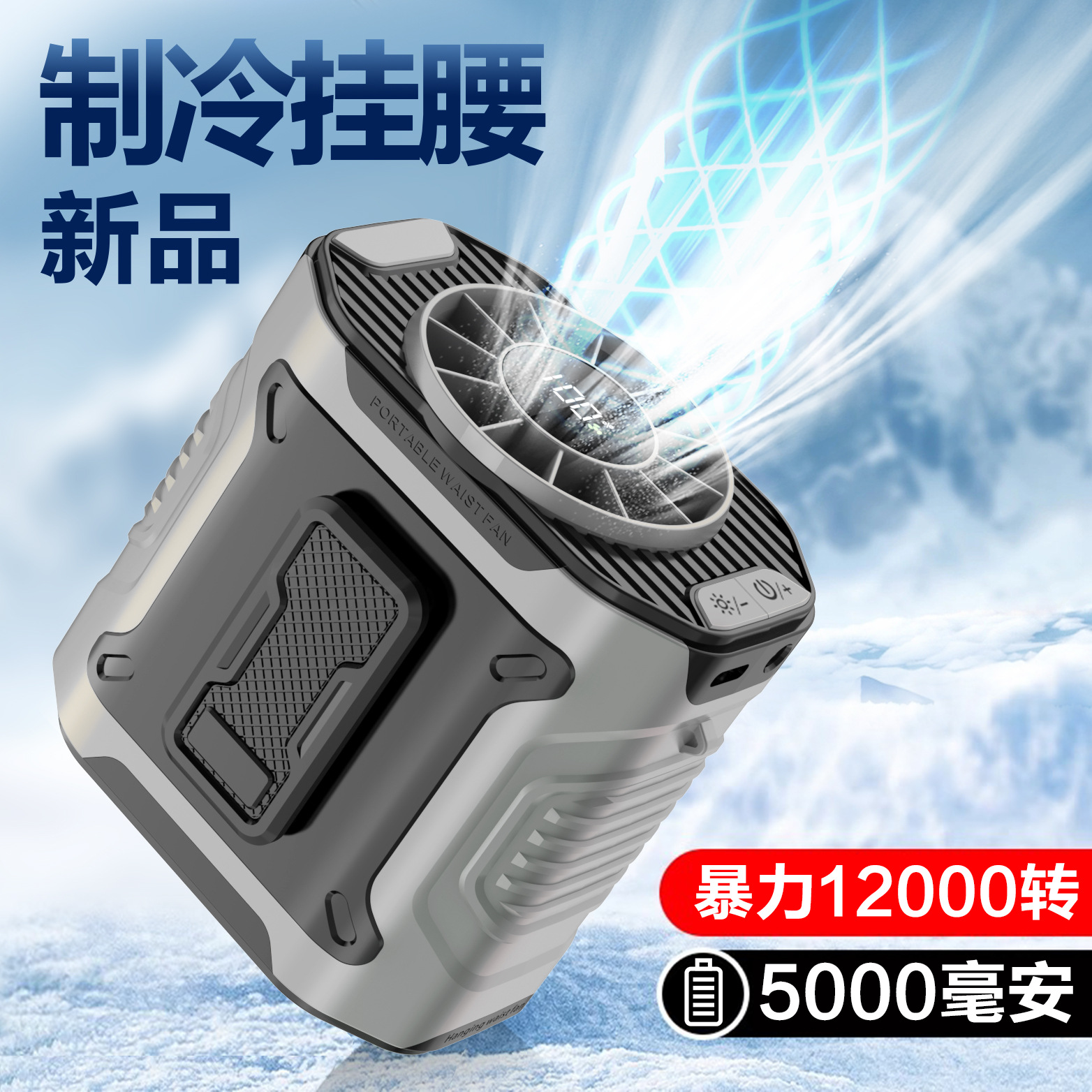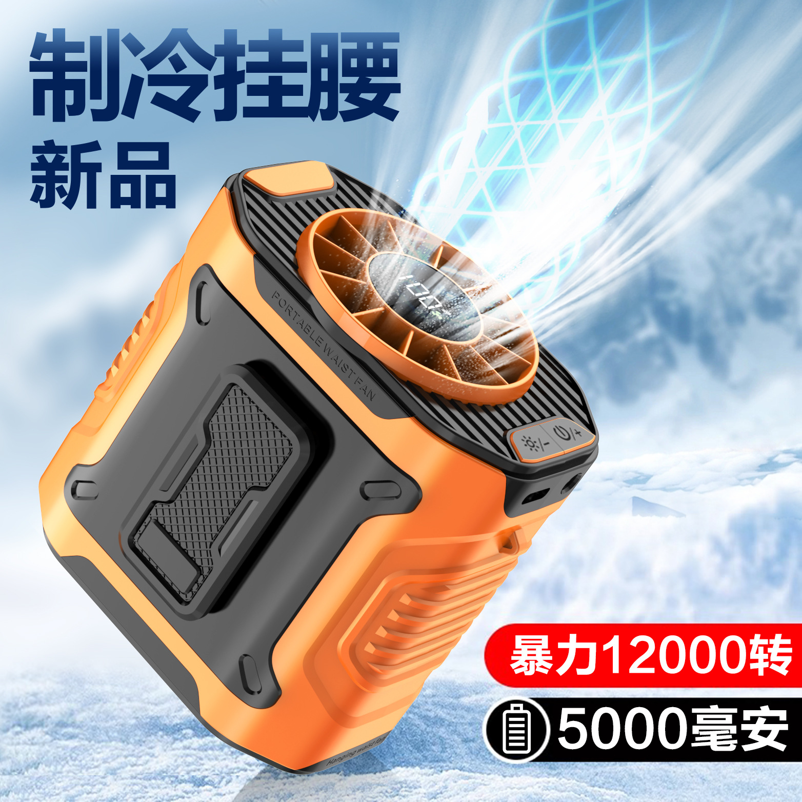 2025新款户外挂腰风扇便携式大风力工地户外usb充电小风扇批发