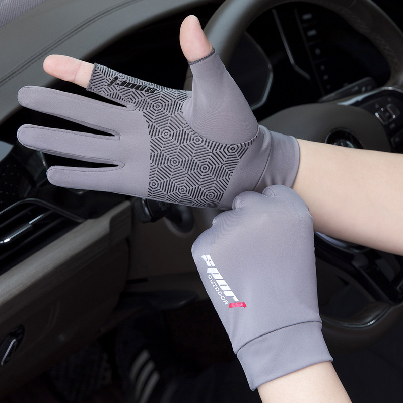 露二指手套男士夏季冰丝薄款快递送餐防晒防滑半指手套女厂家代发