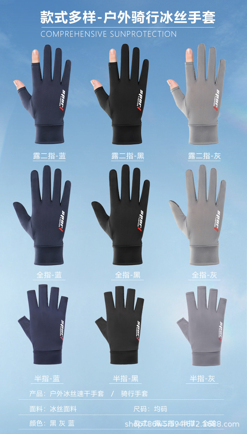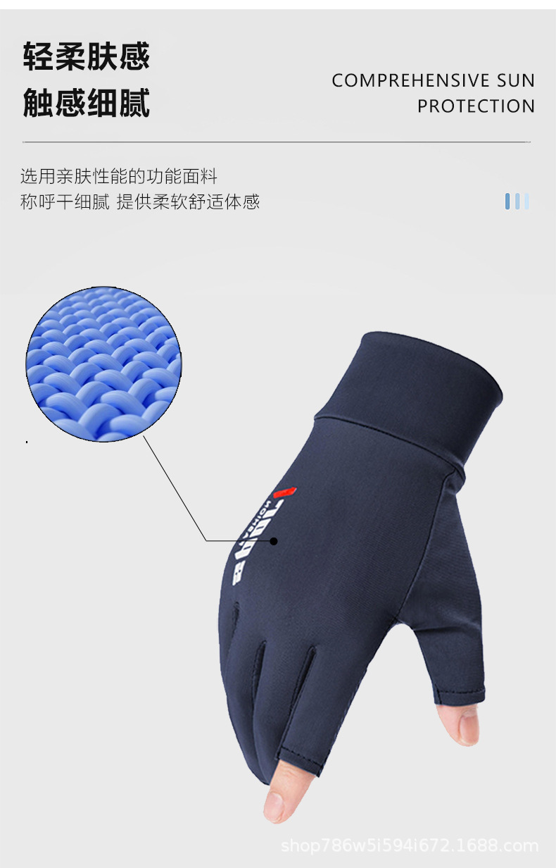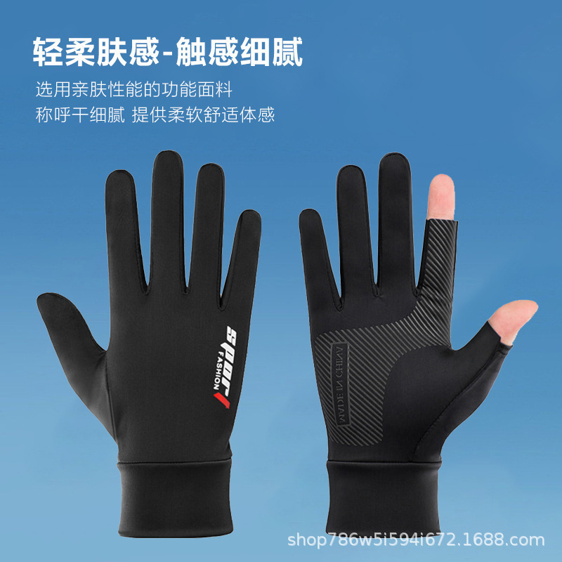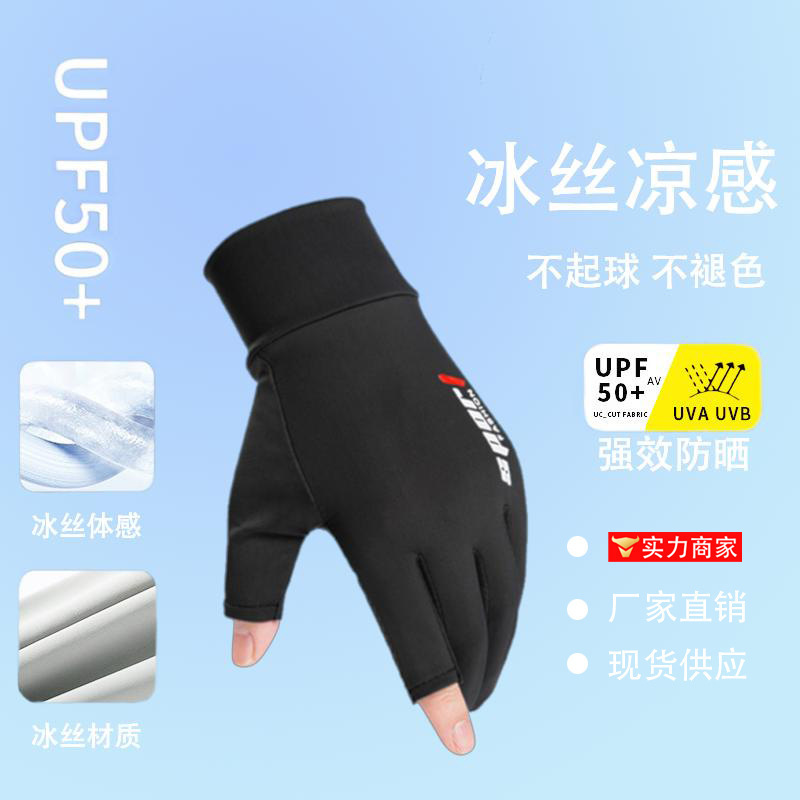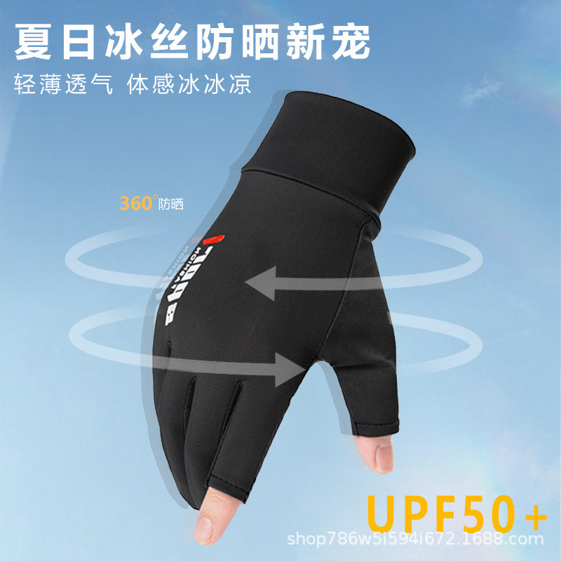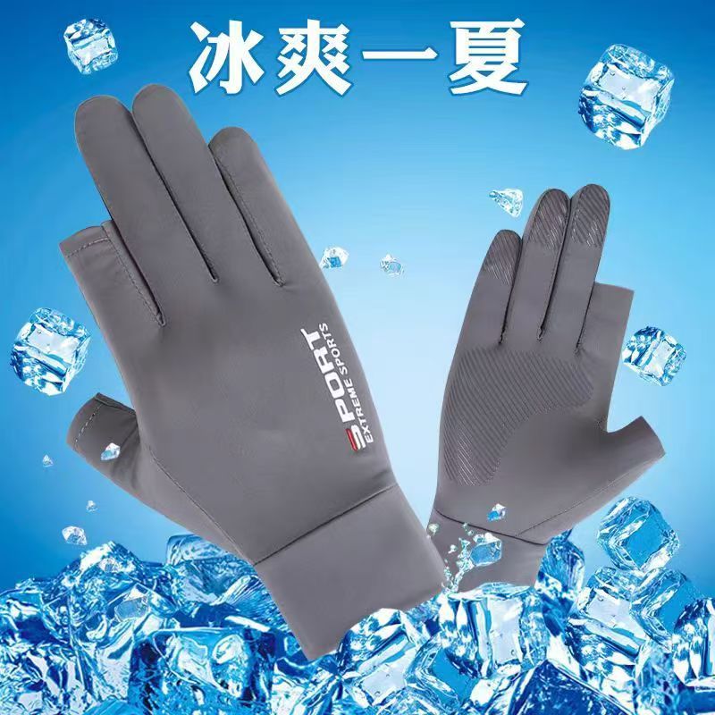 防晒手套夏季薄款防滑冰丝开车骑行外卖钓鱼漏二指半指女透气冰感