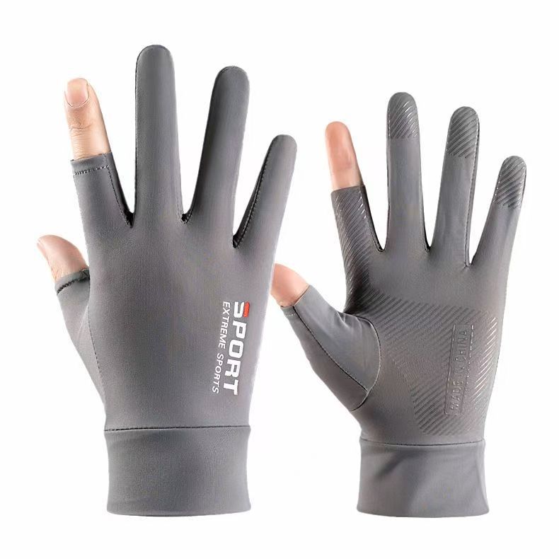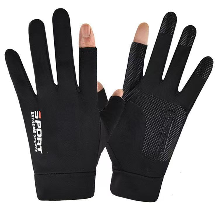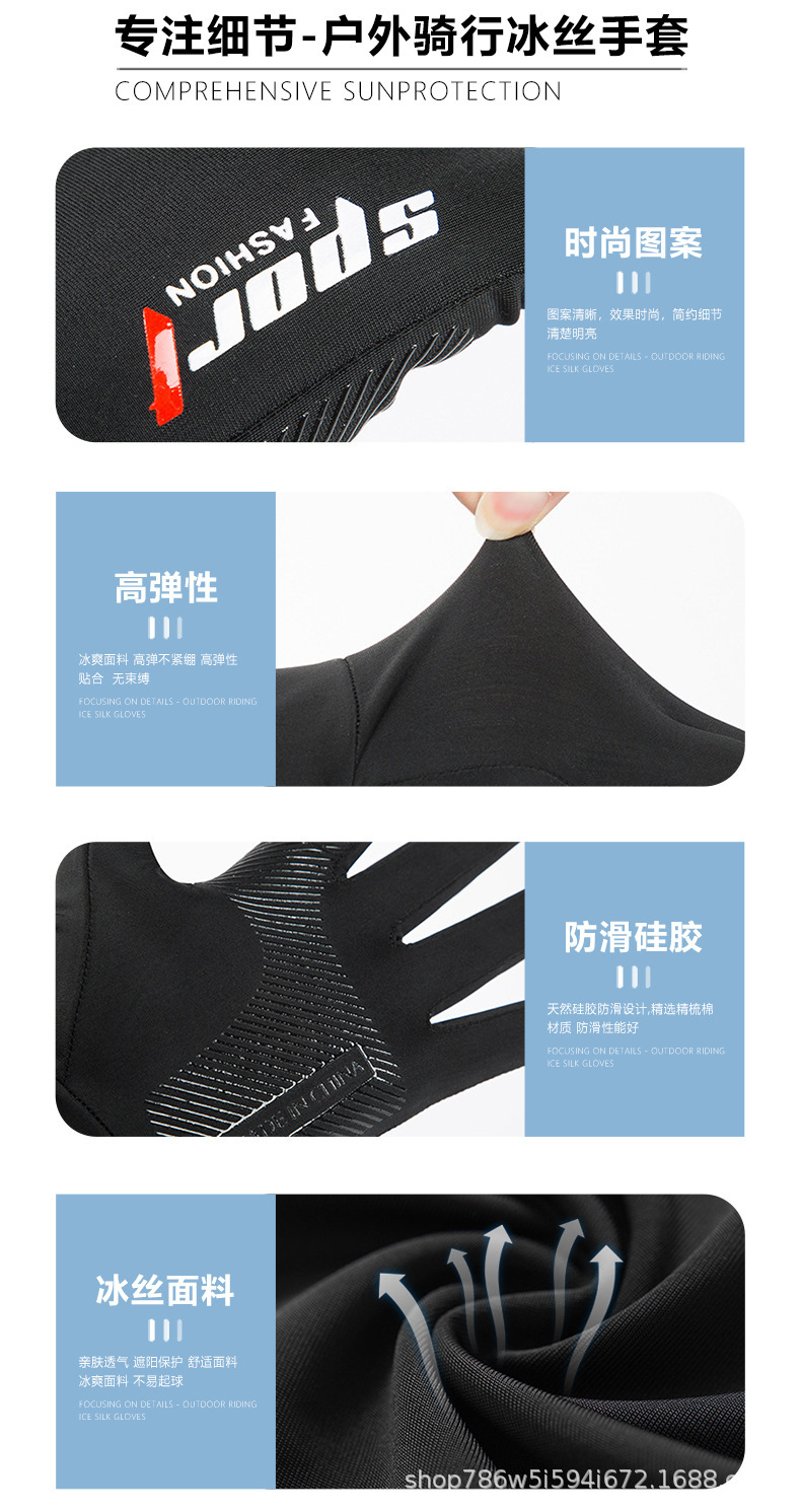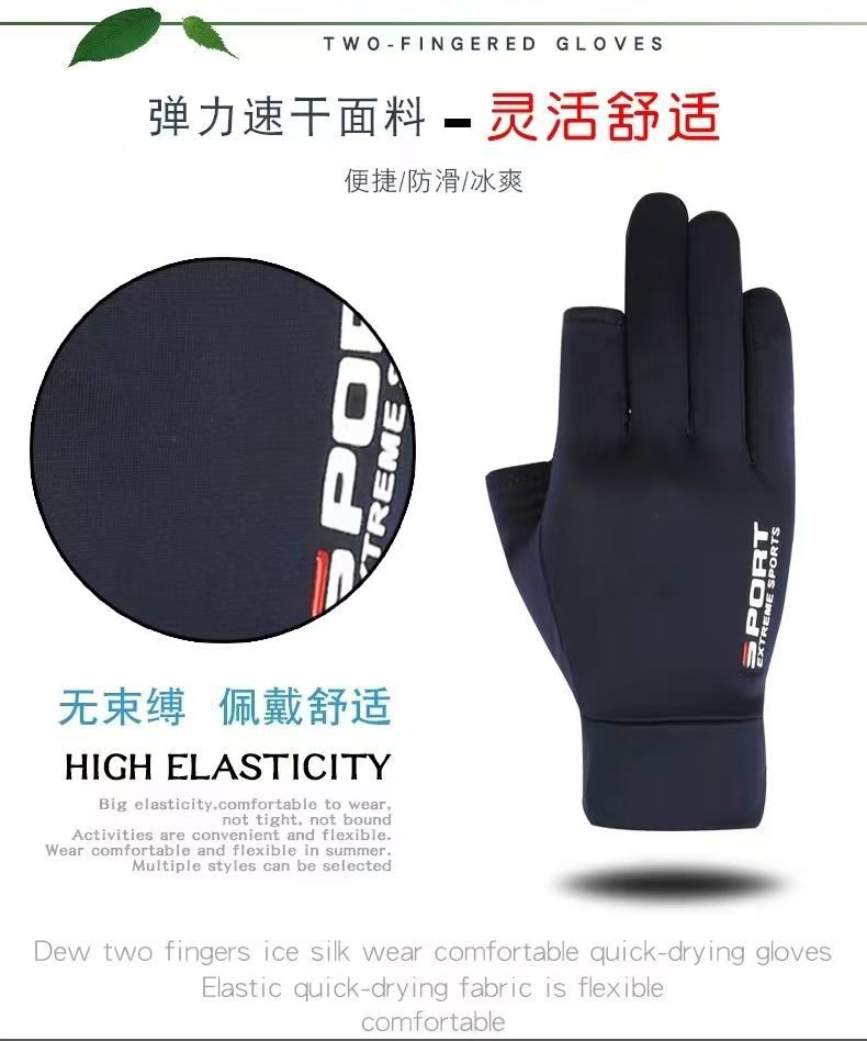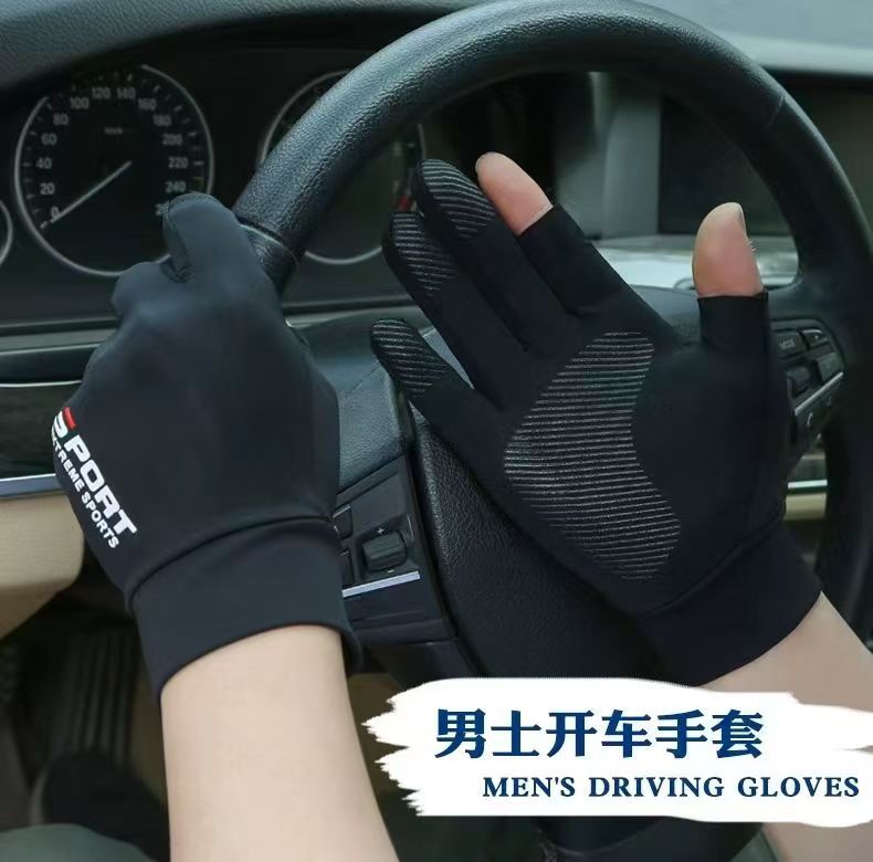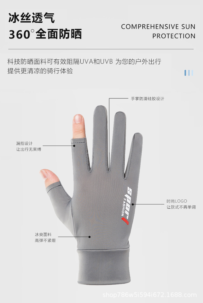 防晒手套夏季薄款防滑冰丝开车骑行外卖钓鱼漏二指半指女透气冰感
