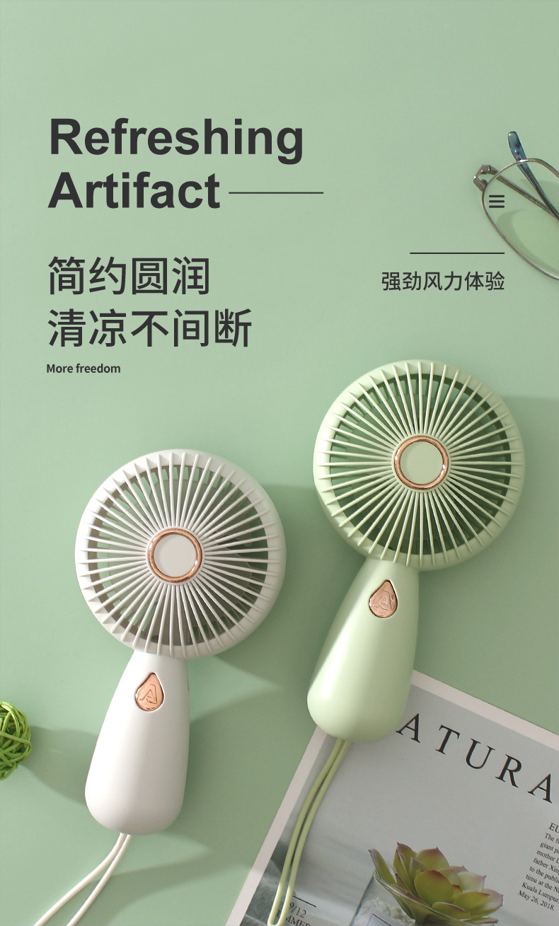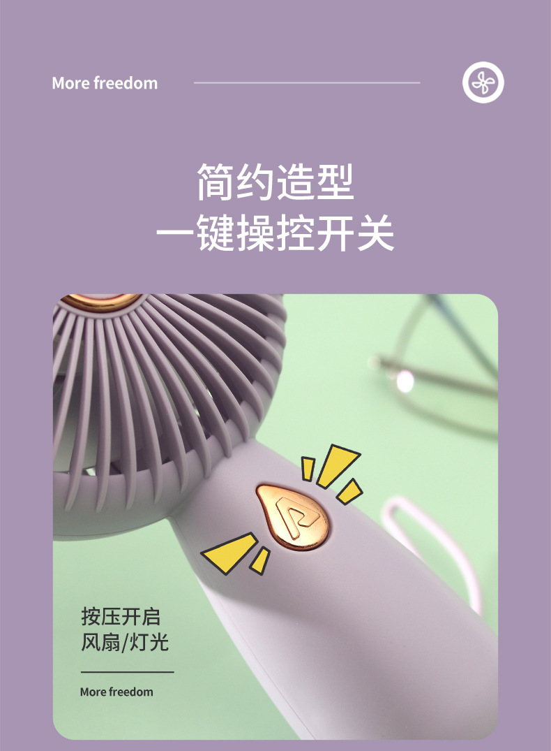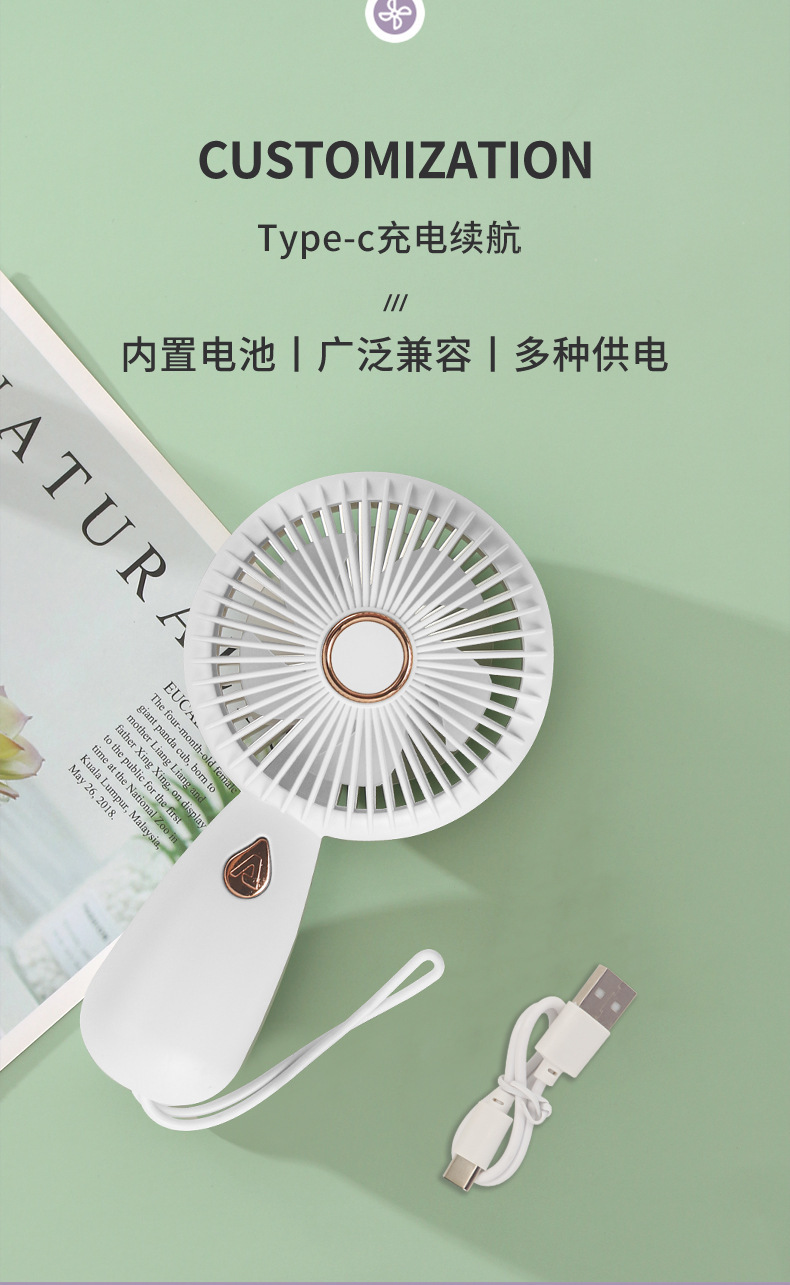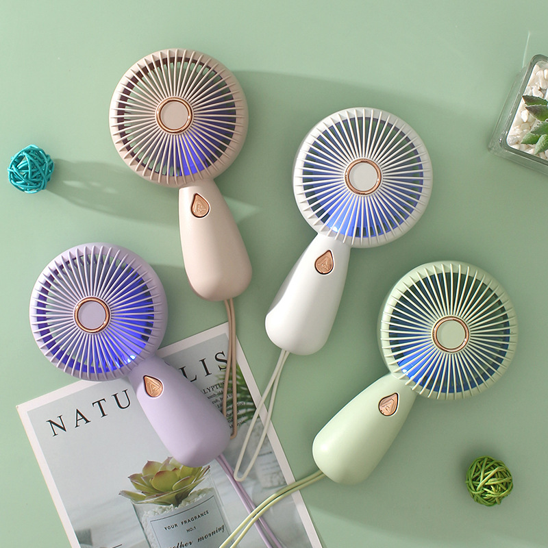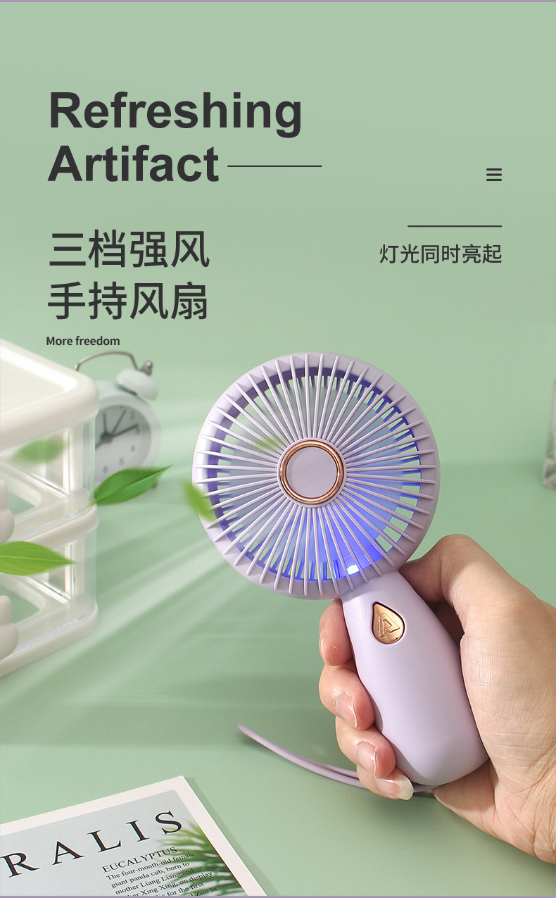 跨境2025爆款手持迷你风扇 usb充电LED灯光便携三档送女友小礼品