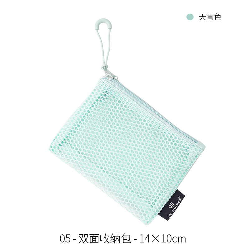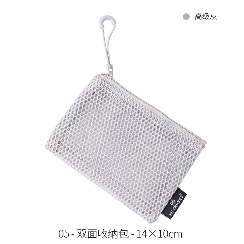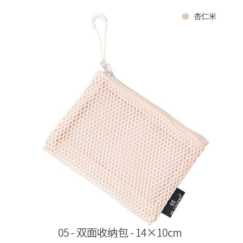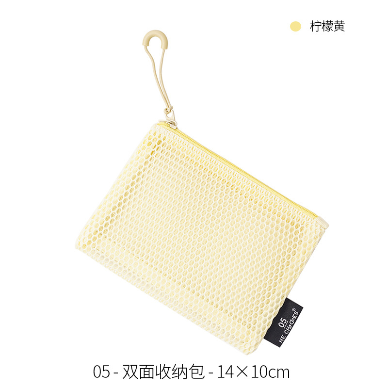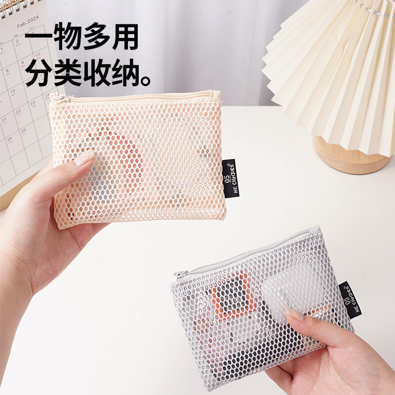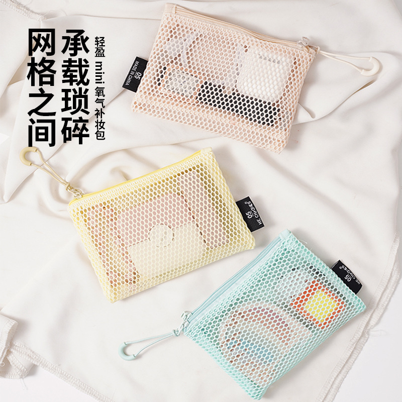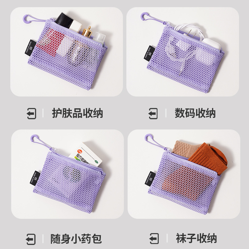 多巴胺双拉链化妆包女便携式随身杂物网格收纳袋化妆品口红补妆包