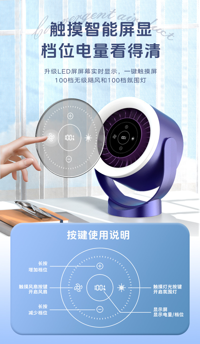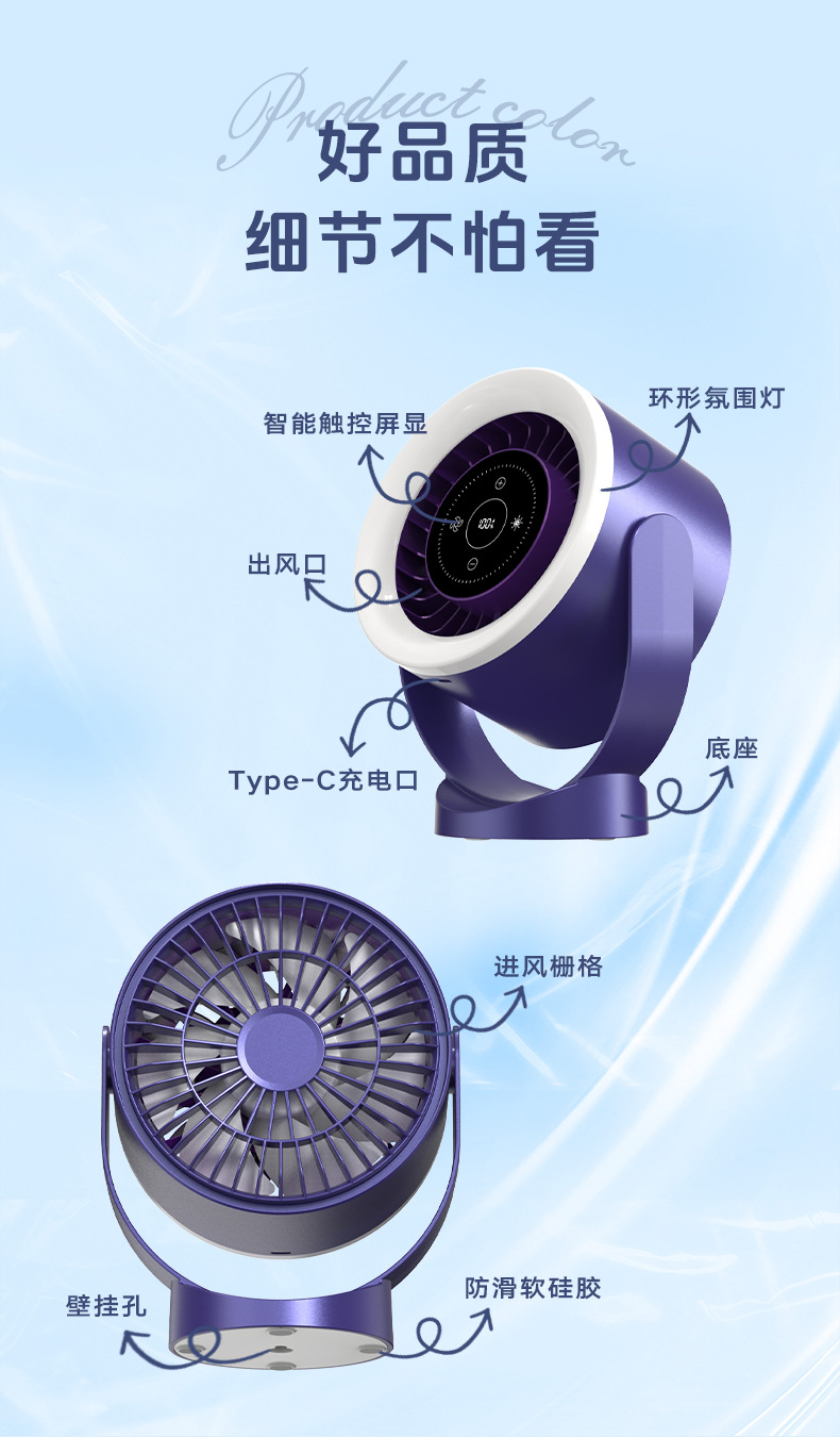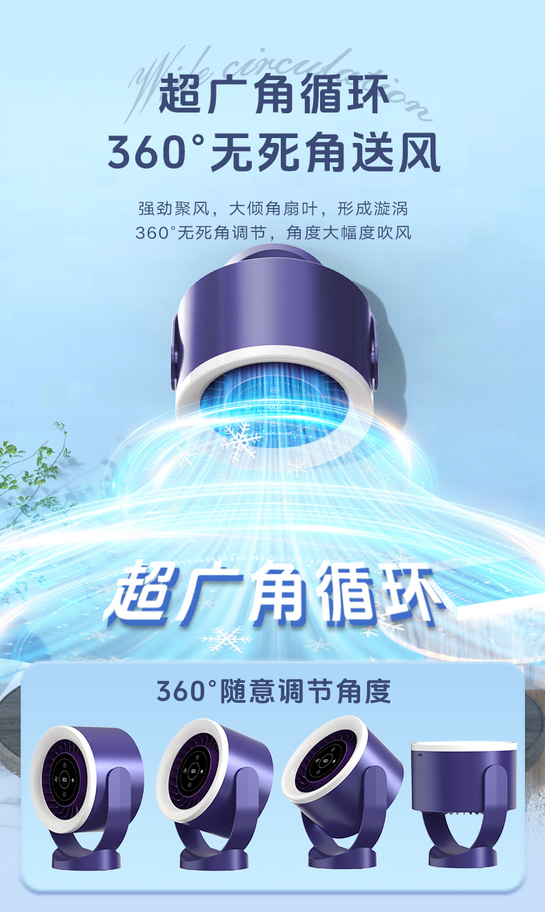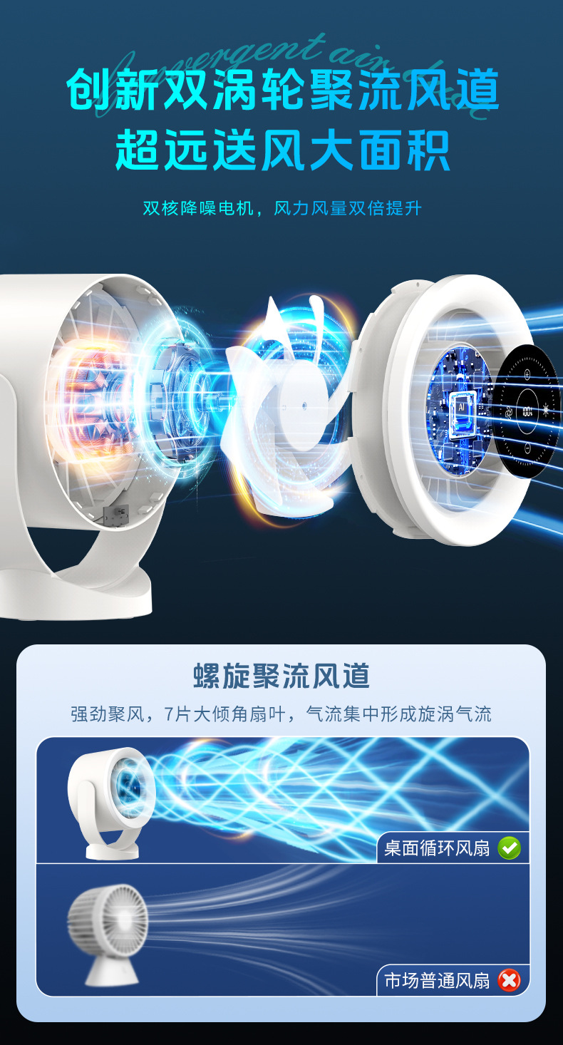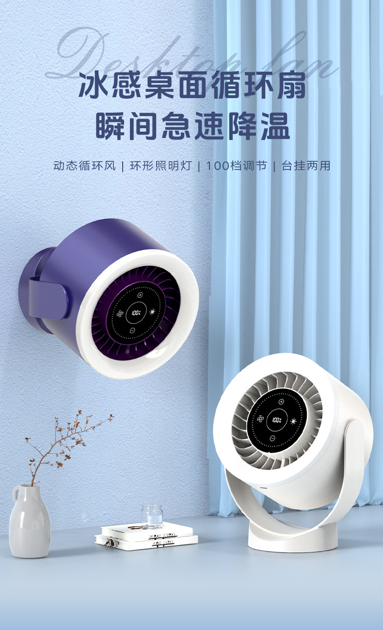 2025新款风扇桌面台扇 卧室厨房壁挂小型usb充电迷你桌面循环风扇