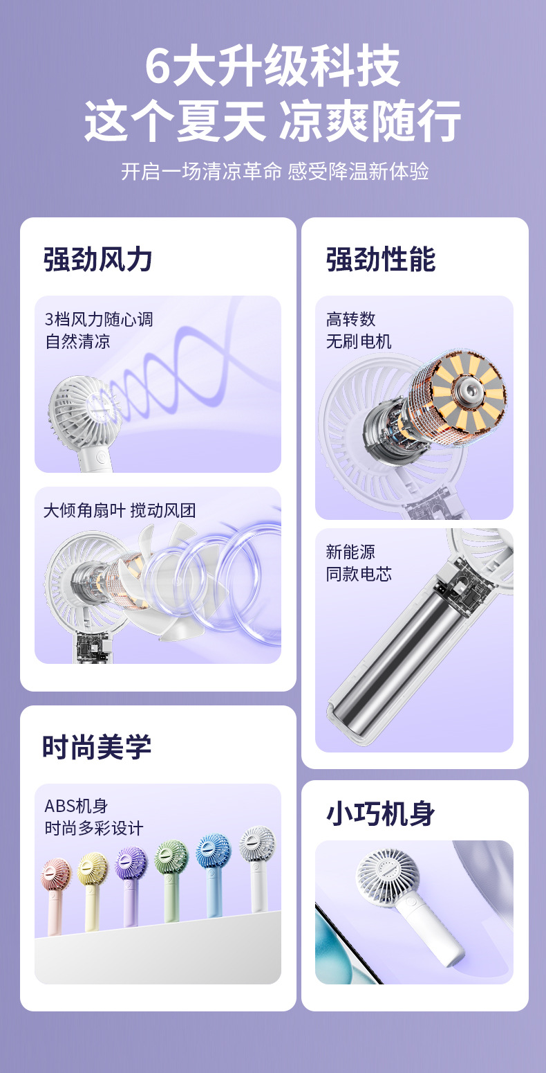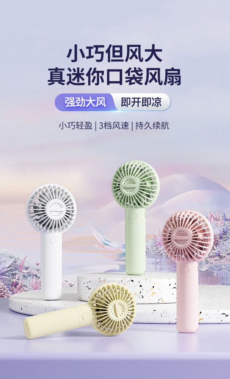 厂家直销迷你小风扇充电款糖果色便携式户外口袋礼品电风扇可充电